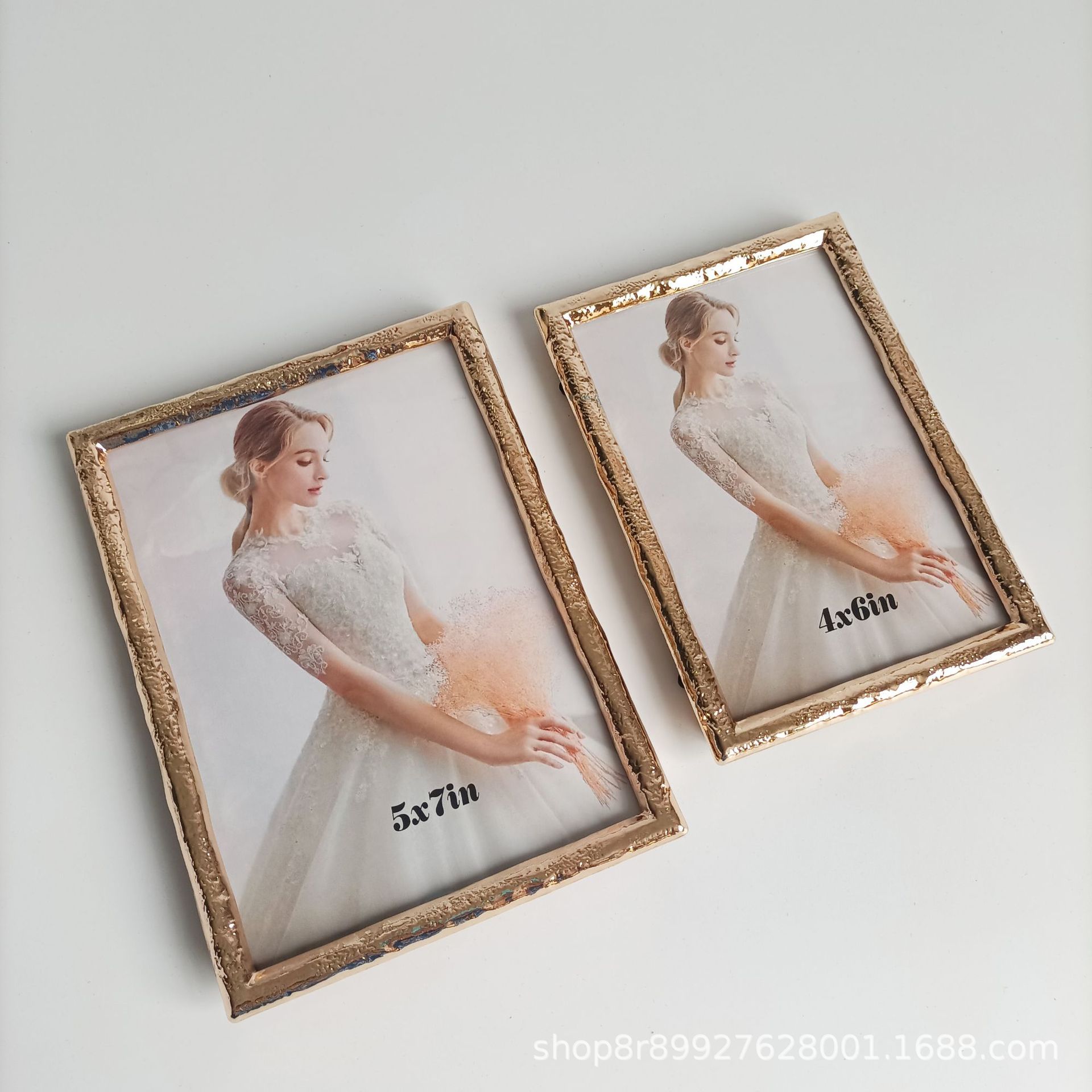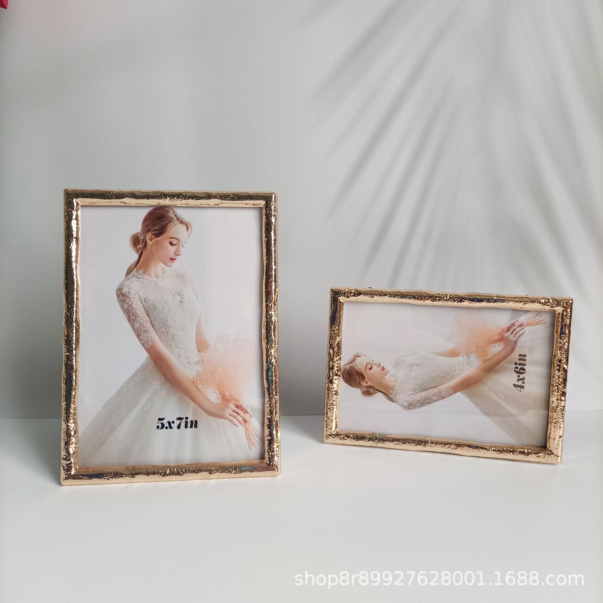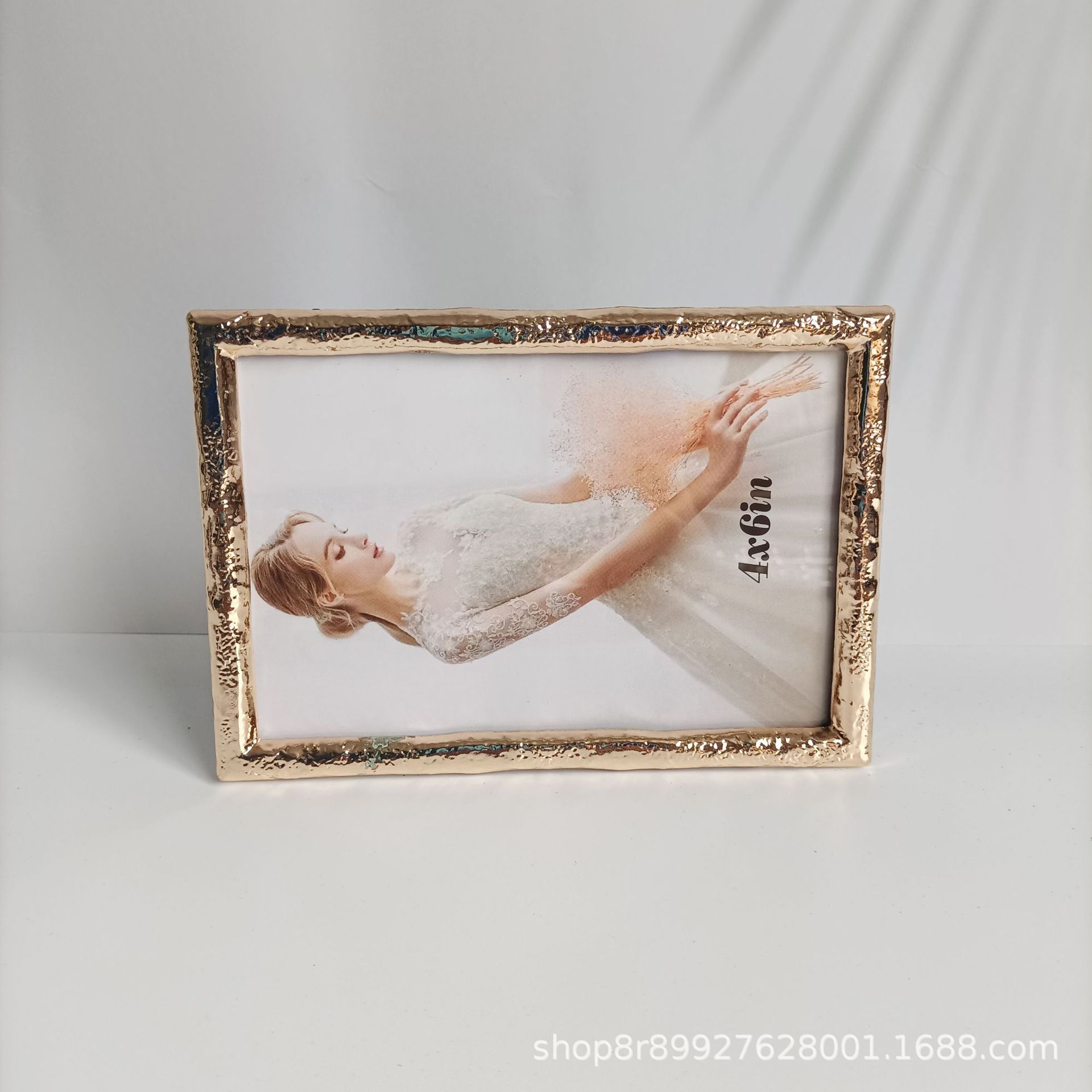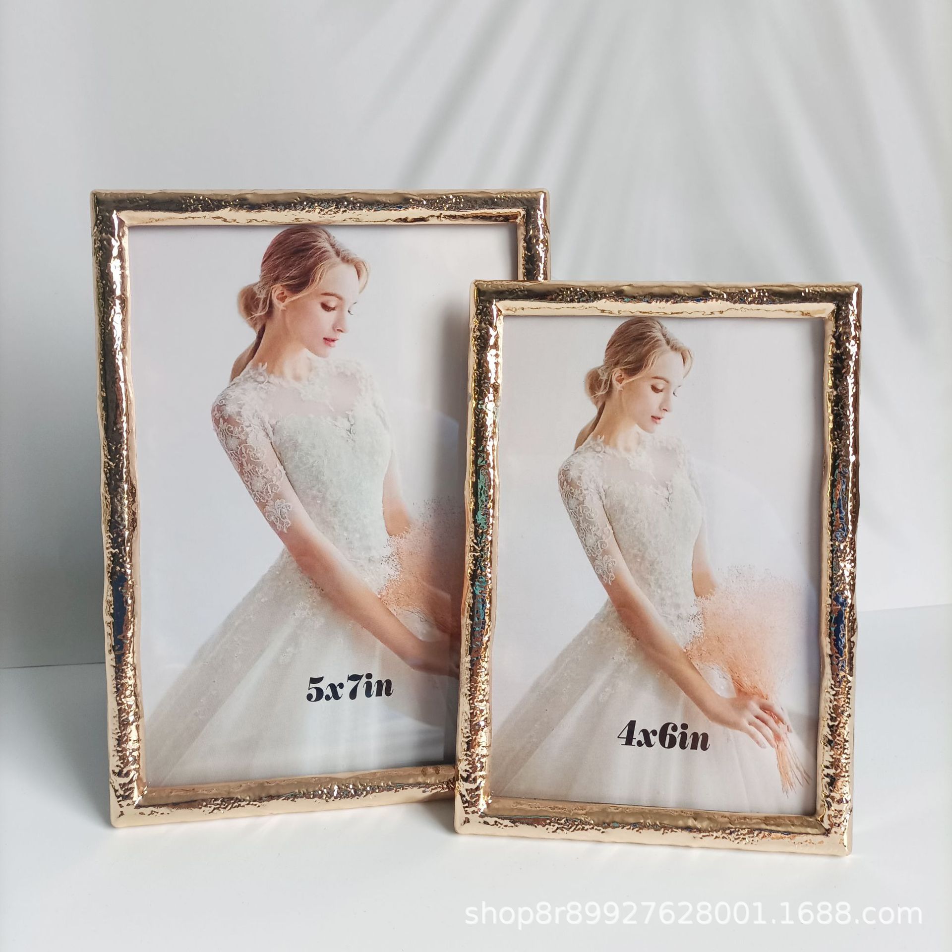 현대 간단한 빛 금 금속 사진 프레임 모델 룸 부드러운 장식 테이블 장식 금속 사진 프레임스토어 가기