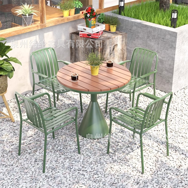 심플 스타일 야외 발코니 캐주얼 다이닝 테이블 레드 밀크 티 샵 야외 작은 라운드 테이블 가든 테라스 야외 테이블과 의자 조합스토어 가기