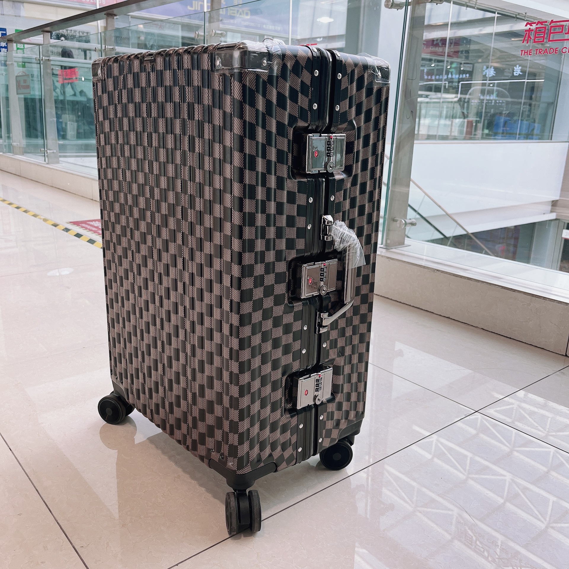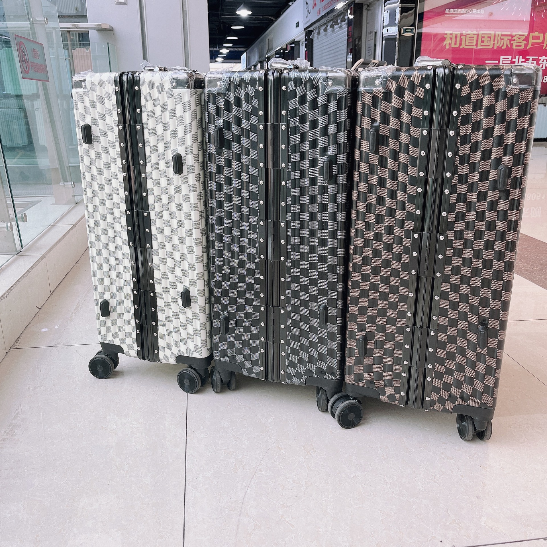 체커보드 무늬 트롤리 캐리어, 무소음 회전 바퀴 여행가방, 20inch 기내용 캐리어, 남녀공용 학생용 트롤리 캐리어스토어 가기