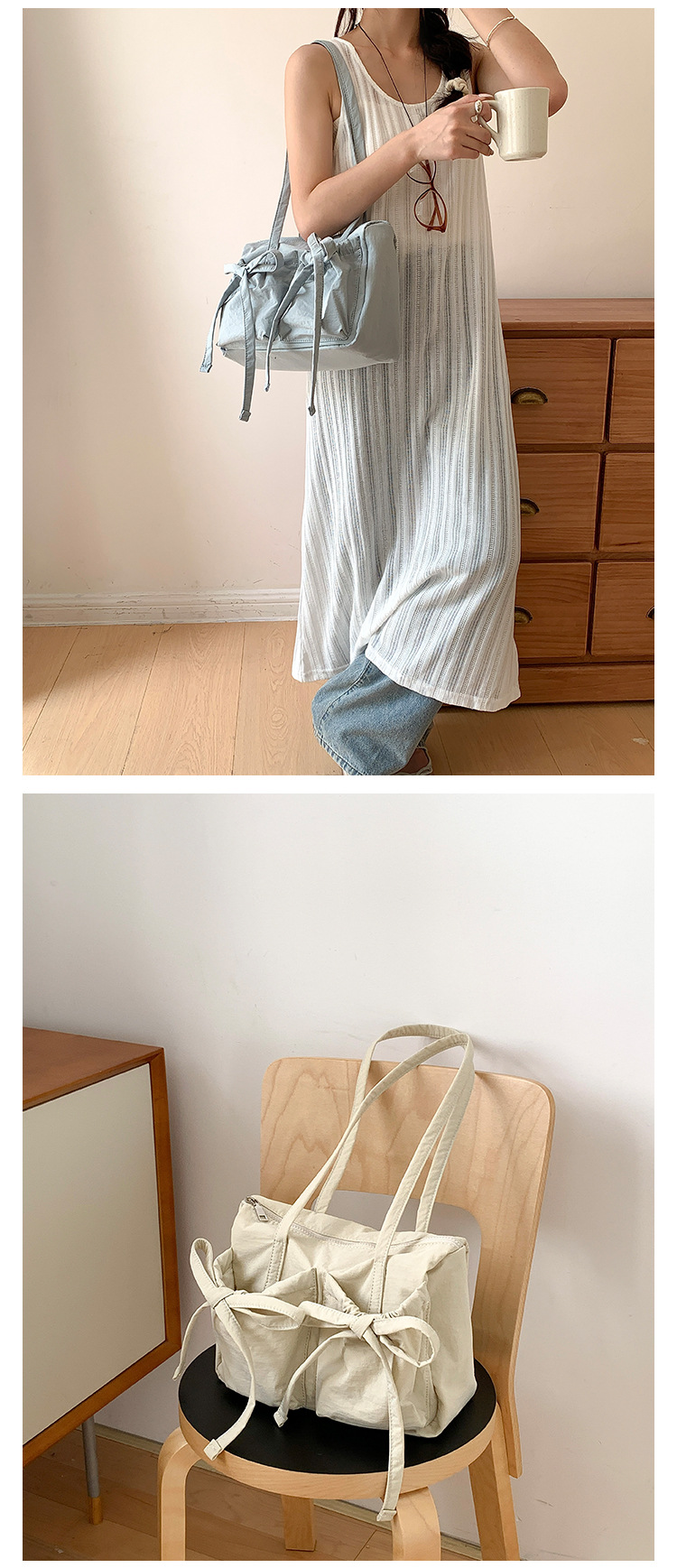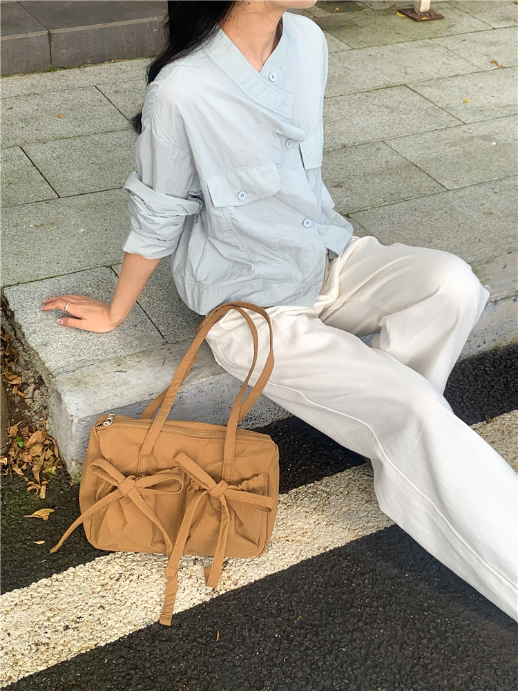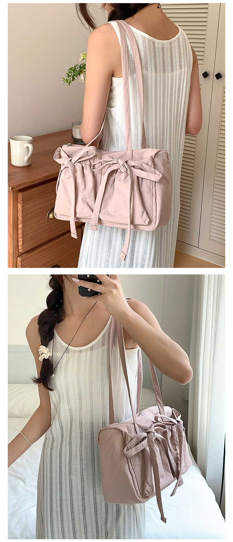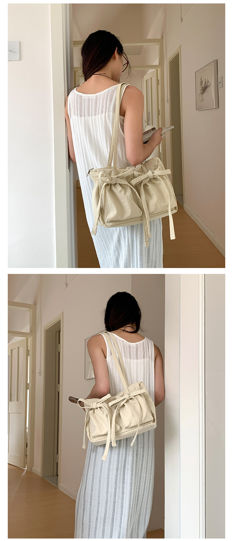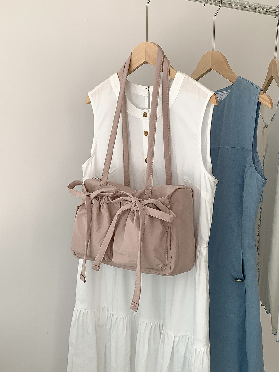 한국 나일론 토트 백 대용량 여성 캐주얼 숄더백 대학생 클래스 보우 초기 통근 가방