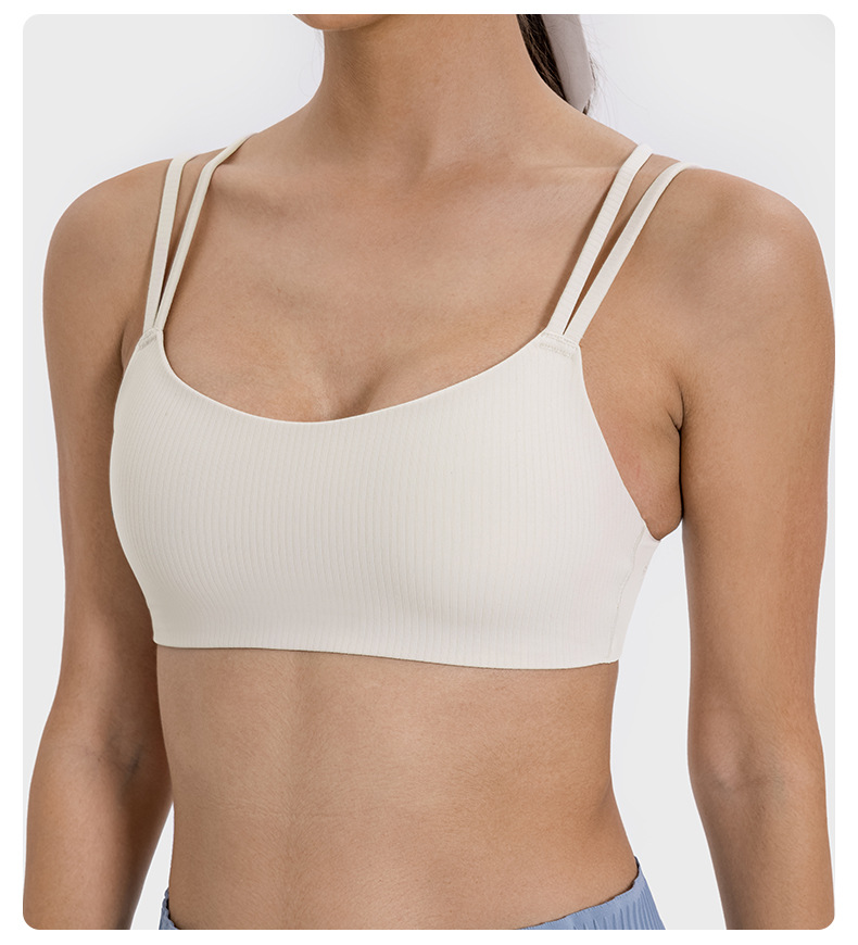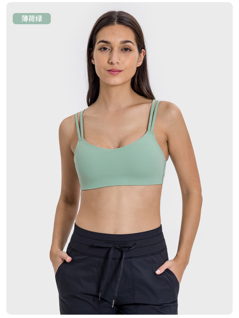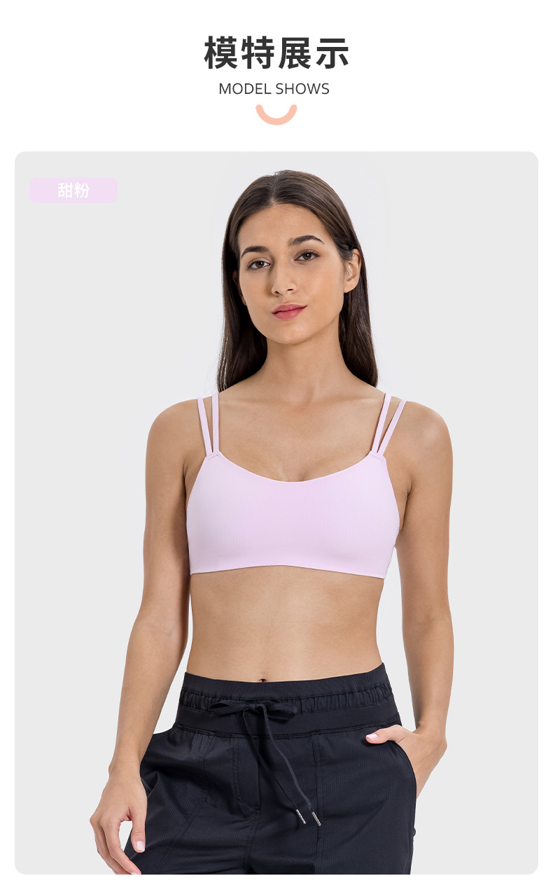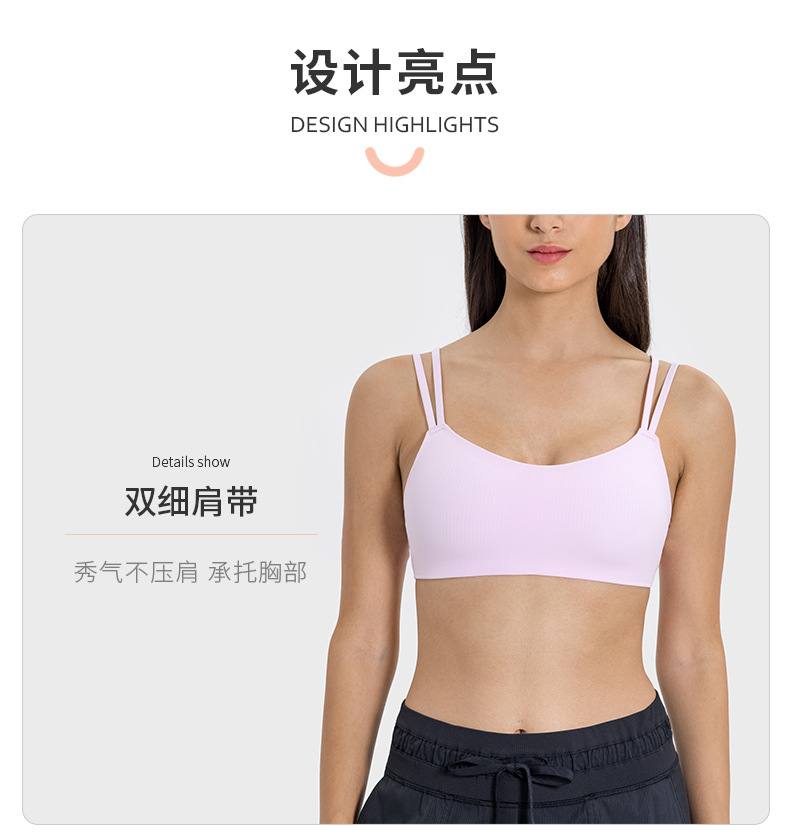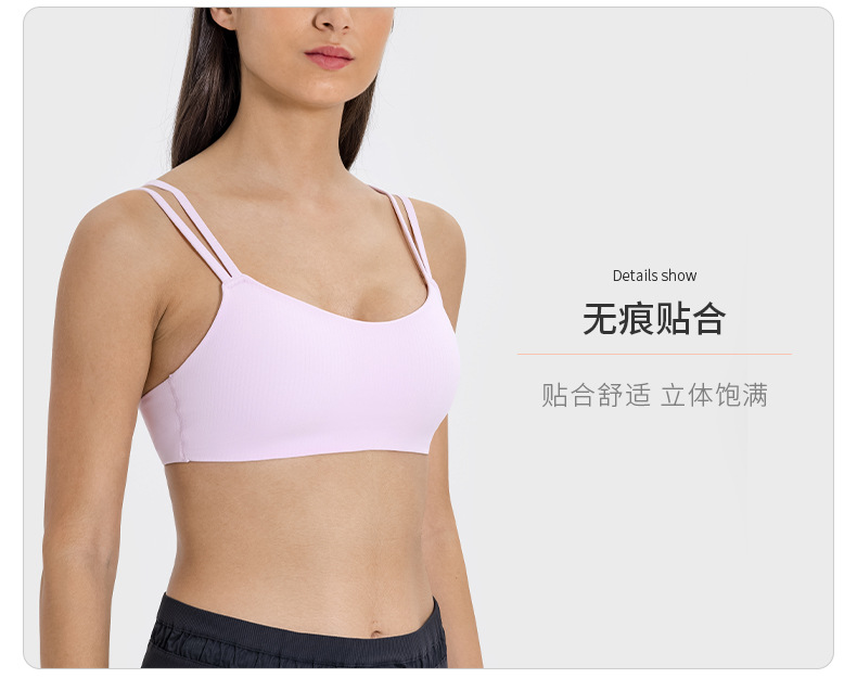 새로운 줄무늬 스레드 고정 유방 패드 스포츠 브래지어 탄성 벌거 벗은 느낌 아름다운 다시 피트니스 요가 브래지어 DSS078