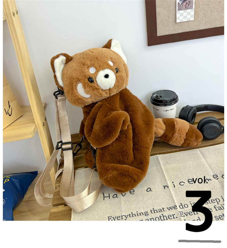 레드 팬더 거짓말 하기 쉬운 가방 봉제 인형 메신저 가방 2024 새로운 스타일 독특한 배낭 여성의 귀여운 소프트 배낭