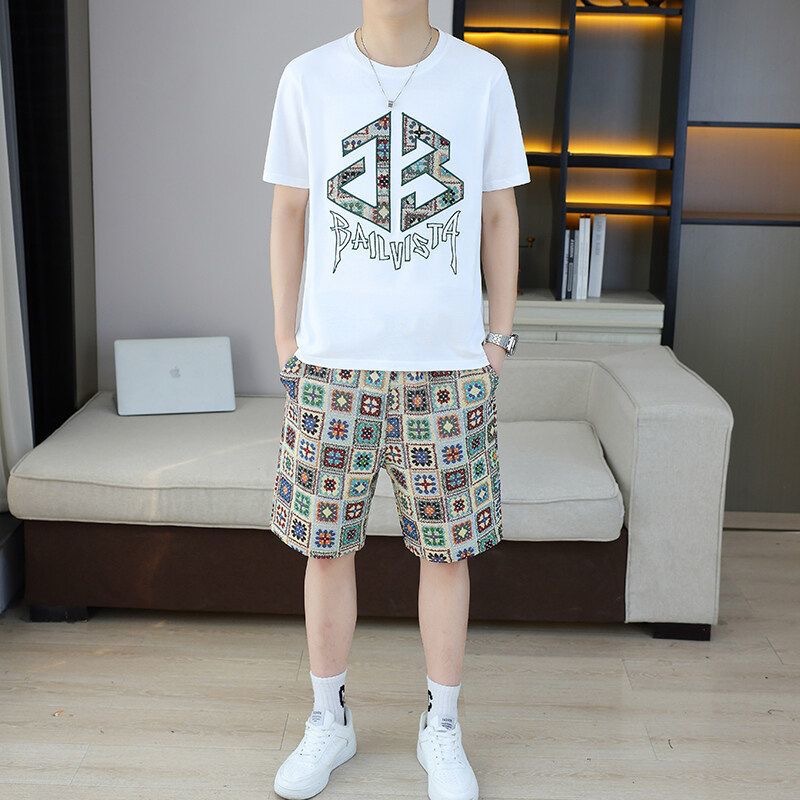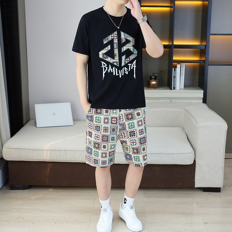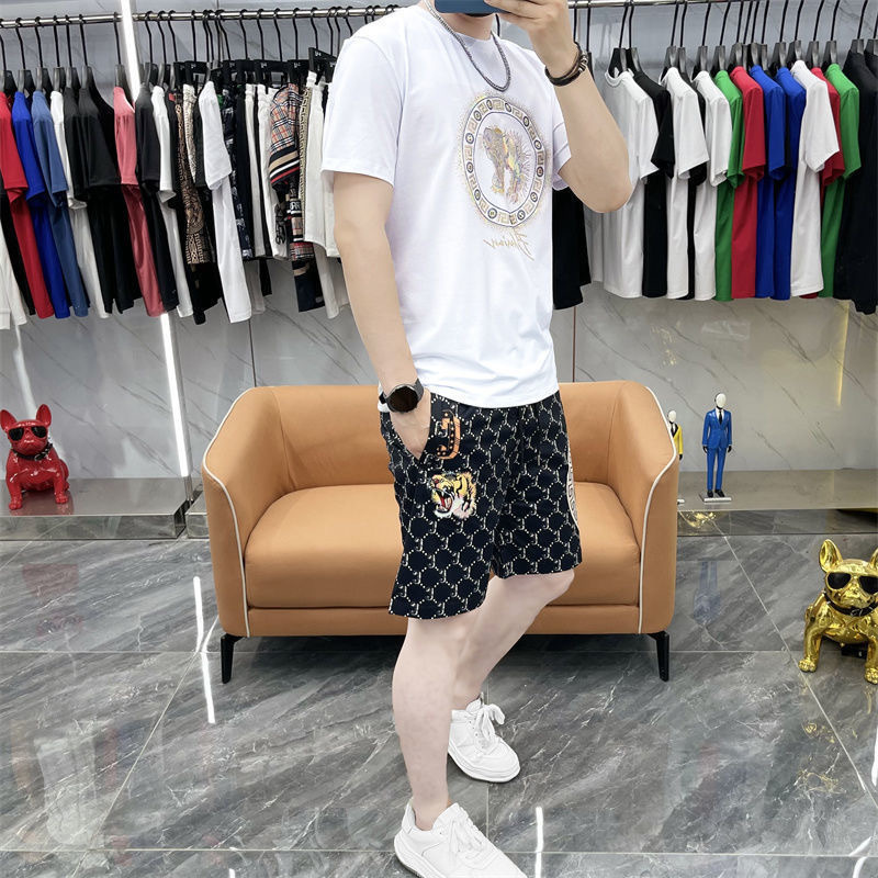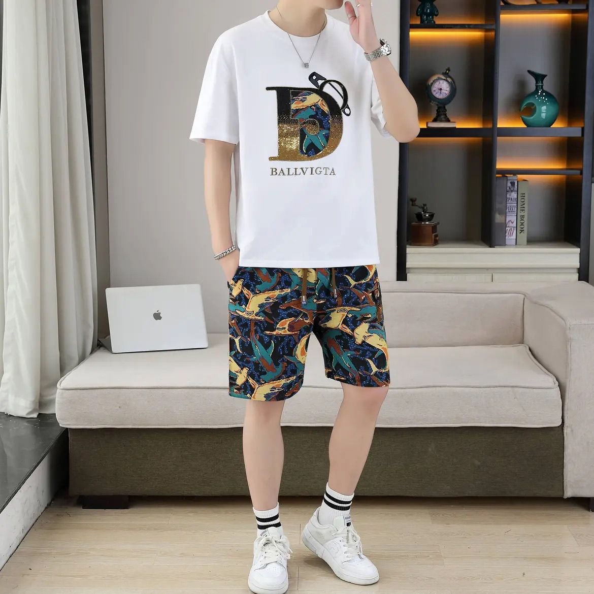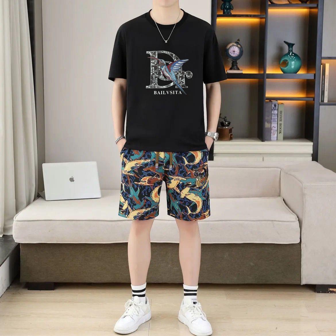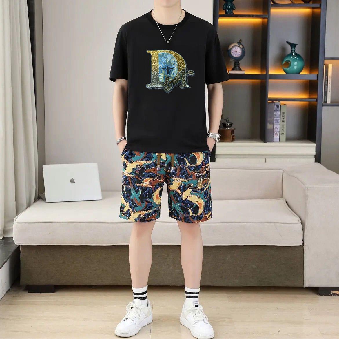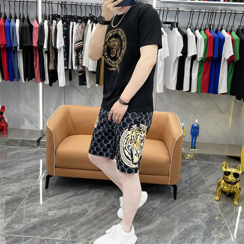 여름 남성 의류 패션 프린트 반팔 반바지 세트 티셔츠 트렌디 한 캐주얼 최고 스포츠 세트 도매