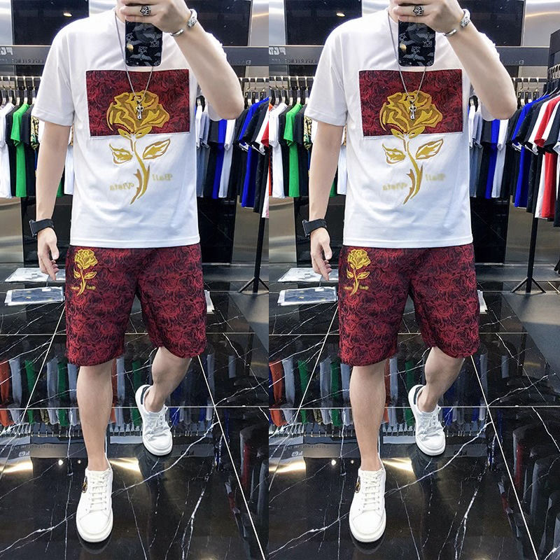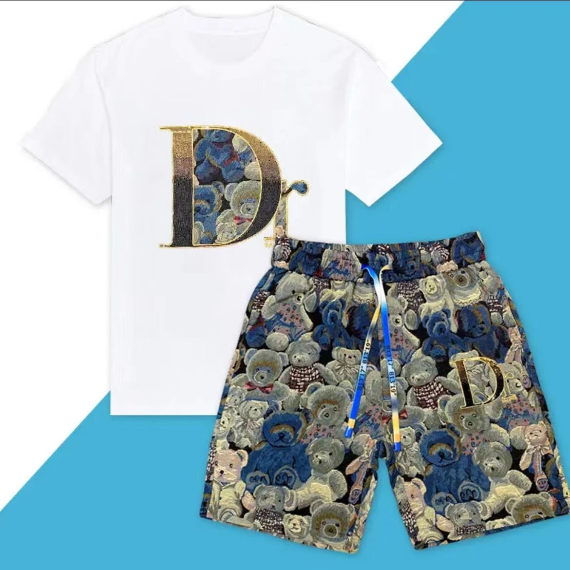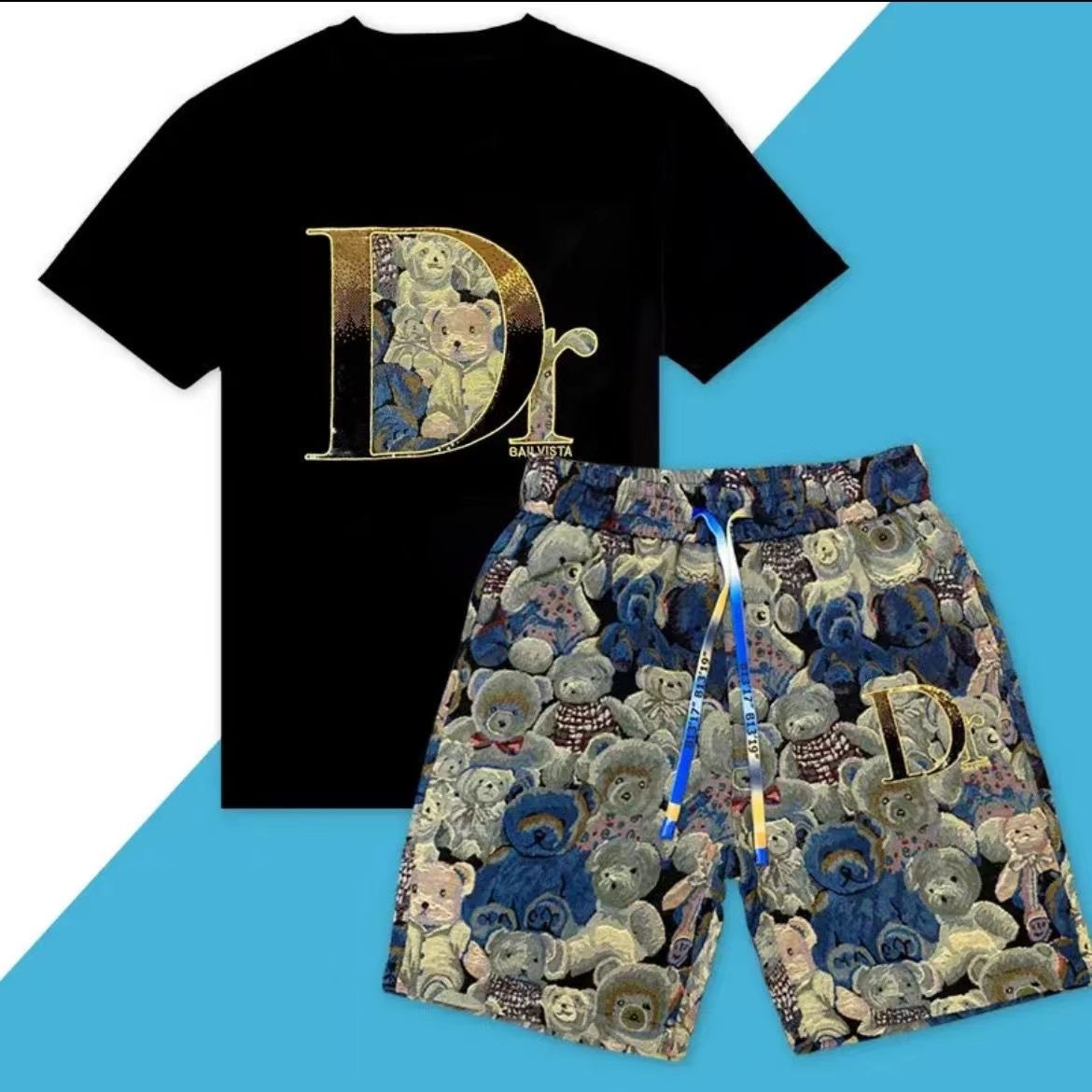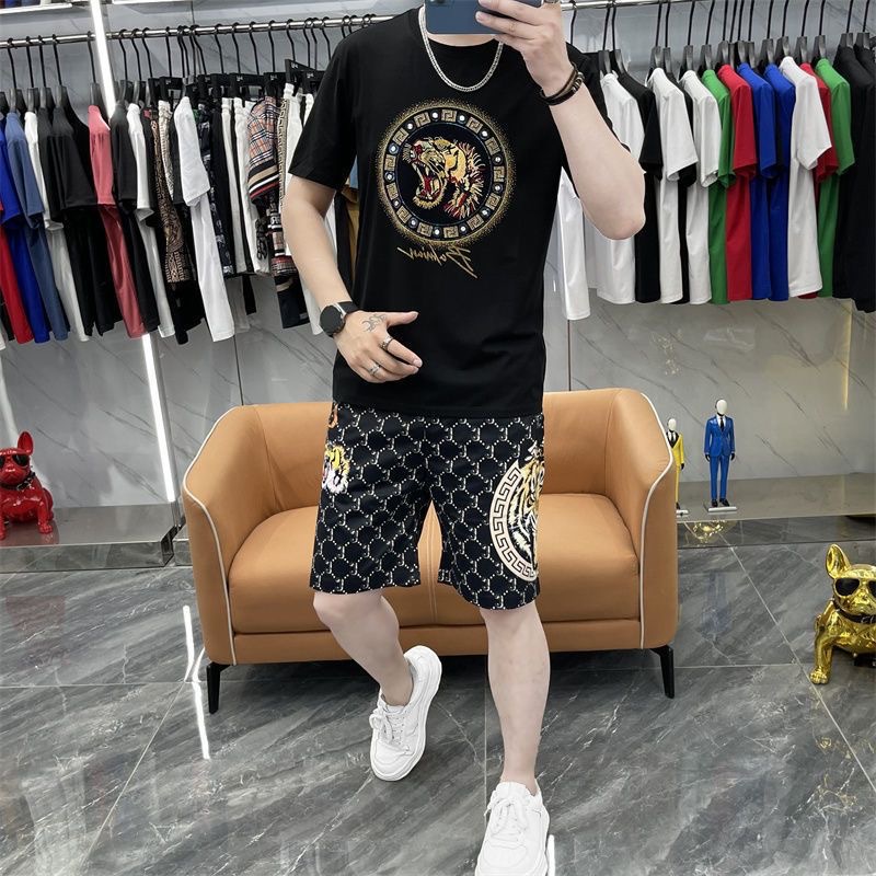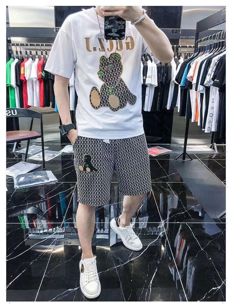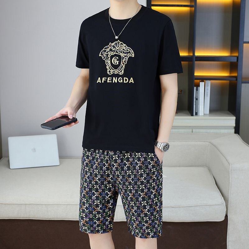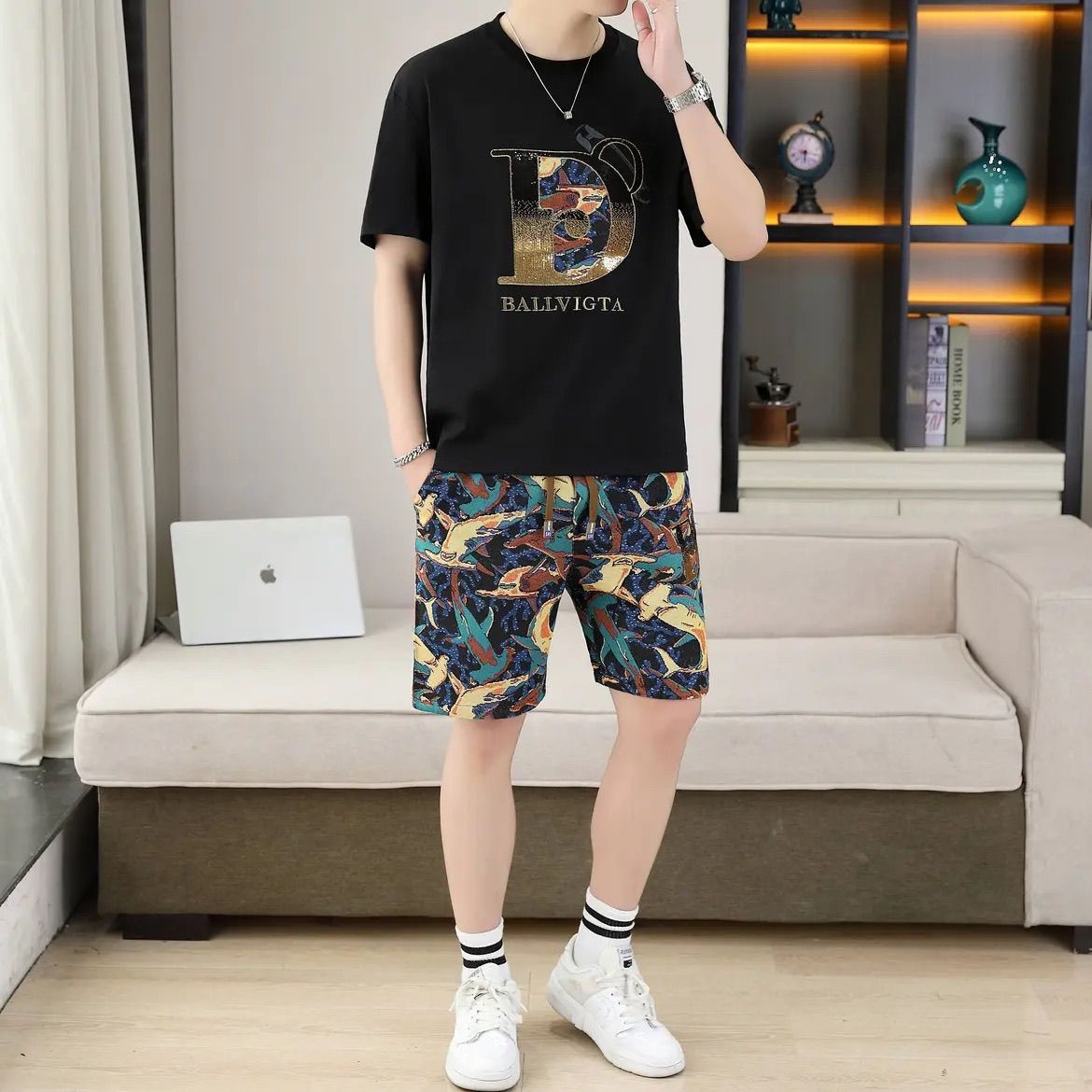 여름 남성 의류 패션 프린트 반팔 반바지 세트 티셔츠 트렌디 한 캐주얼 최고 스포츠 세트 도매