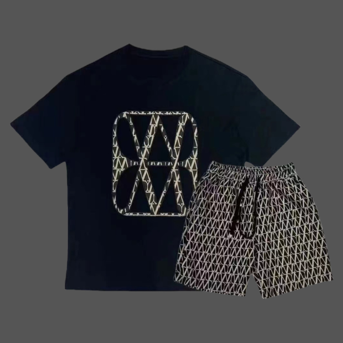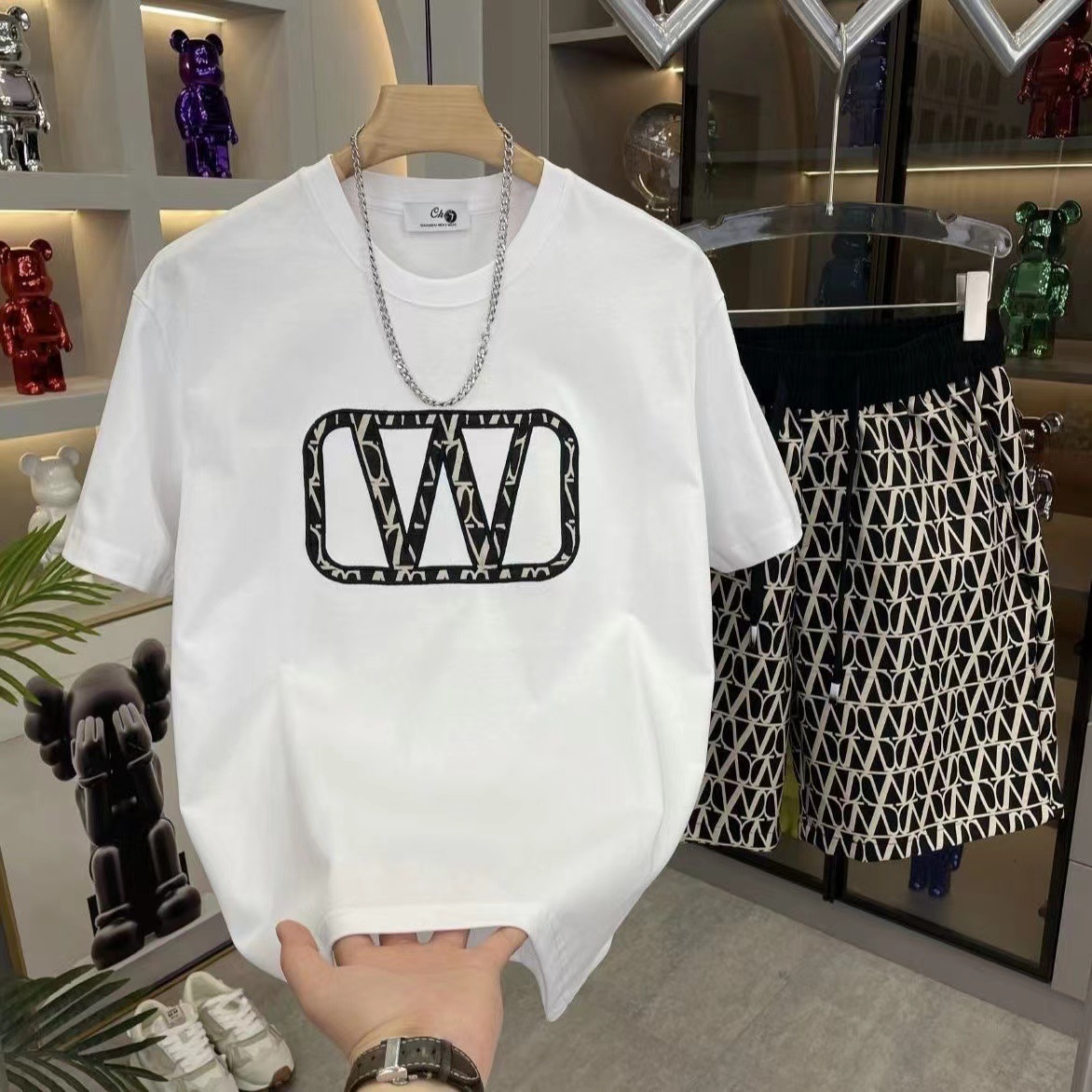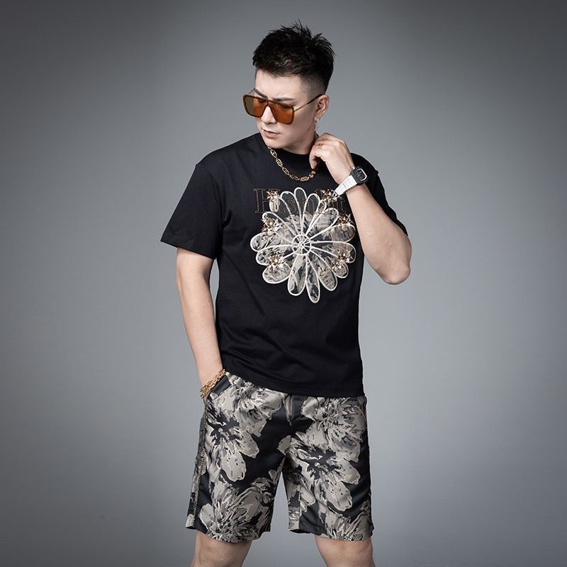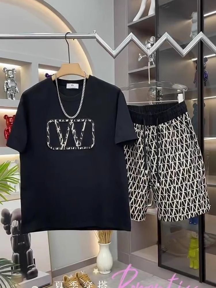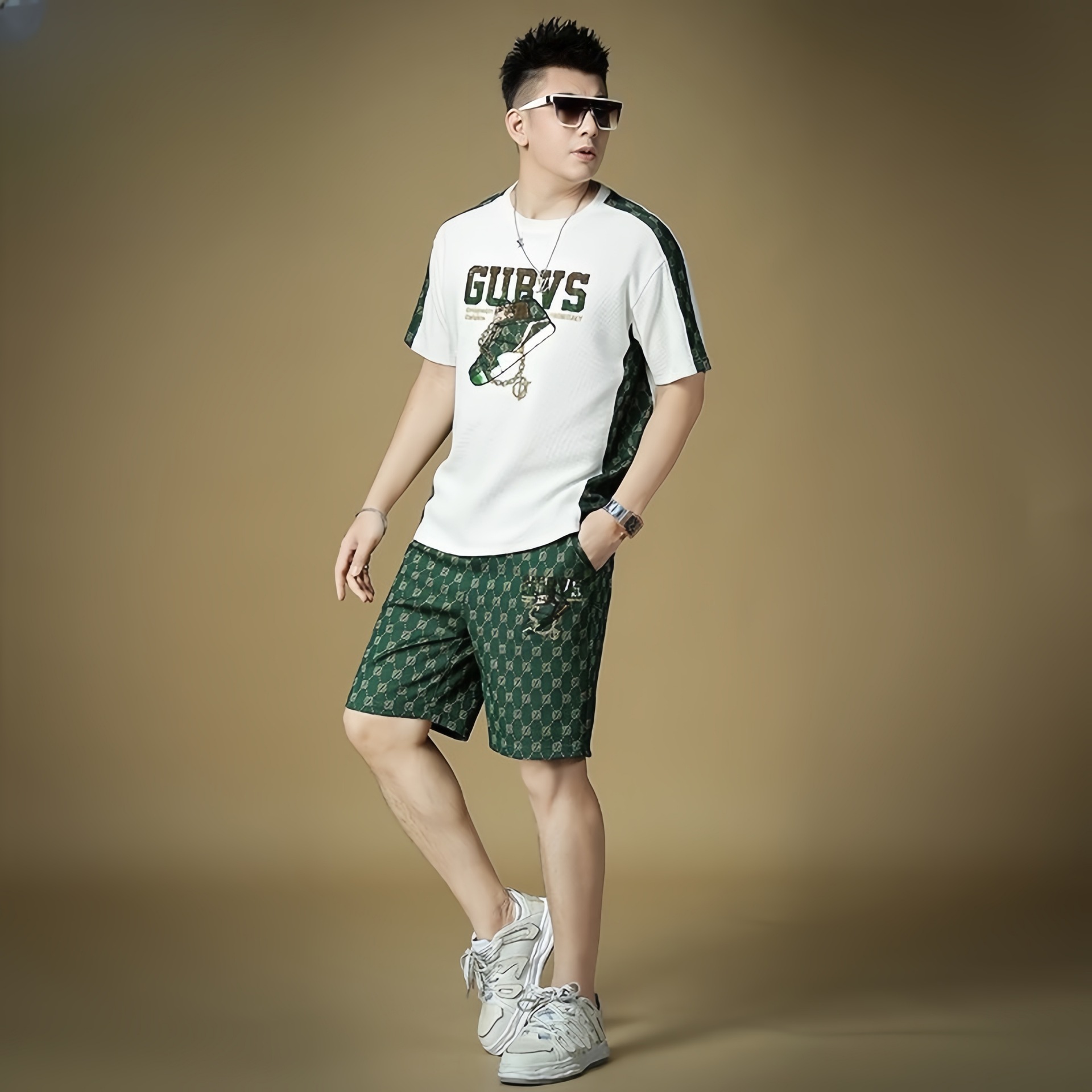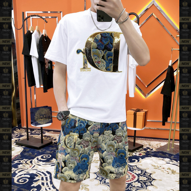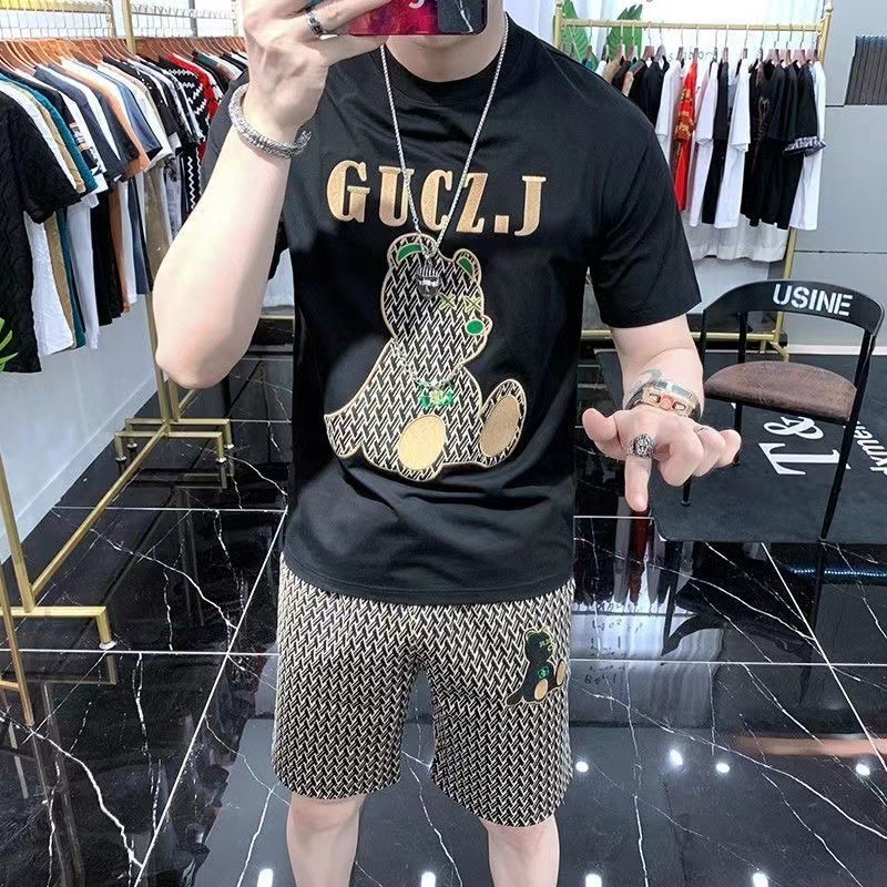 여름 남성 의류 패션 프린트 반팔 반바지 세트 티셔츠 트렌디 한 캐주얼 최고 스포츠 세트 도매