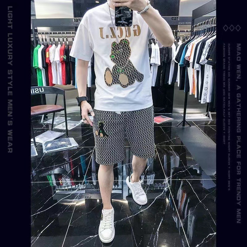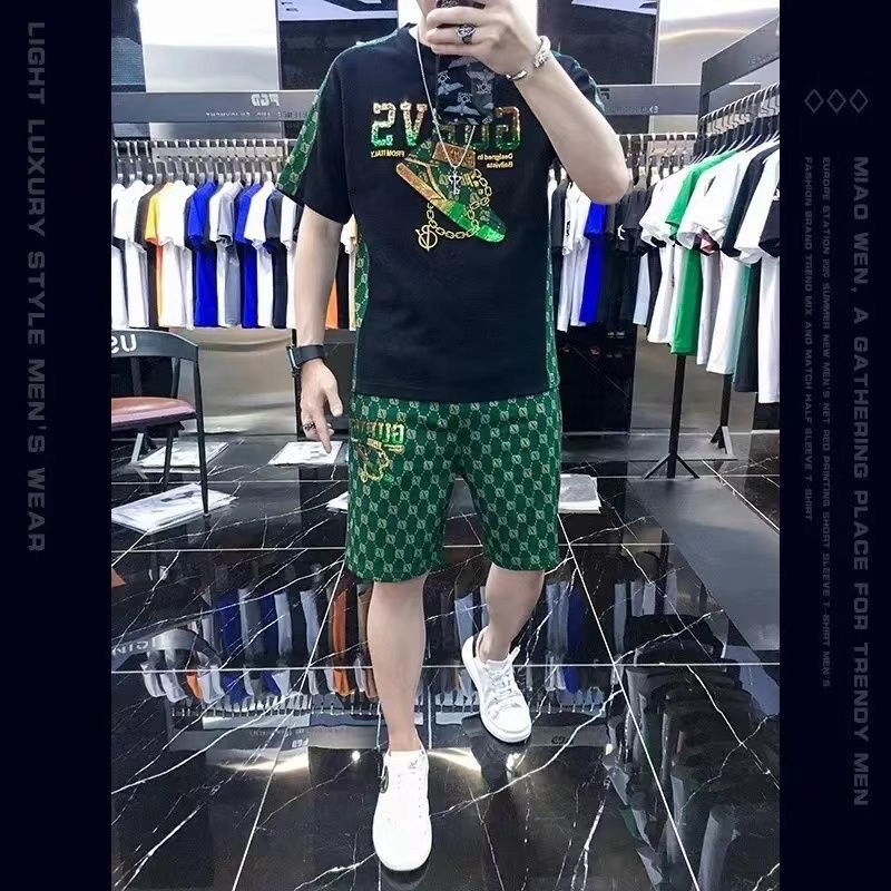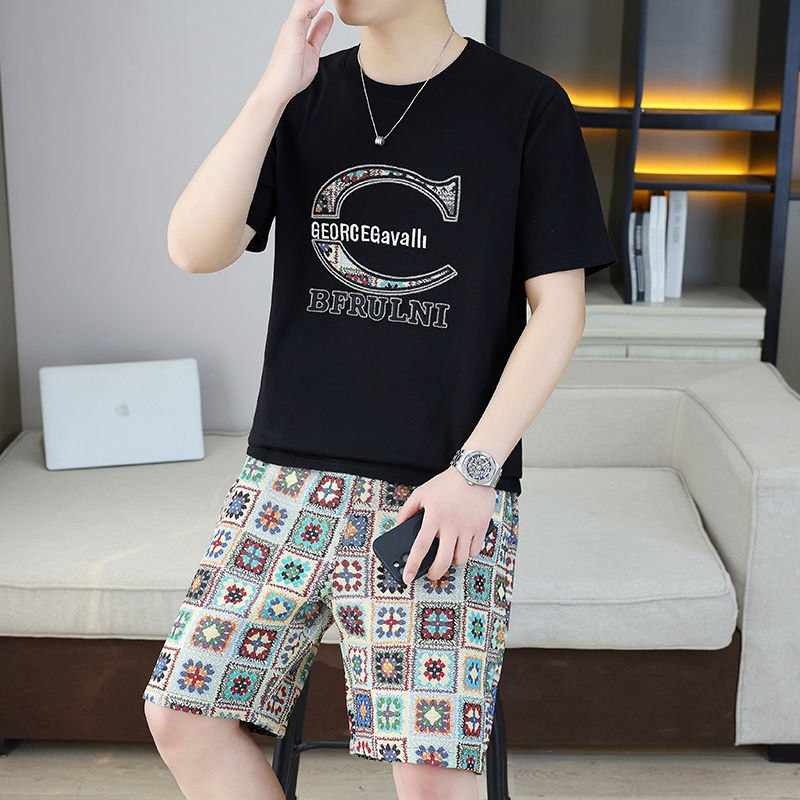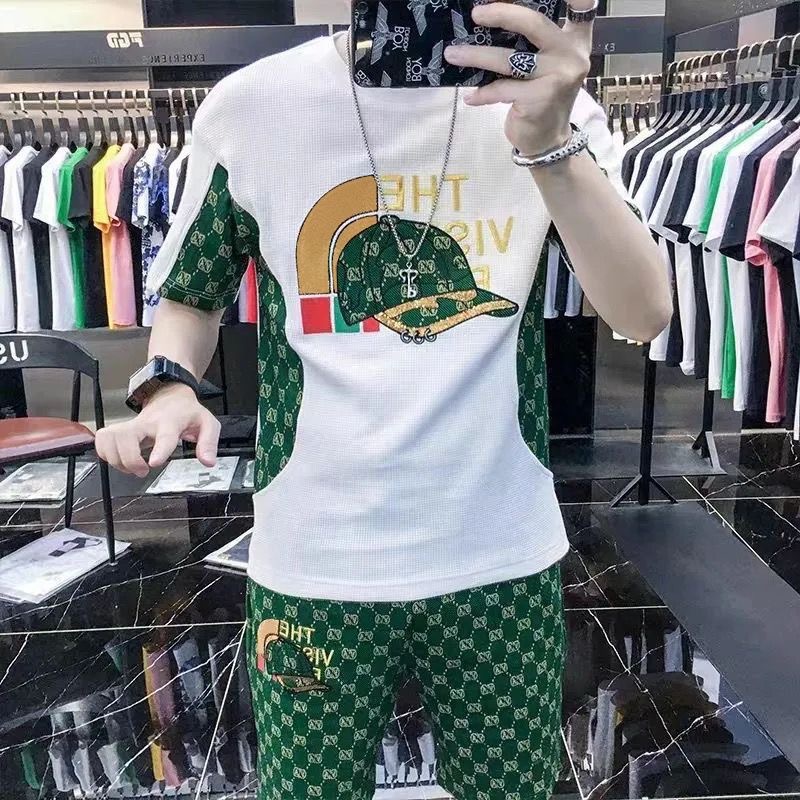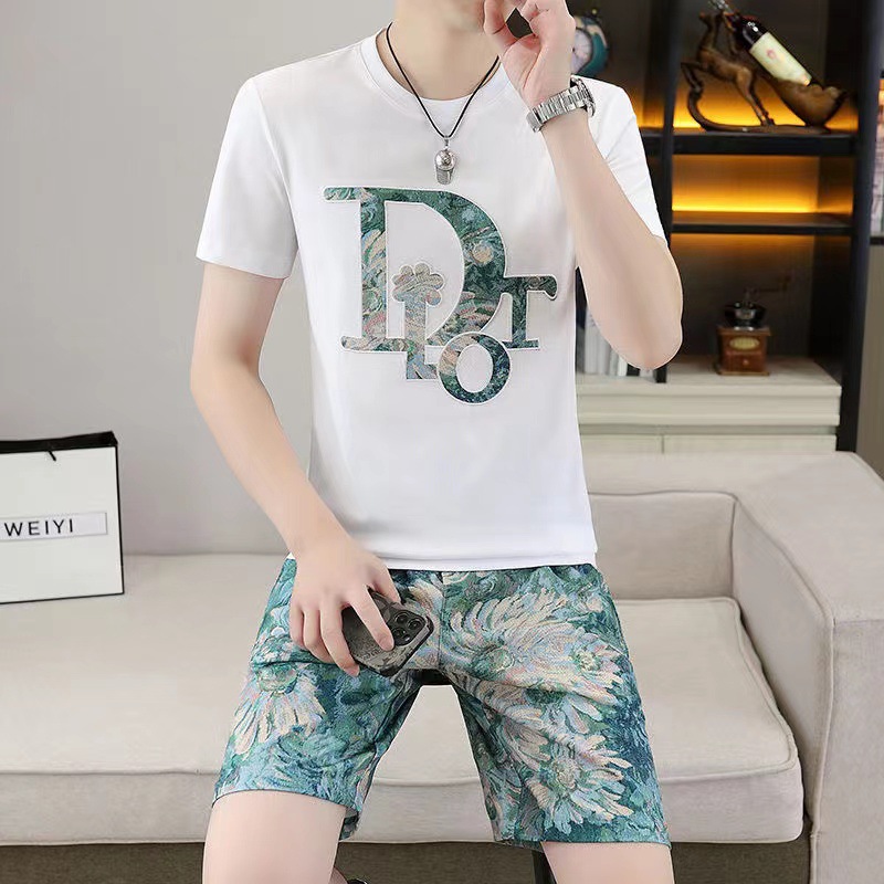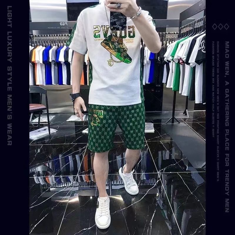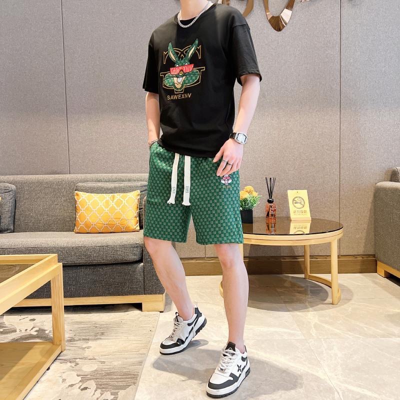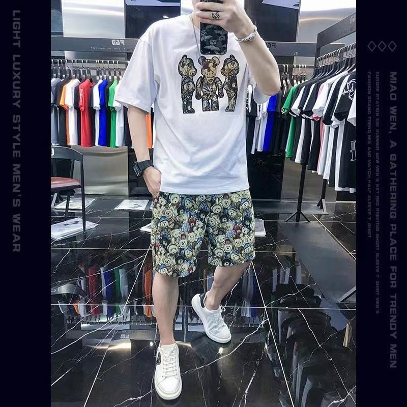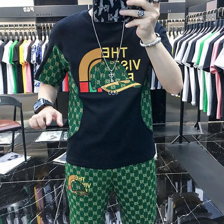 여름 남성 의류 패션 프린트 반팔 반바지 세트 티셔츠 트렌디 한 캐주얼 최고 스포츠 세트 도매스토어 가기