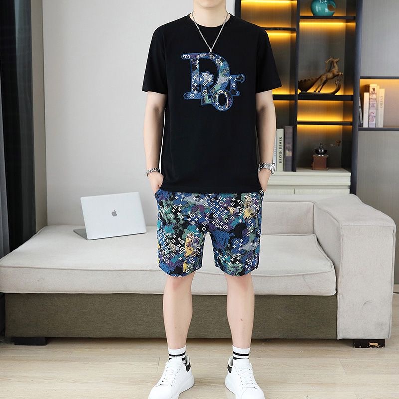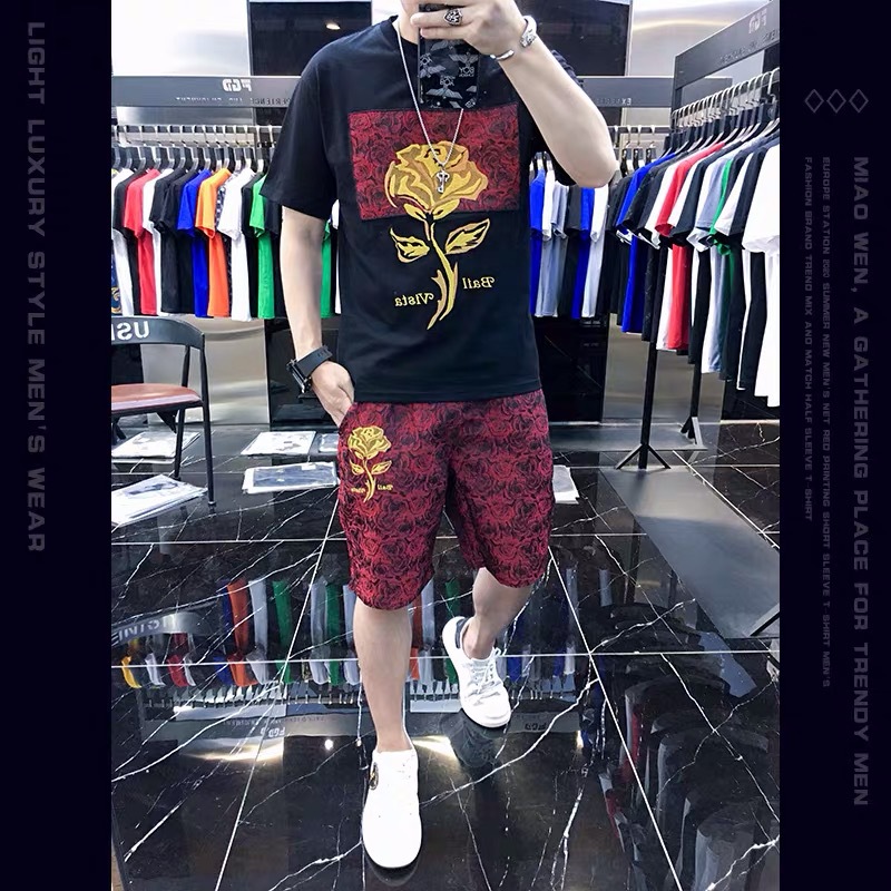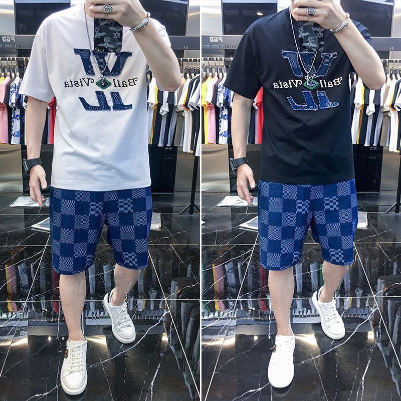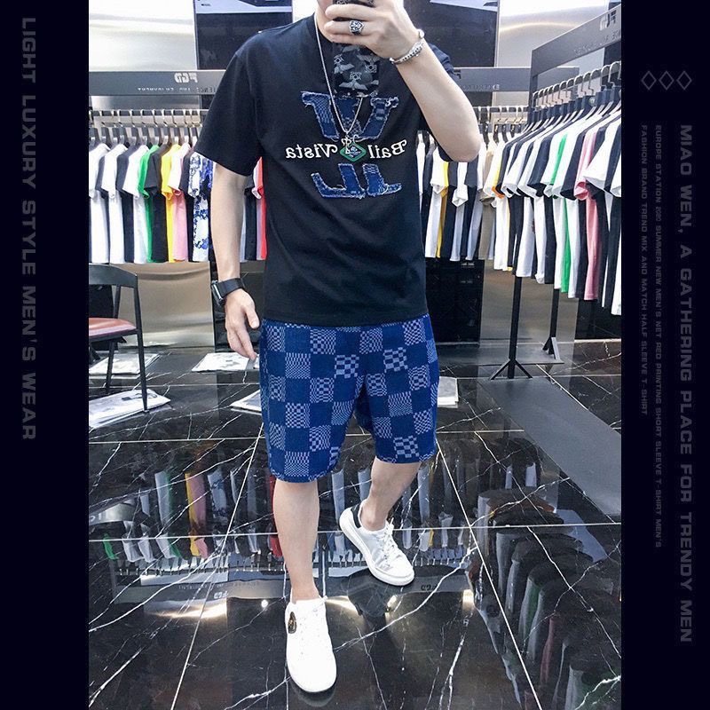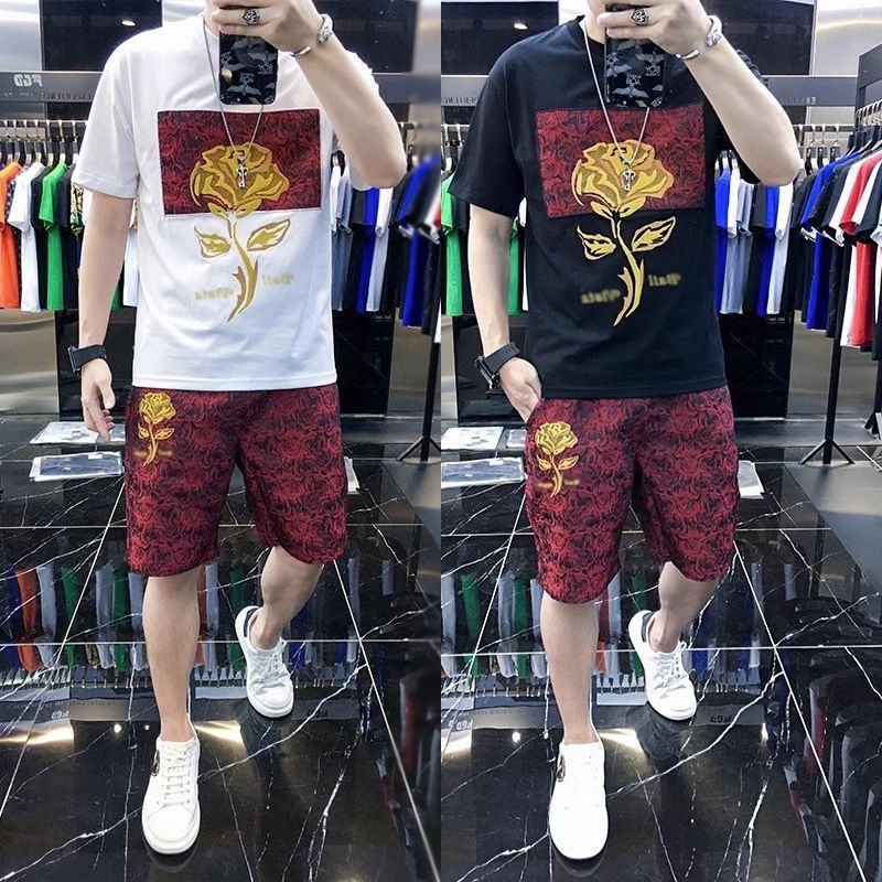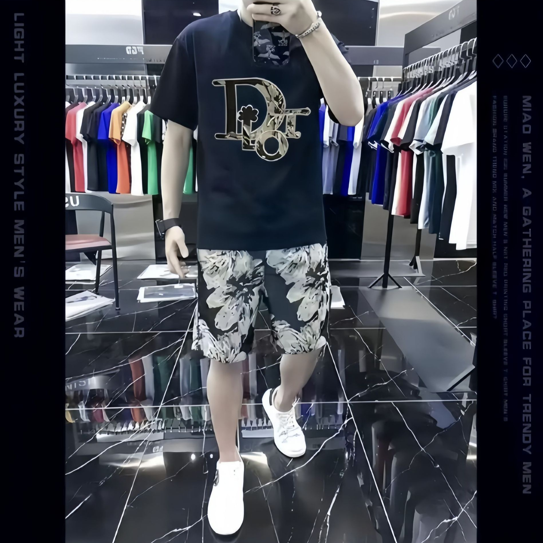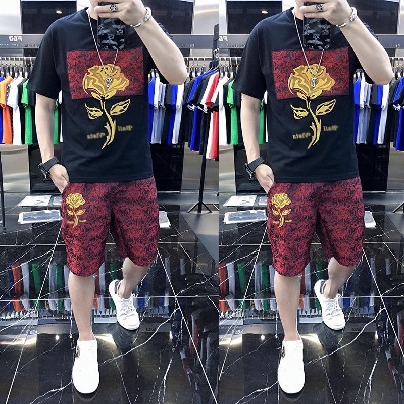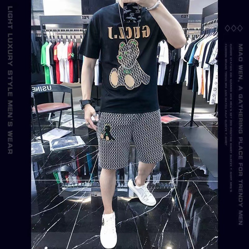 여름 남성 의류 패션 프린트 반팔 반바지 세트 티셔츠 트렌디 한 캐주얼 최고 스포츠 세트 도매스토어 가기
