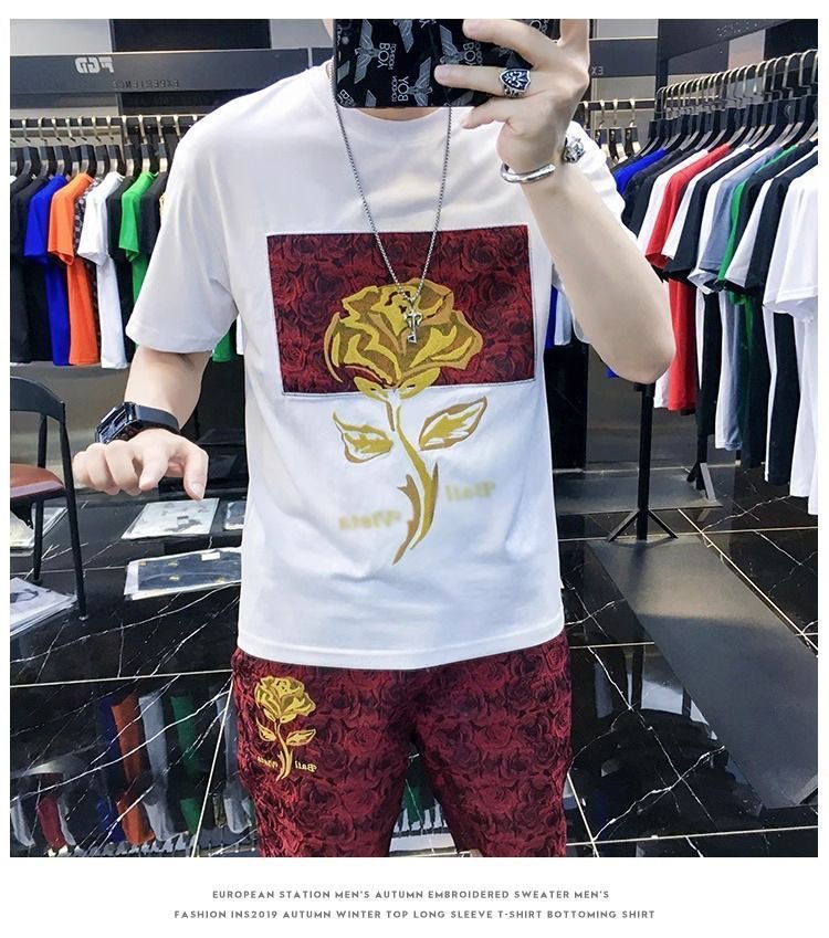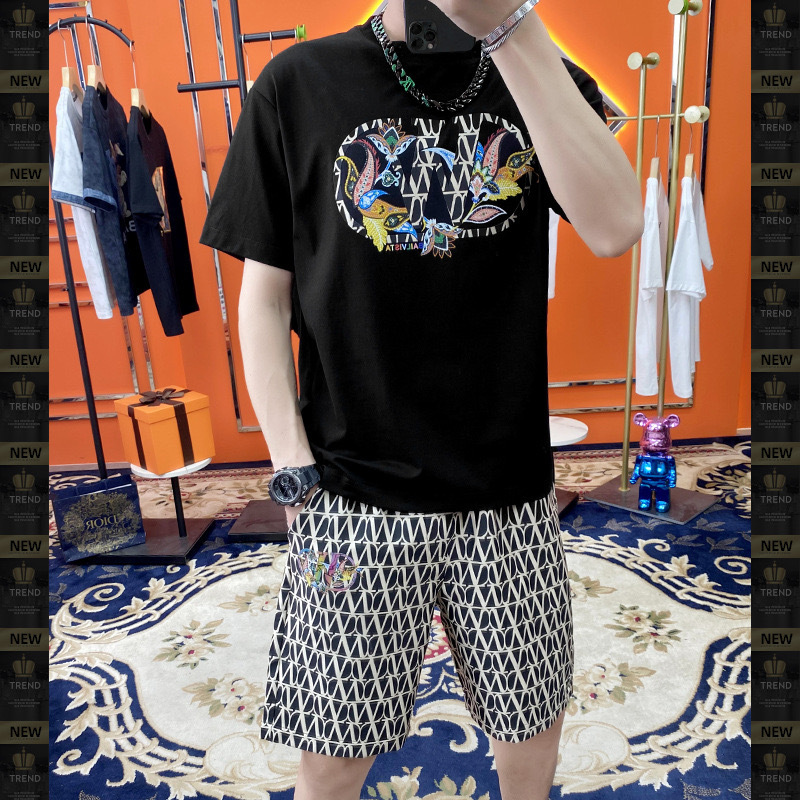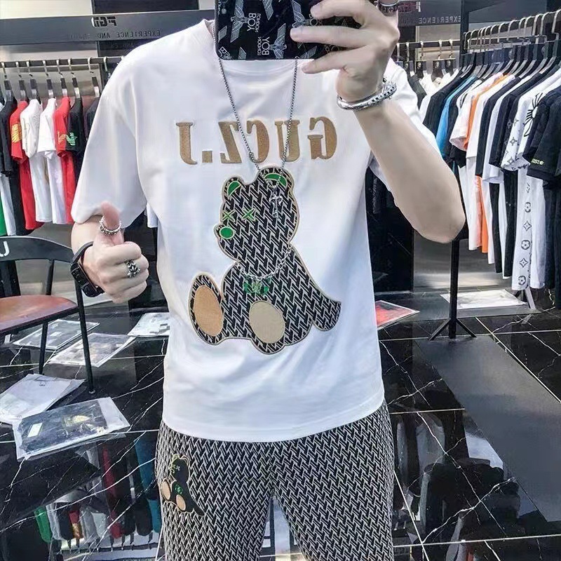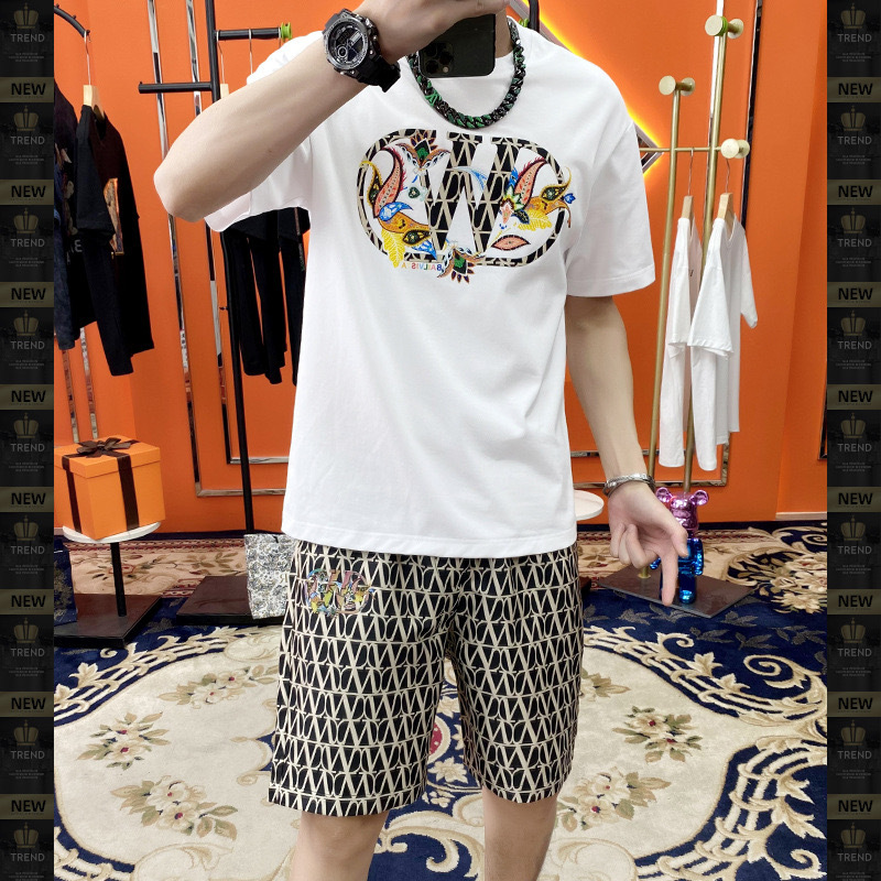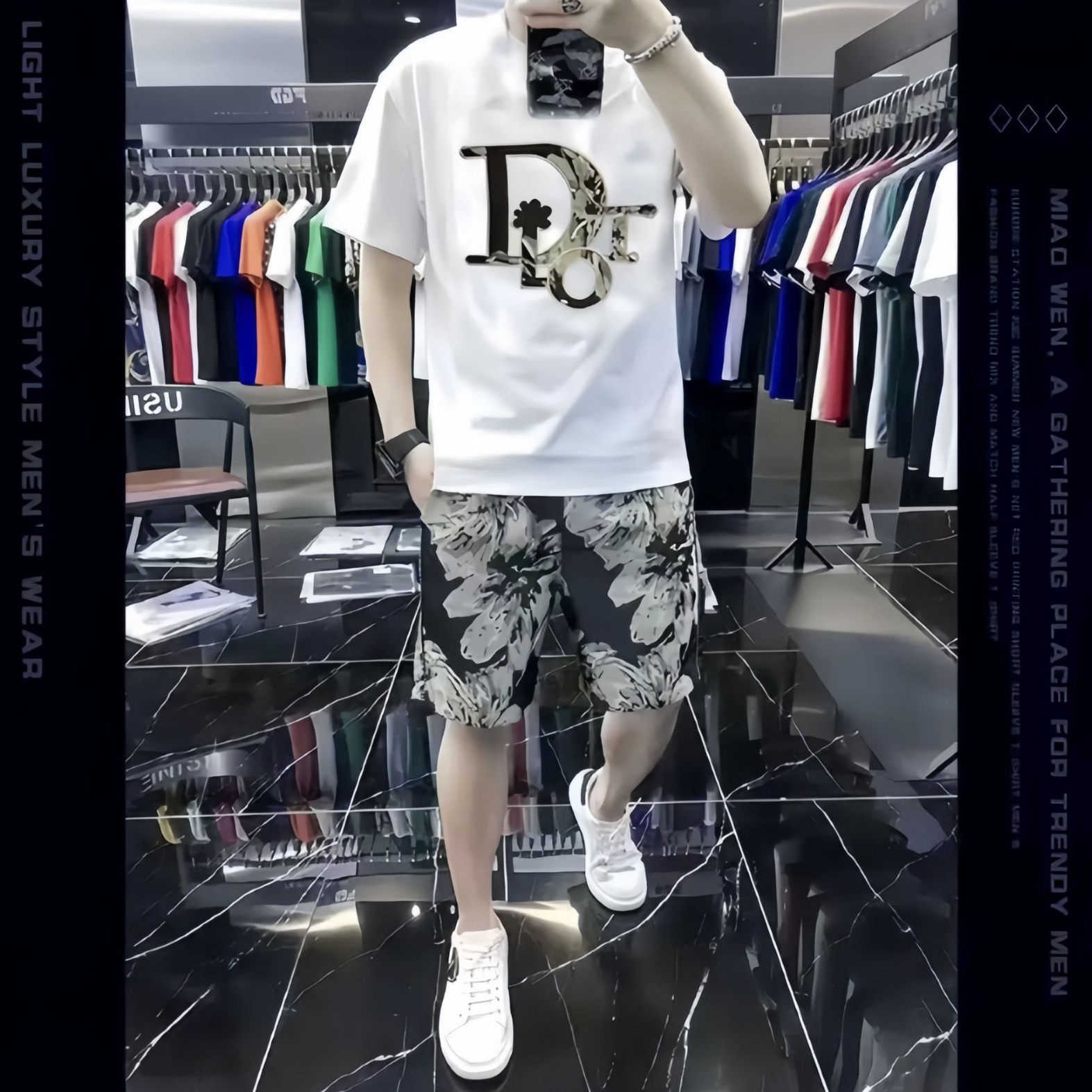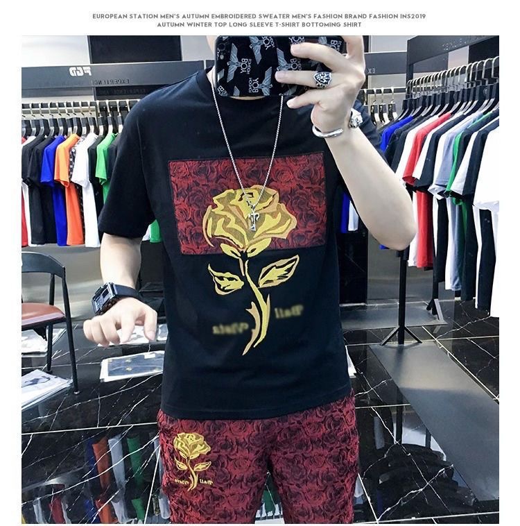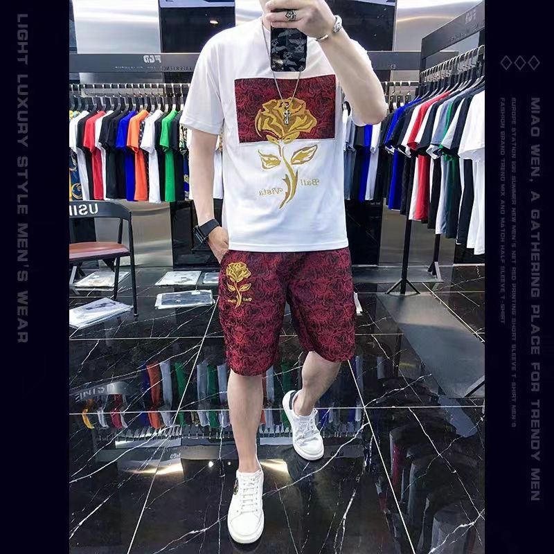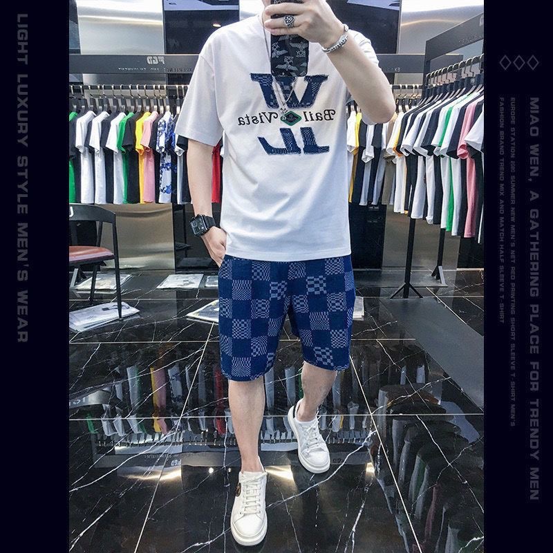 여름 남성 의류 패션 프린트 반팔 반바지 세트 티셔츠 트렌디 한 캐주얼 최고 스포츠 세트 도매스토어 가기
