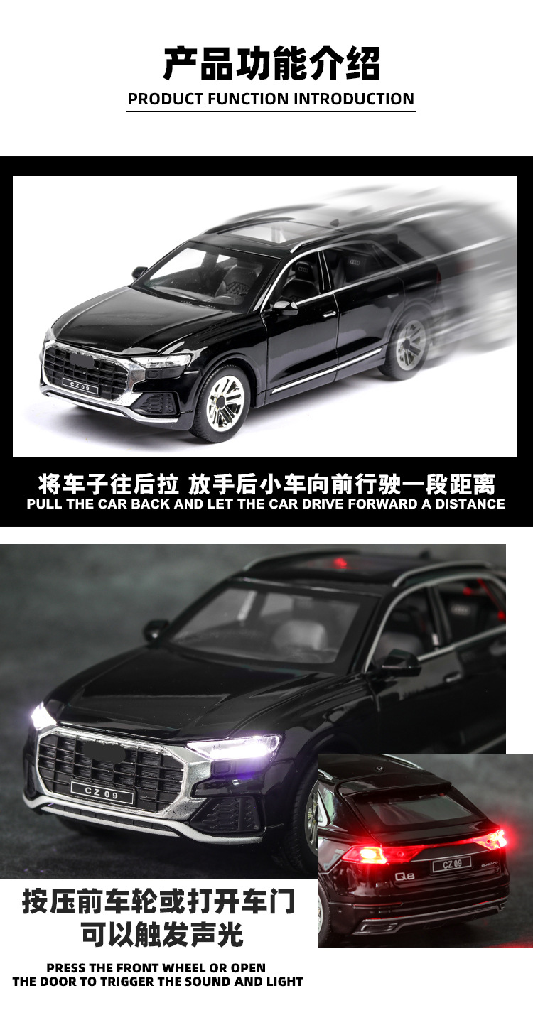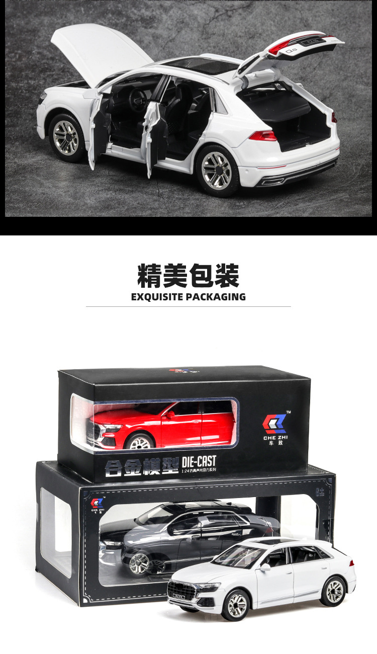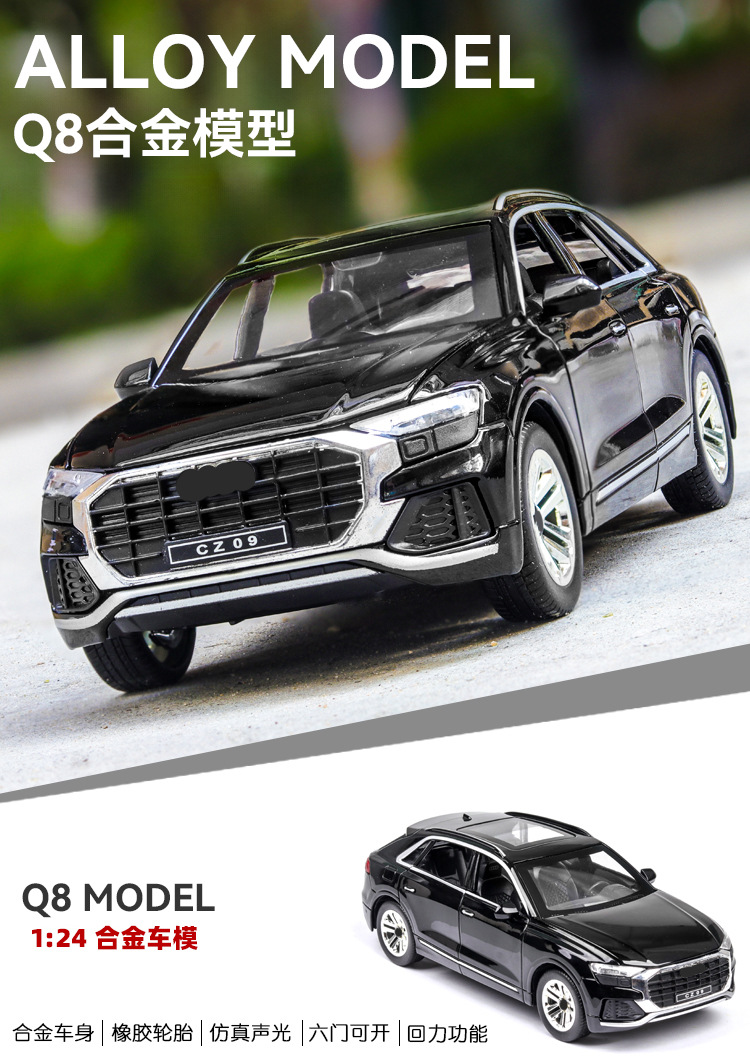 1:24 Audi Q8 오프로드 자동차 모델 시뮬레이션 SUV 금속 자동차 모델 합금 장난감 자동차 컬렉션 대외 무역 국경 간스토어 가기