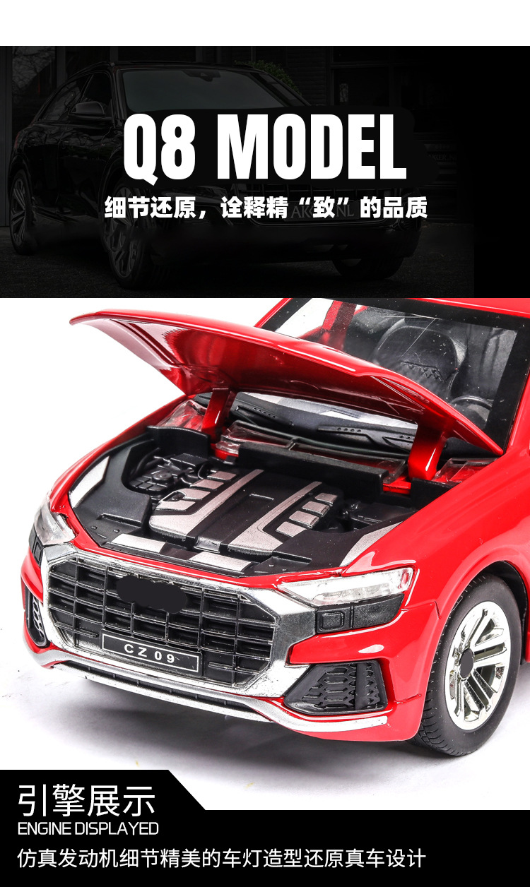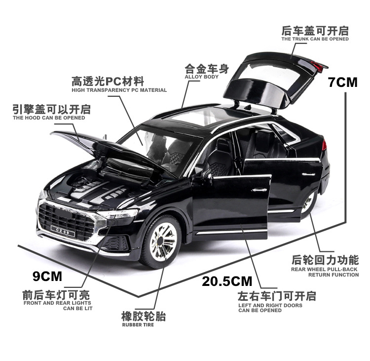1:24 Audi Q8 오프로드 자동차 모델 시뮬레이션 SUV 금속 자동차 모델 합금 장난감 자동차 컬렉션 대외 무역 국경 간