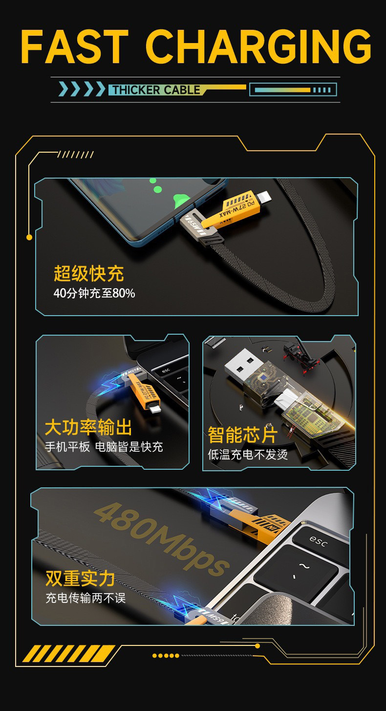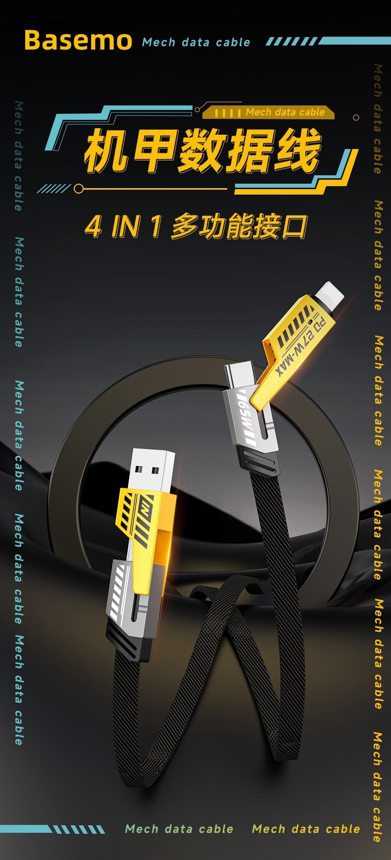 새로운 다기능 4 대 1 메카 데이터 라인 PD65W 초고속 충전 2 드래그 2 꼰 라인 유니버설 ip15스토어 가기