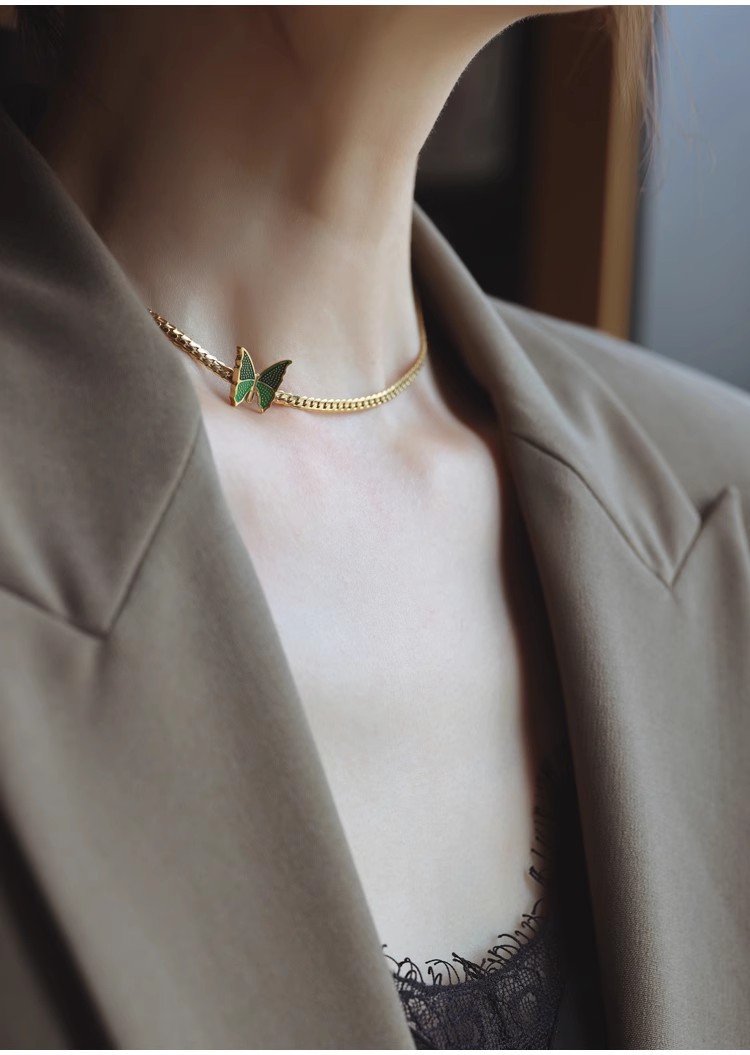 가벼운 럭셔리 비 페이딩 뱀 뼈 나비 목걸이 소녀 쇄골 체인 그물 붉은 기질 2024 새로운 목 체인스토어 가기