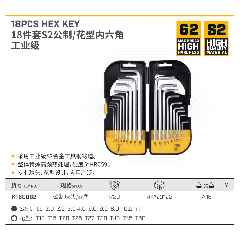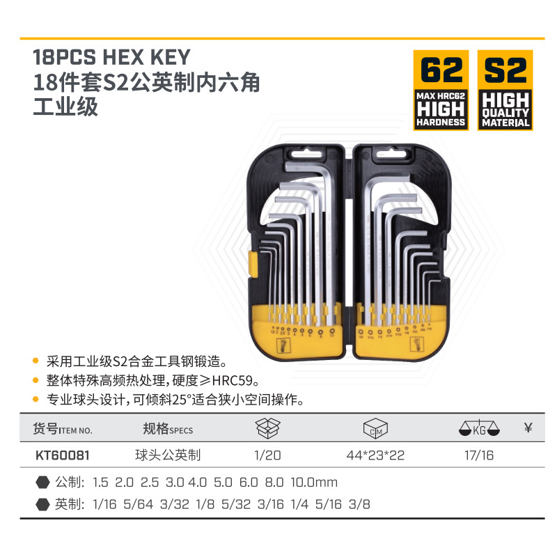 • KT60081/18 조각 미터 인치 육각형 소켓/S2/볼 헤드 중간 길이