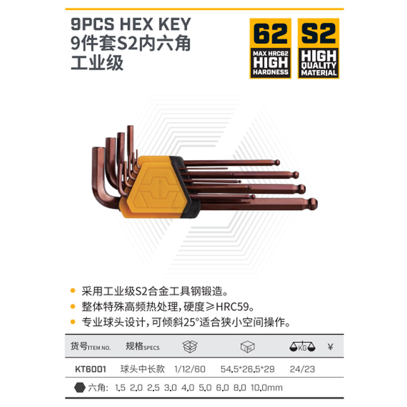 • KT6001/9 조각 육각형 소켓/S2 재질/볼 헤드 중간 길이