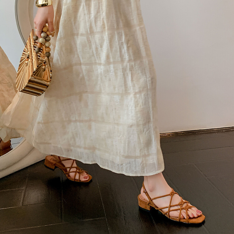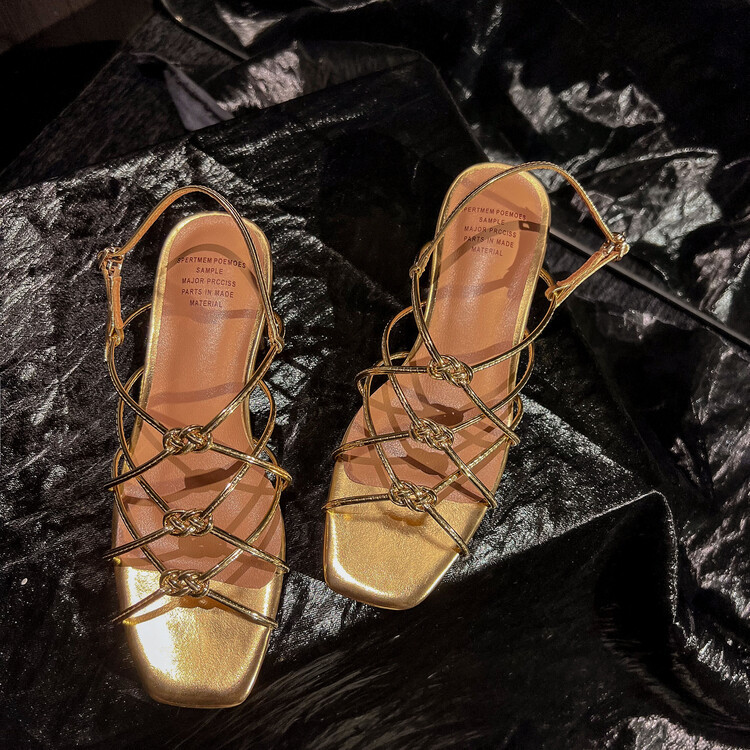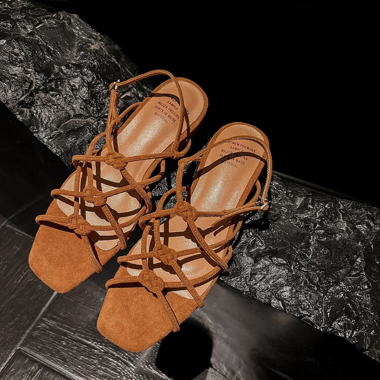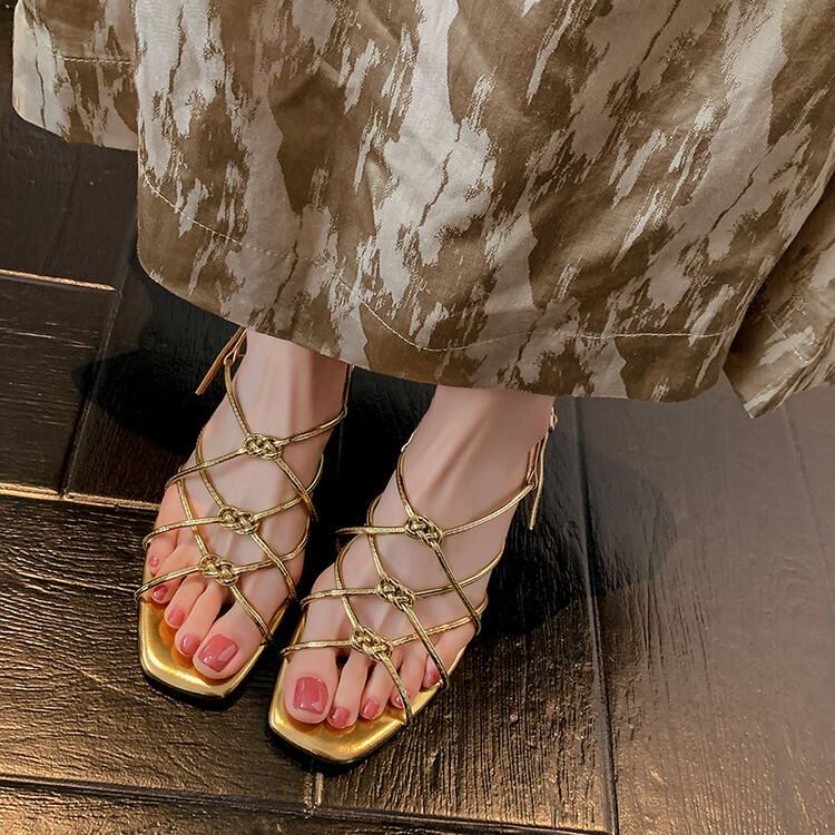 스트랩 짠 로마 샌들 여성용 플랫 힐 여름 새로운 작은 광장 발가락 오픈 발가락 패션 홀리데이 스타일 여성용 샌들