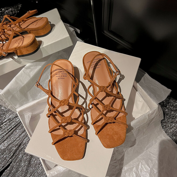 스트랩 짠 로마 샌들 여성용 플랫 힐 여름 새로운 작은 광장 발가락 오픈 발가락 패션 홀리데이 스타일 여성용 샌들스토어 가기