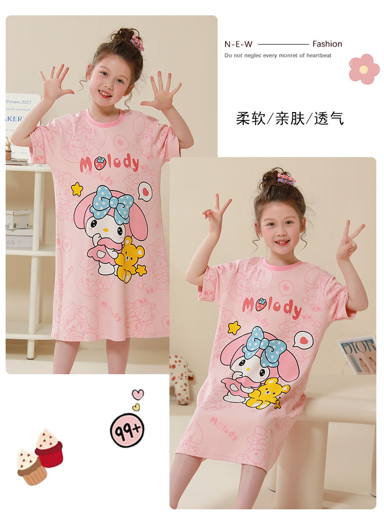 여름 소녀 잠옷 어린이 얇은 반팔 잠옷 만화 중 큰 어린이 귀여운 작은 소녀 아기 홈 옷