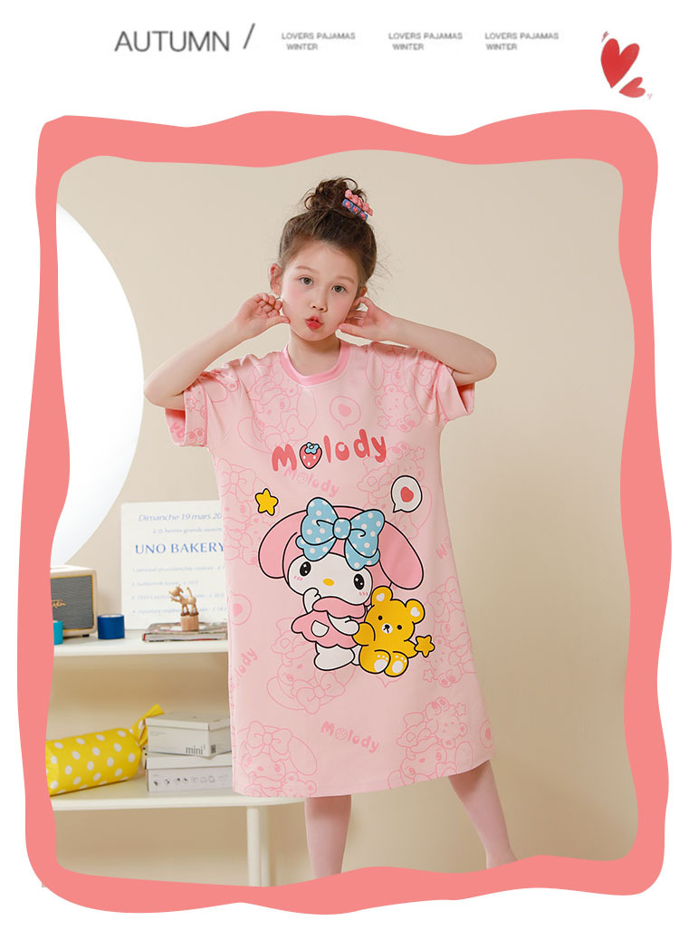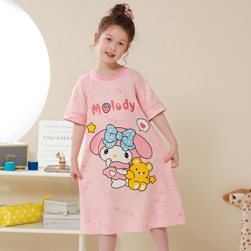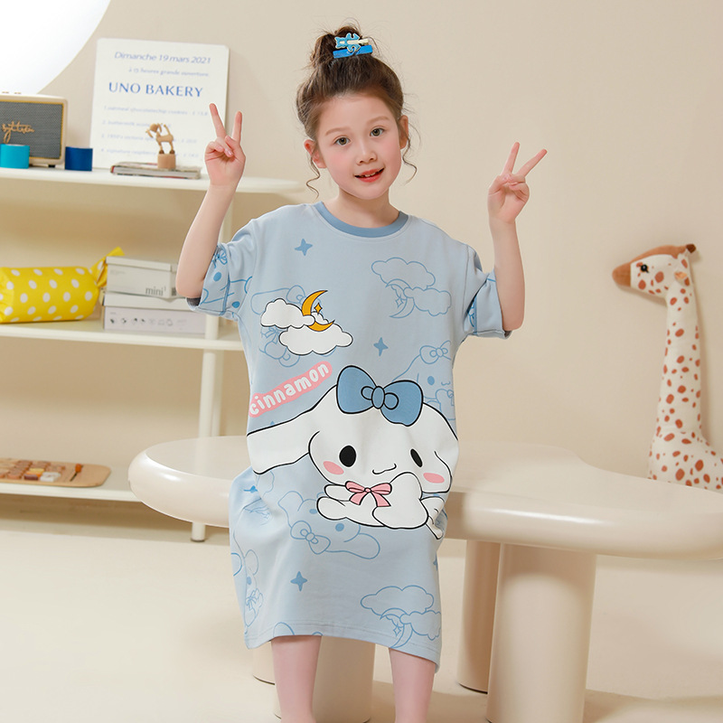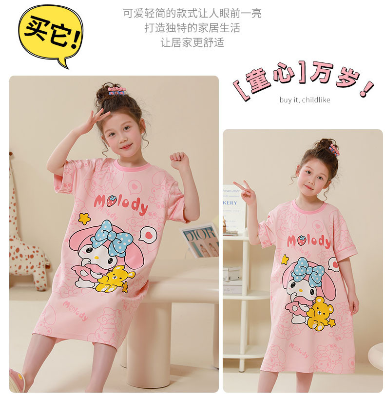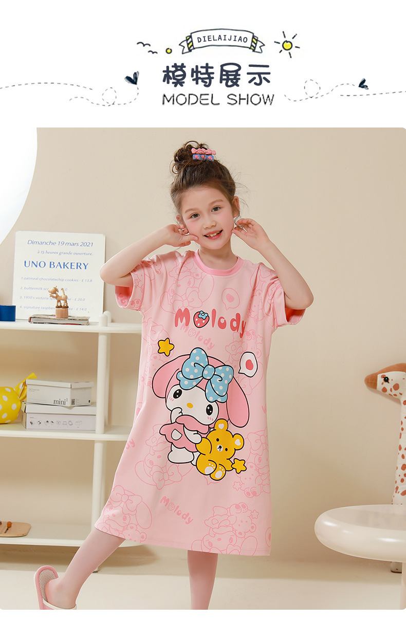 여름 소녀 잠옷 어린이 얇은 반팔 잠옷 만화 중 큰 어린이 귀여운 작은 소녀 아기 홈 옷스토어 가기