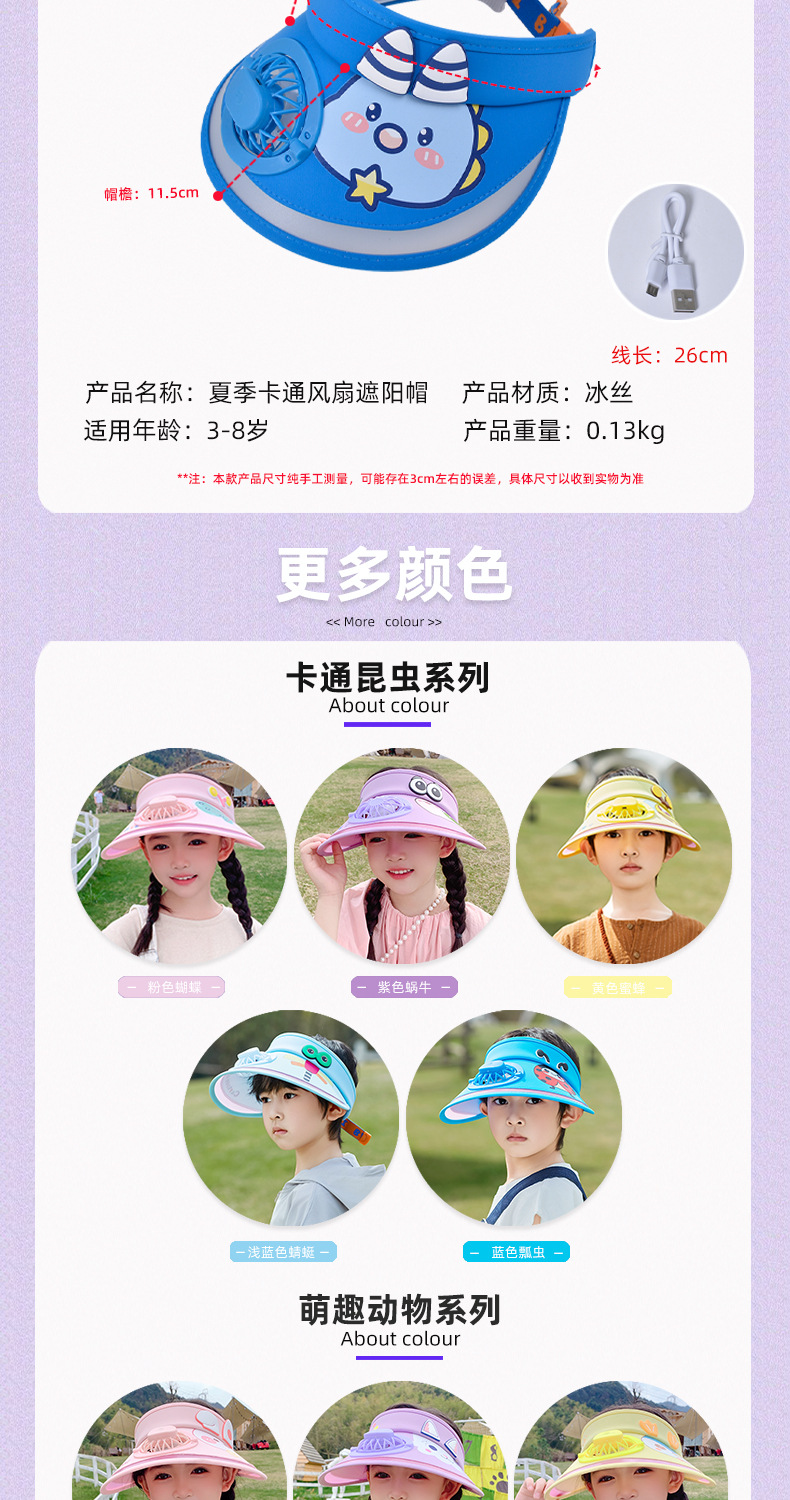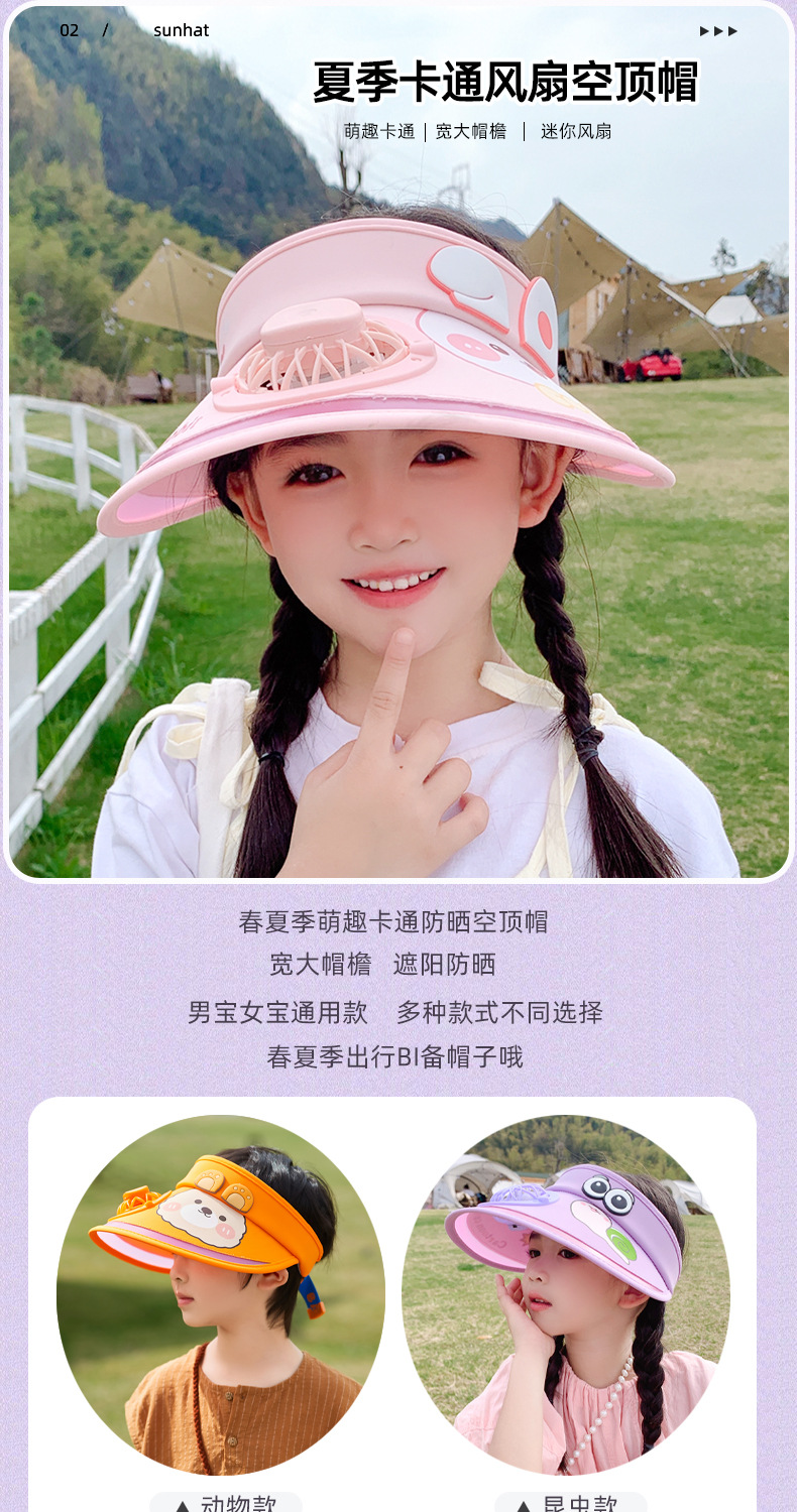 1154 소년 소녀를위한 귀여운 야외 선 스크린 모자 팬 빈 탑 모자 만화 1154 어린이 모자 빅 브림스토어 가기