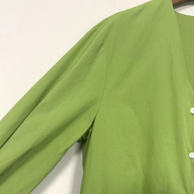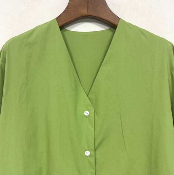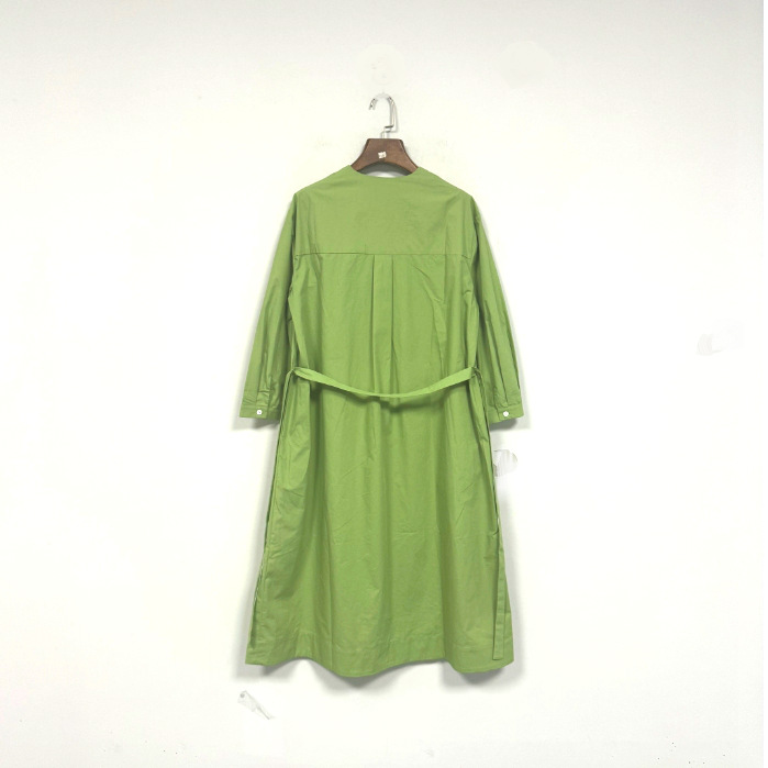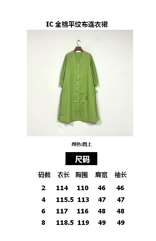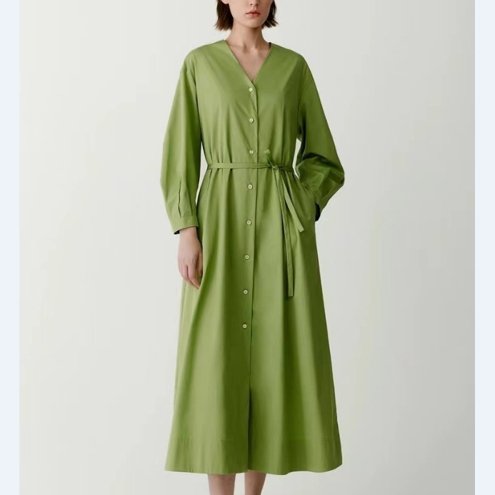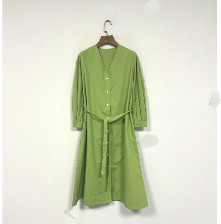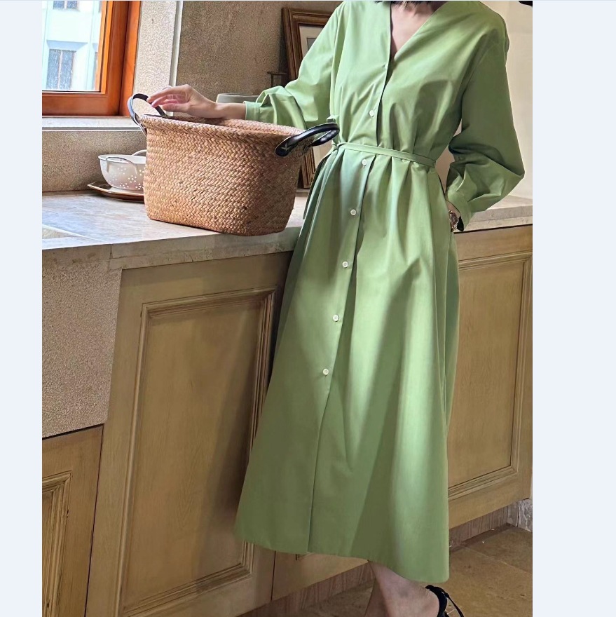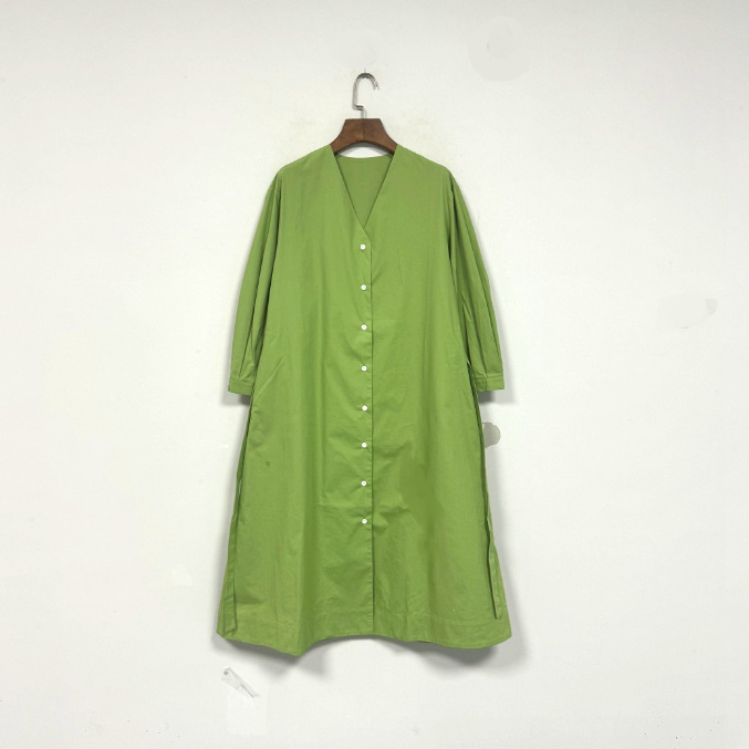 【특가】IC 봄 여름 신상 심플 무지 브이넥 순면 평직 단추 긴팔 셔츠 원피스