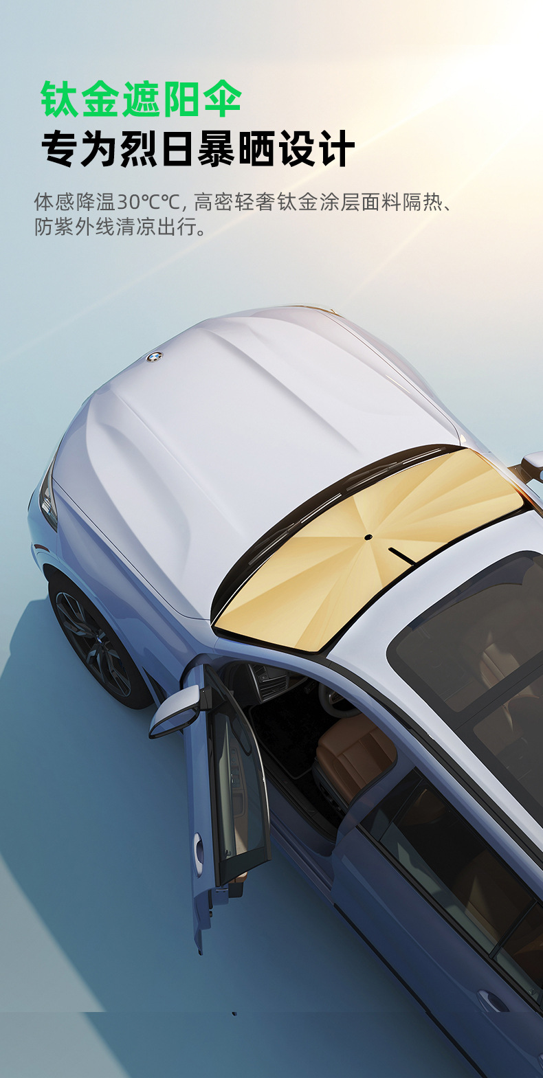 【产品材质】:碰击布+钛金胶、电镀铁伞骨、TPE软杆