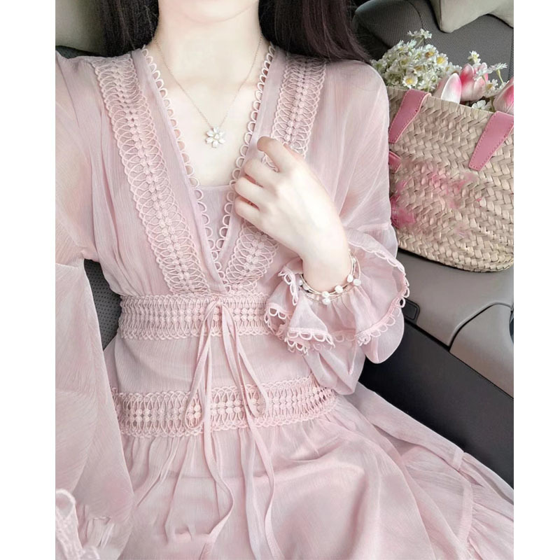 순수한 해변 휴가 높은 JI 센스 슈퍼 잘 생긴 draked 원피스 여성 여름 2023 새로운 긴 원피스스토어 가기