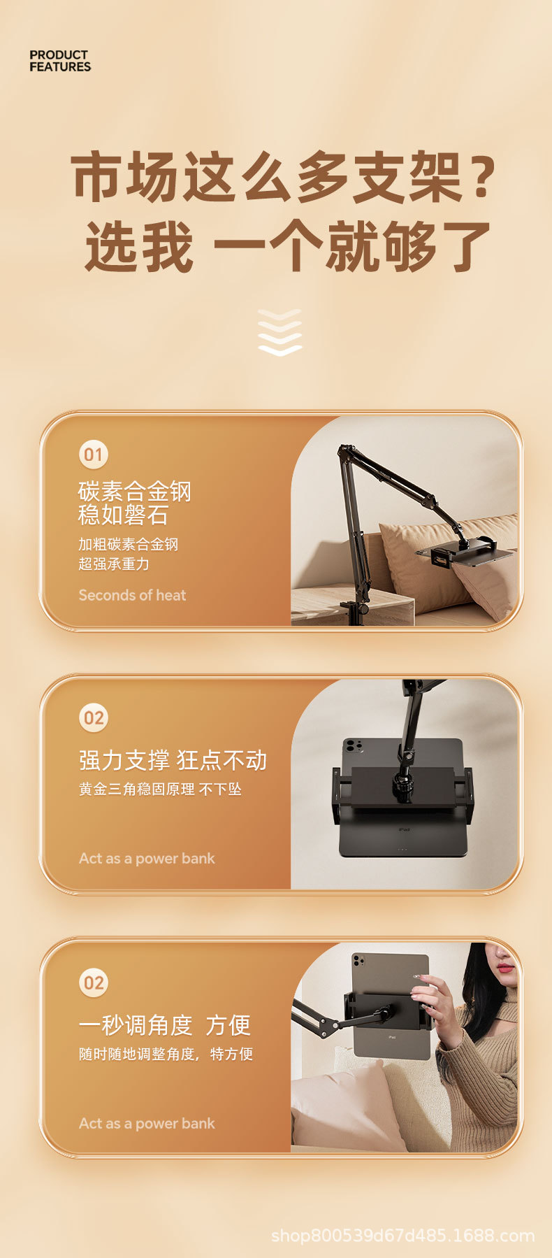 캔틸레버 게으른 브래킷 휴대 전화 태블릿 브래킷 데스크탑 침대 옆 일반 사무실 기숙사 드라마 금속 지원 프레임