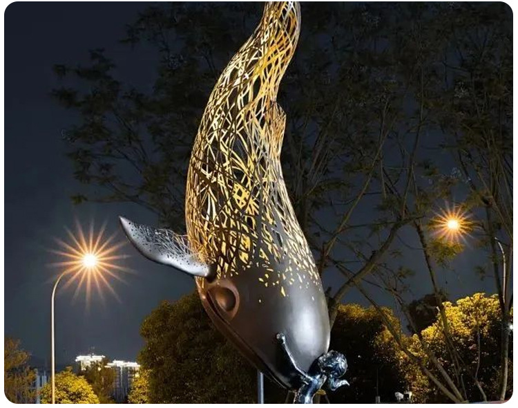 대형 중공 돌고래 조각 빛 렌더링 야외 돌고래 예술 장식품 스테인레스 스틸 돌고래 조각스토어 가기