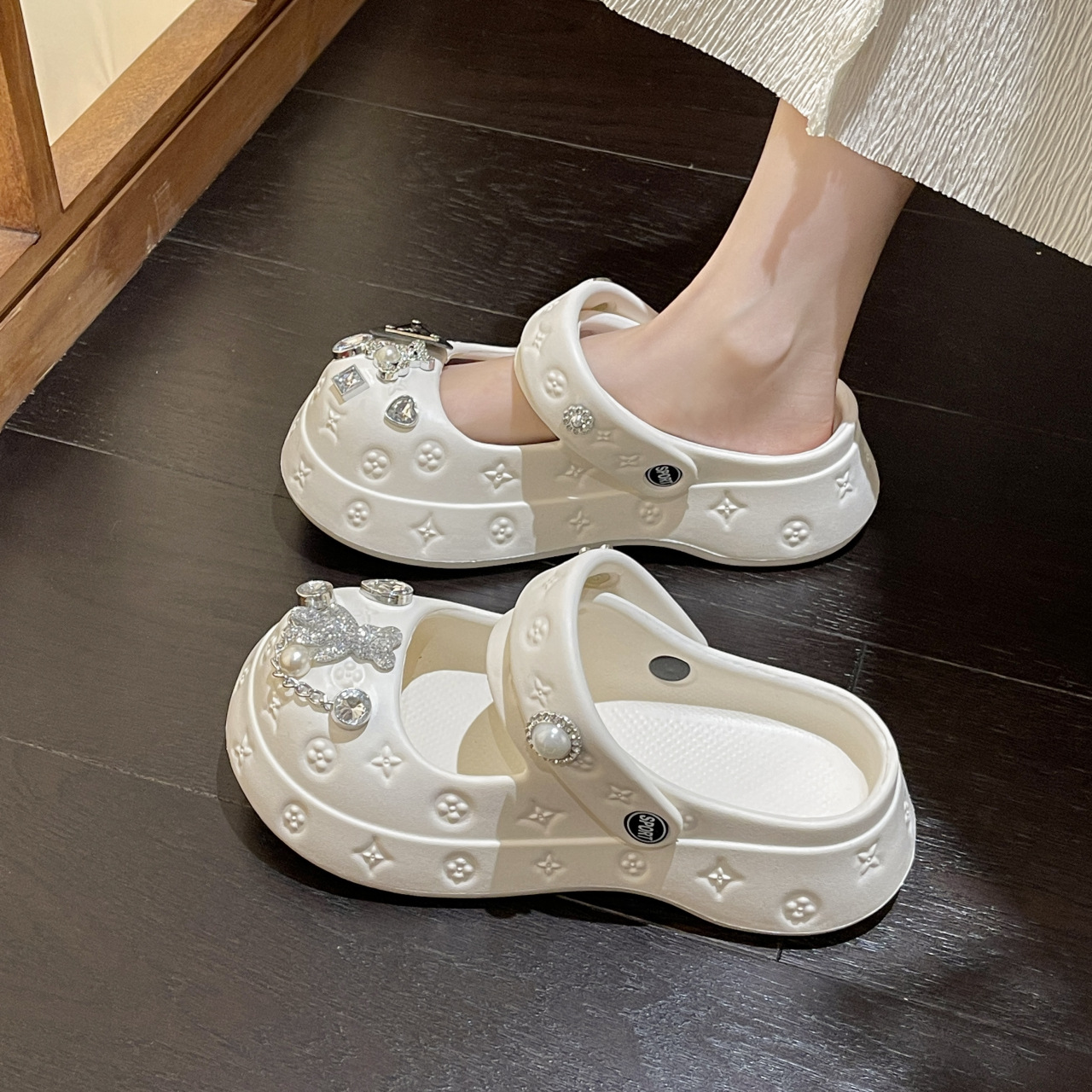 | 手工制品难免有些胶水印,介意慎拍! 1、欢迎光临!我们所有款式均是手工半制作的批发商品,产品没有本身质量问题不退不换。因为制作难度上略大,无法避免线头或胶济,会尽可能避免,花和宝石都是高温烫上去 比较牢固但是不排除路上掉落,如有掉落亲可以自己DIY 下哦,鞋底和侧面偶尔有洞洞的和胶水,不属于质量问题不退换的哈 2、配件部分地方偶尔有点小区别,这些都属于正常情况不退换的。 《EVA、PVC》系列的拖鞋因为材质原因可能有些会有很小的洞洞,这个不可避免哦! 喜欢退换货的朋友们请考虑好,避免发生不愉快! 3、本店铺默认无痕发货!!!如需要吊牌合格证等,请私聊客服了解哈! |