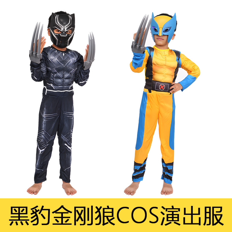 할로윈 의상 코스프레 애니메이션 키즈 남성 블랙 팬더 울버린 마블 영웅 무대 공연 근육 세트스토어 가기