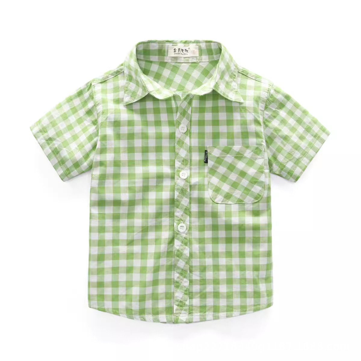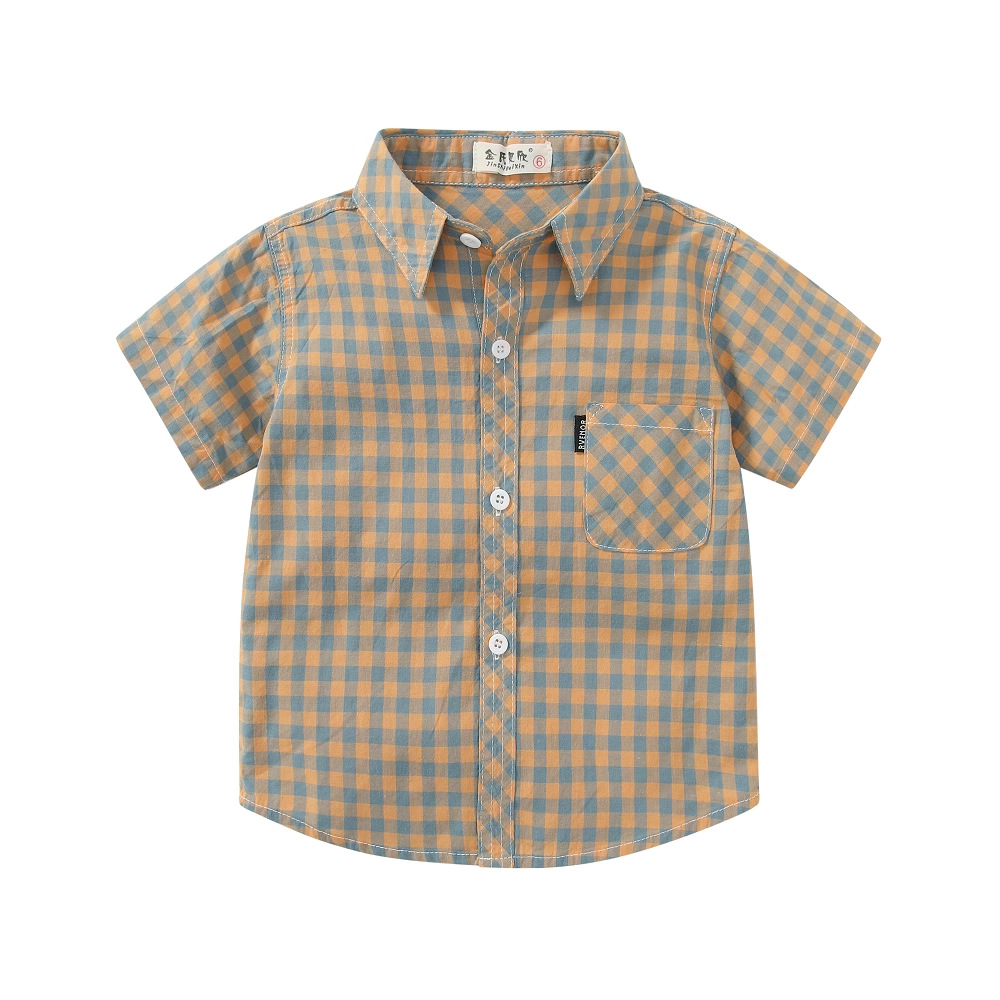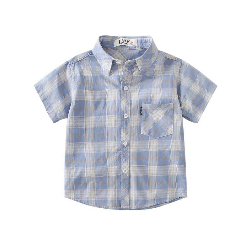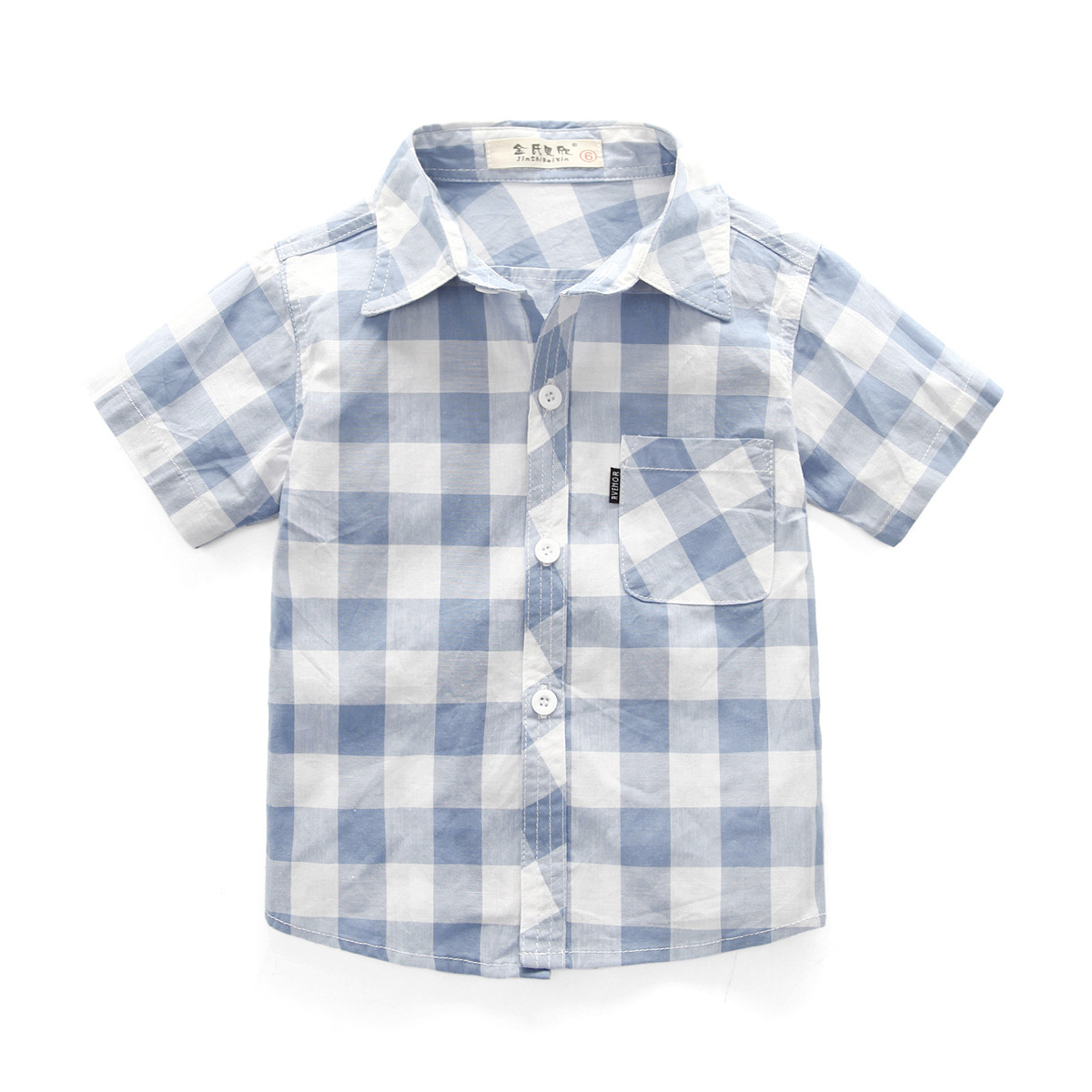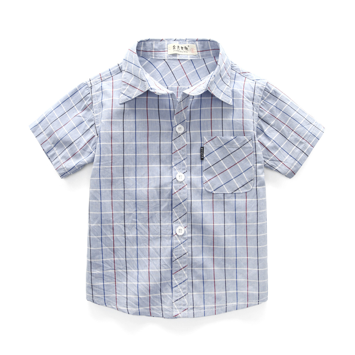 남학생 반소매 셔츠 순면 아동복 대형 어린이 탑 유아용 격자 무늬 셔츠 서양식 반소매 셔츠스토어 가기