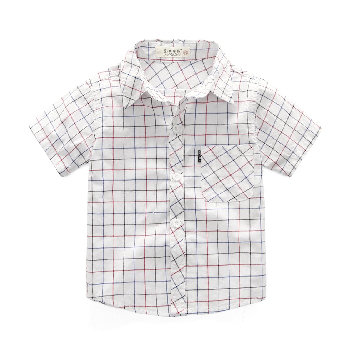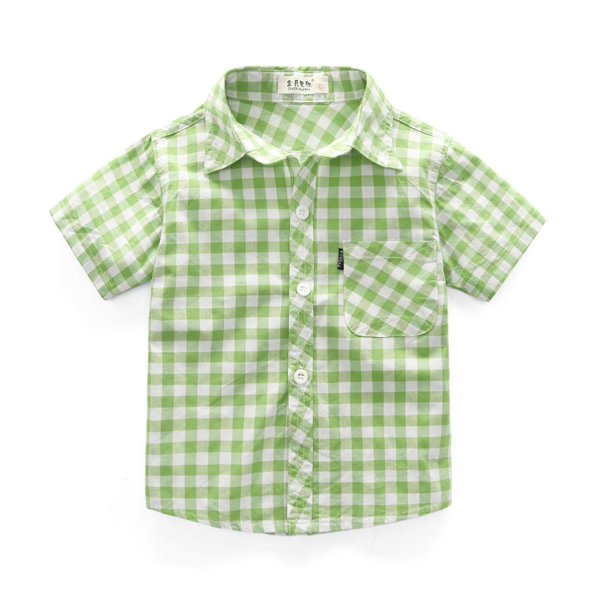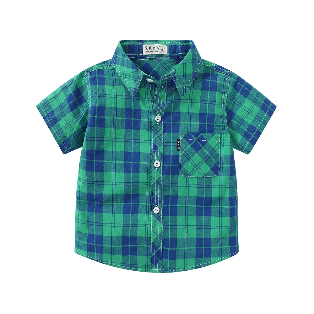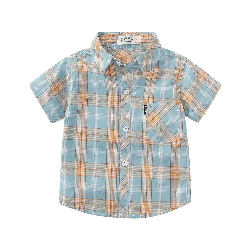 남학생 반소매 셔츠 순면 아동복 대형 어린이 탑 유아용 격자 무늬 셔츠 서양식 반소매 셔츠스토어 가기