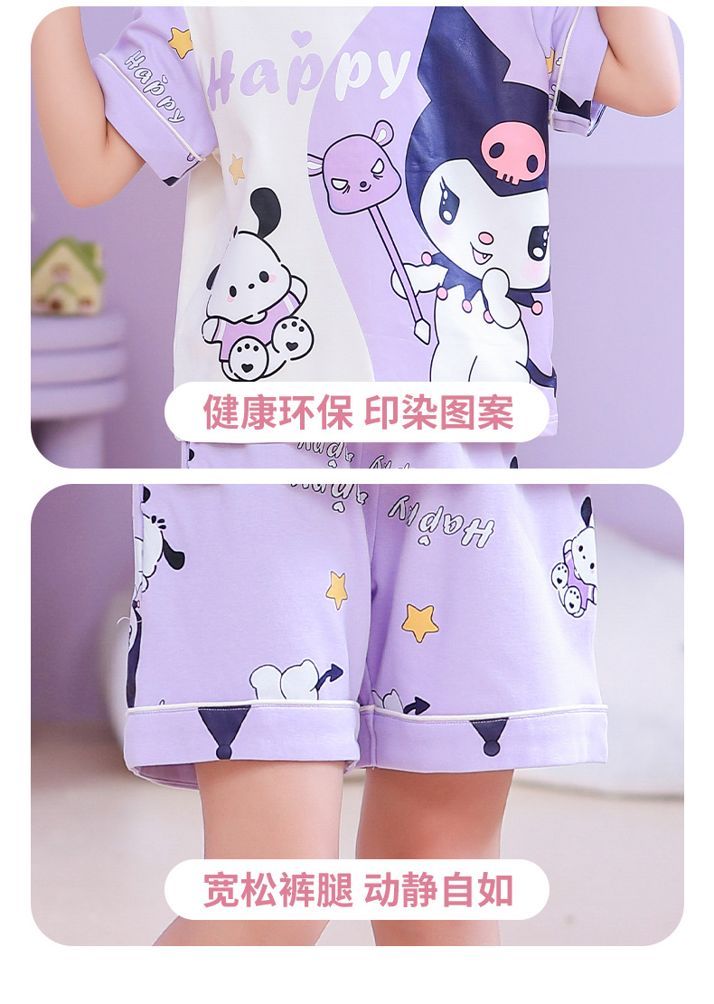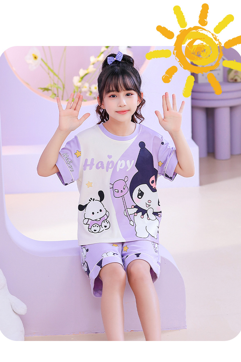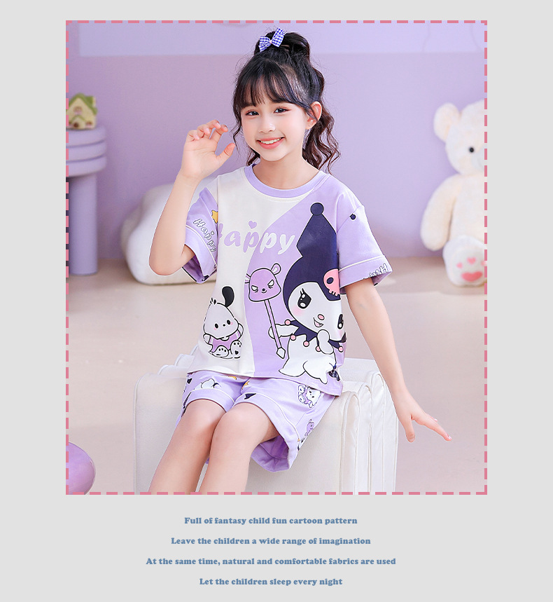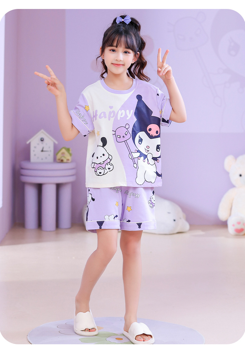 여름 어린이 잠옷 소녀 반팔 얇은 만화 어린 소녀 중년 어린이 학생과 아기는 외부 가정 옷을 입을 수 있습니다