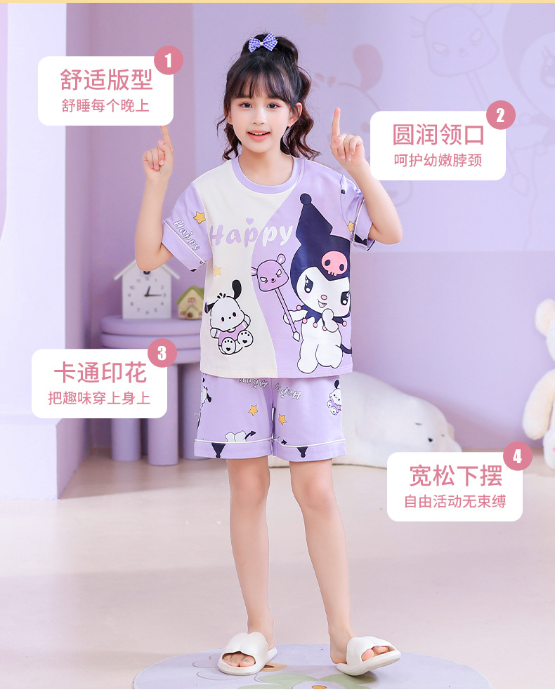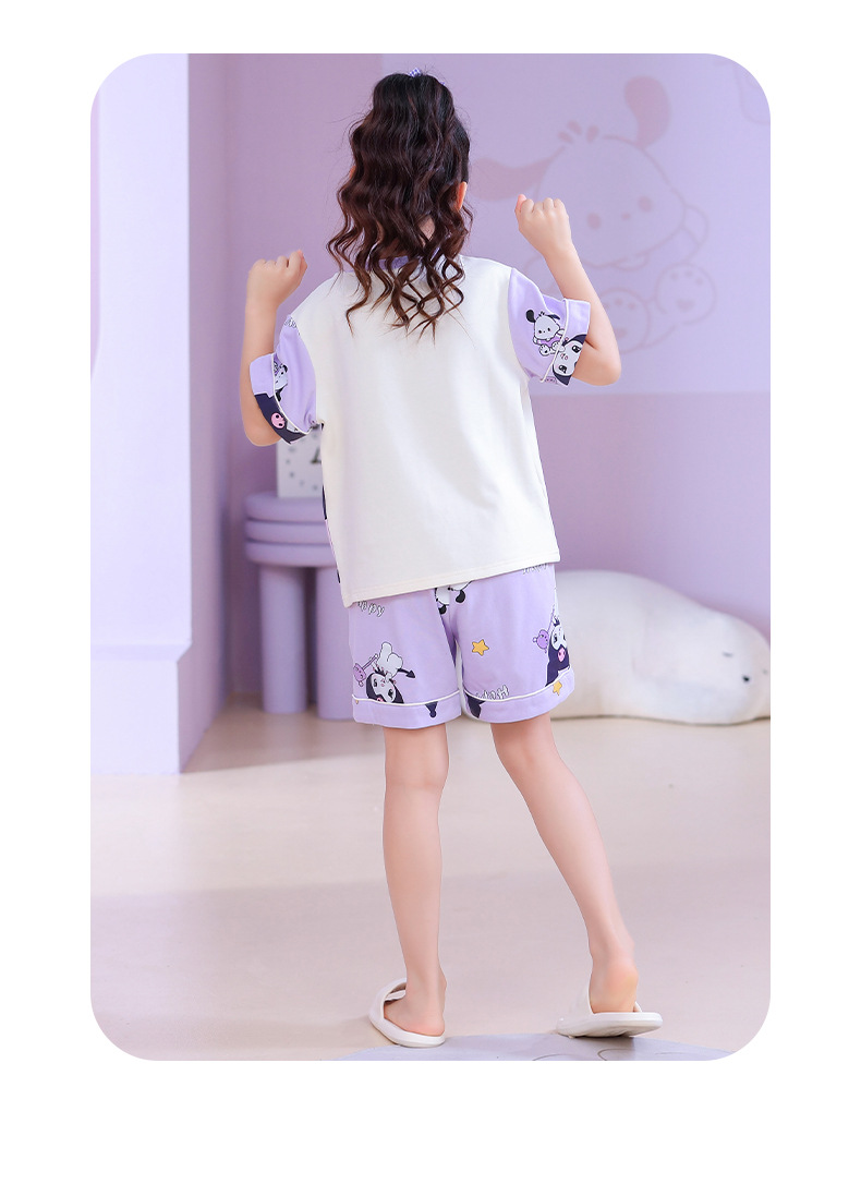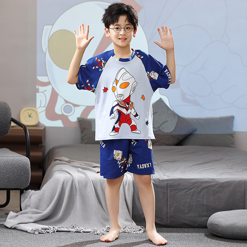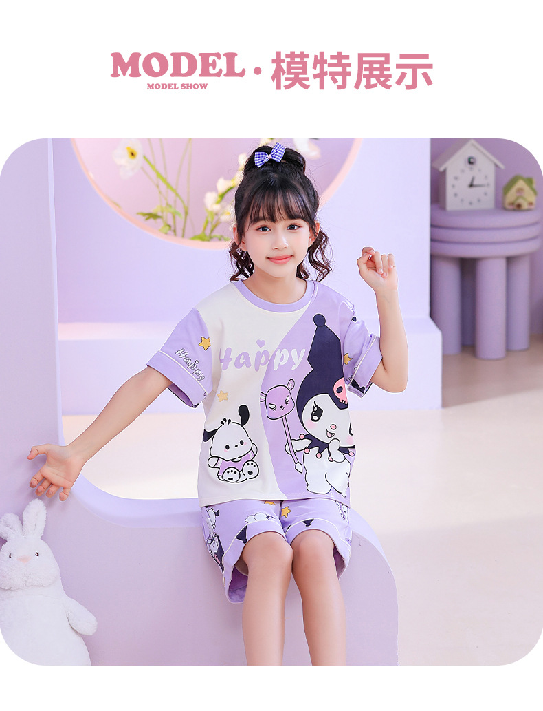 여름 어린이 잠옷 소녀 반팔 얇은 만화 어린 소녀 중년 어린이 학생과 아기는 외부 가정 옷을 입을 수 있습니다