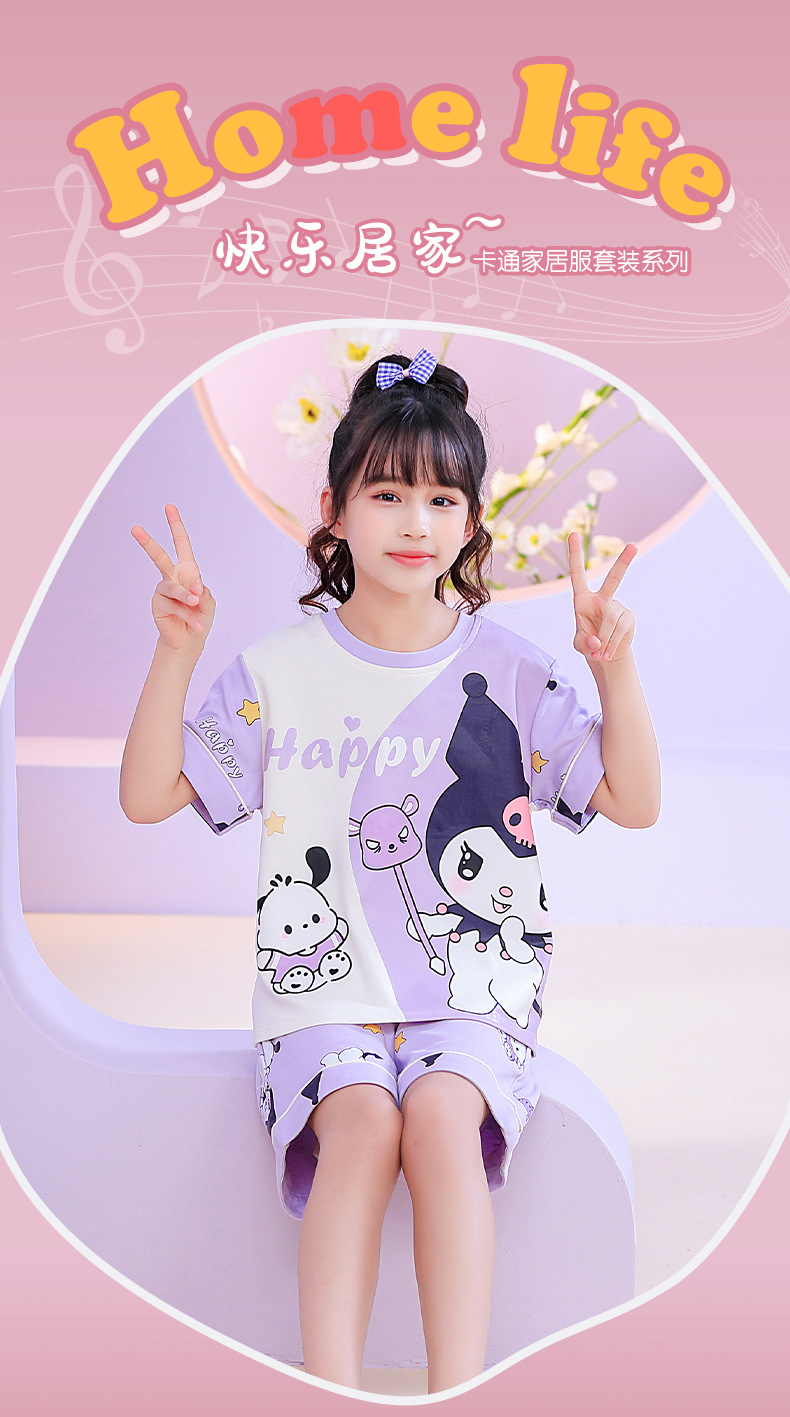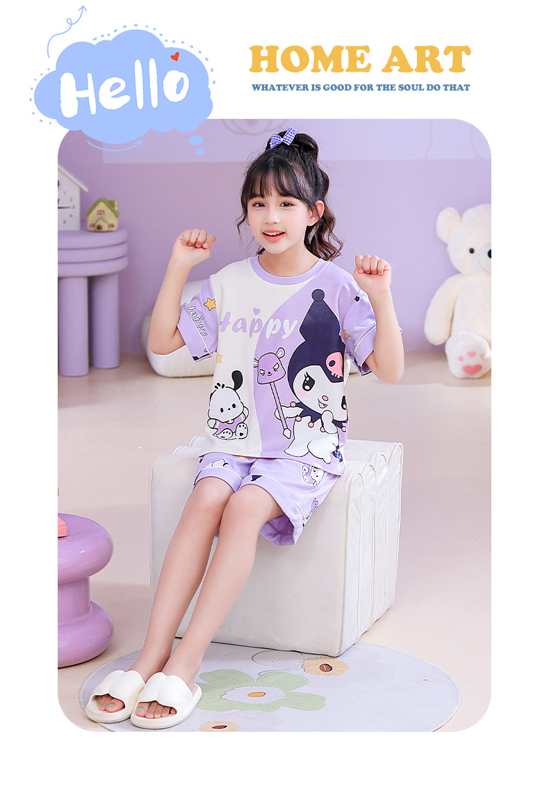 여름 어린이 잠옷 소녀 반팔 얇은 만화 어린 소녀 중년 어린이 학생과 아기는 외부 가정 옷을 입을 수 있습니다스토어 가기