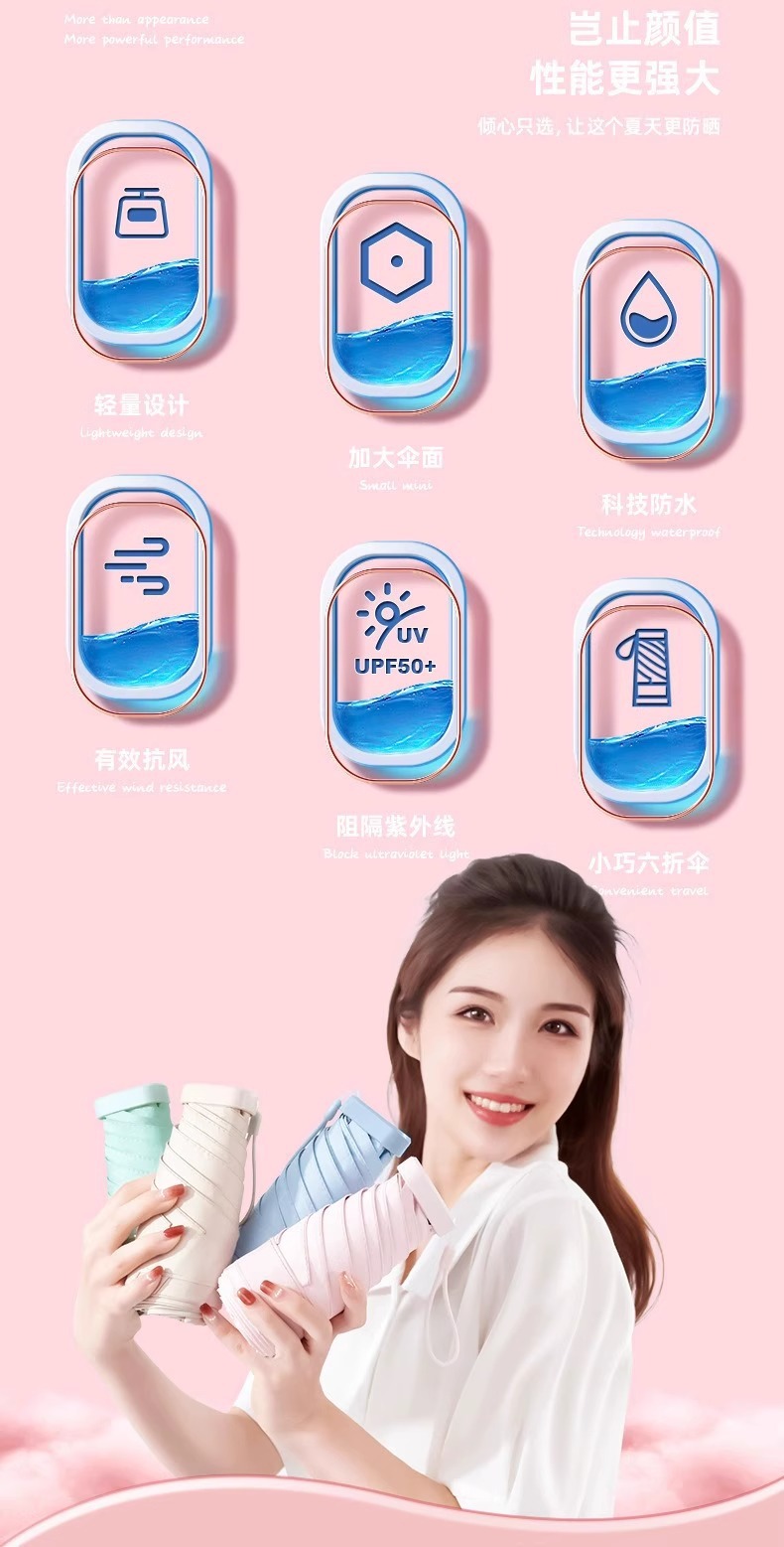 태양 우산 태양 보호 자외선 보호 태양 우산 맑고 비 이중 사용 여성 미니 휴대용 포켓 캡슐 우산 893스토어 가기