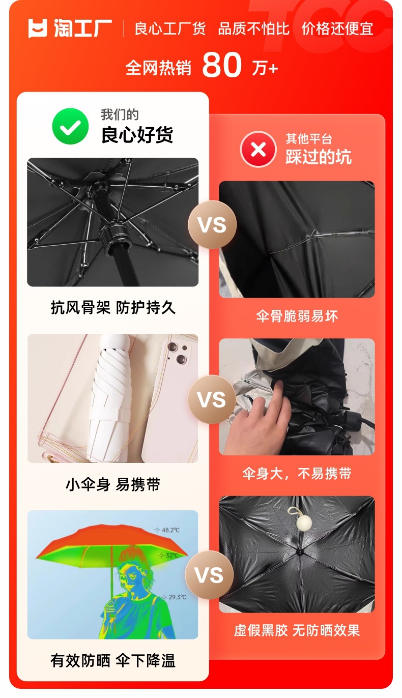 • [검은 접착제 업그레이드] 시카모레 쌀 [60% 접은 편평한 우산] [선물 우산 가방]