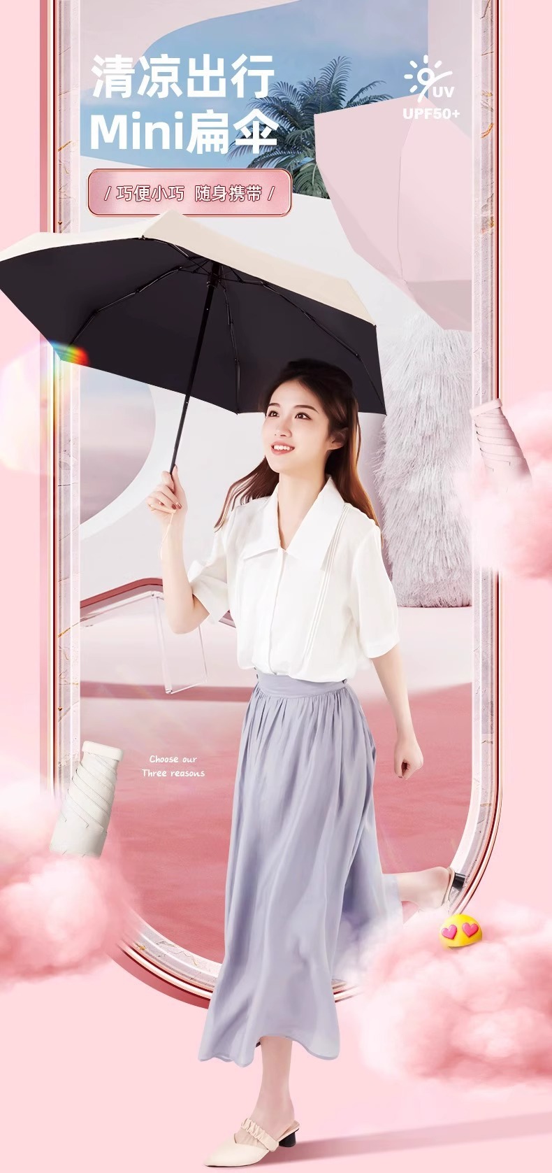 • [블랙 접착제 업그레이드] 라이트 핑크 [60% 폴드 플랫 우산] [선물 우산 가방]]