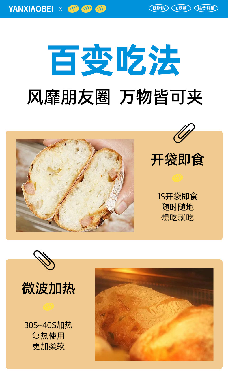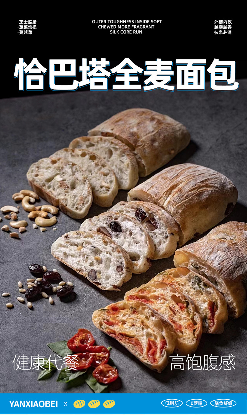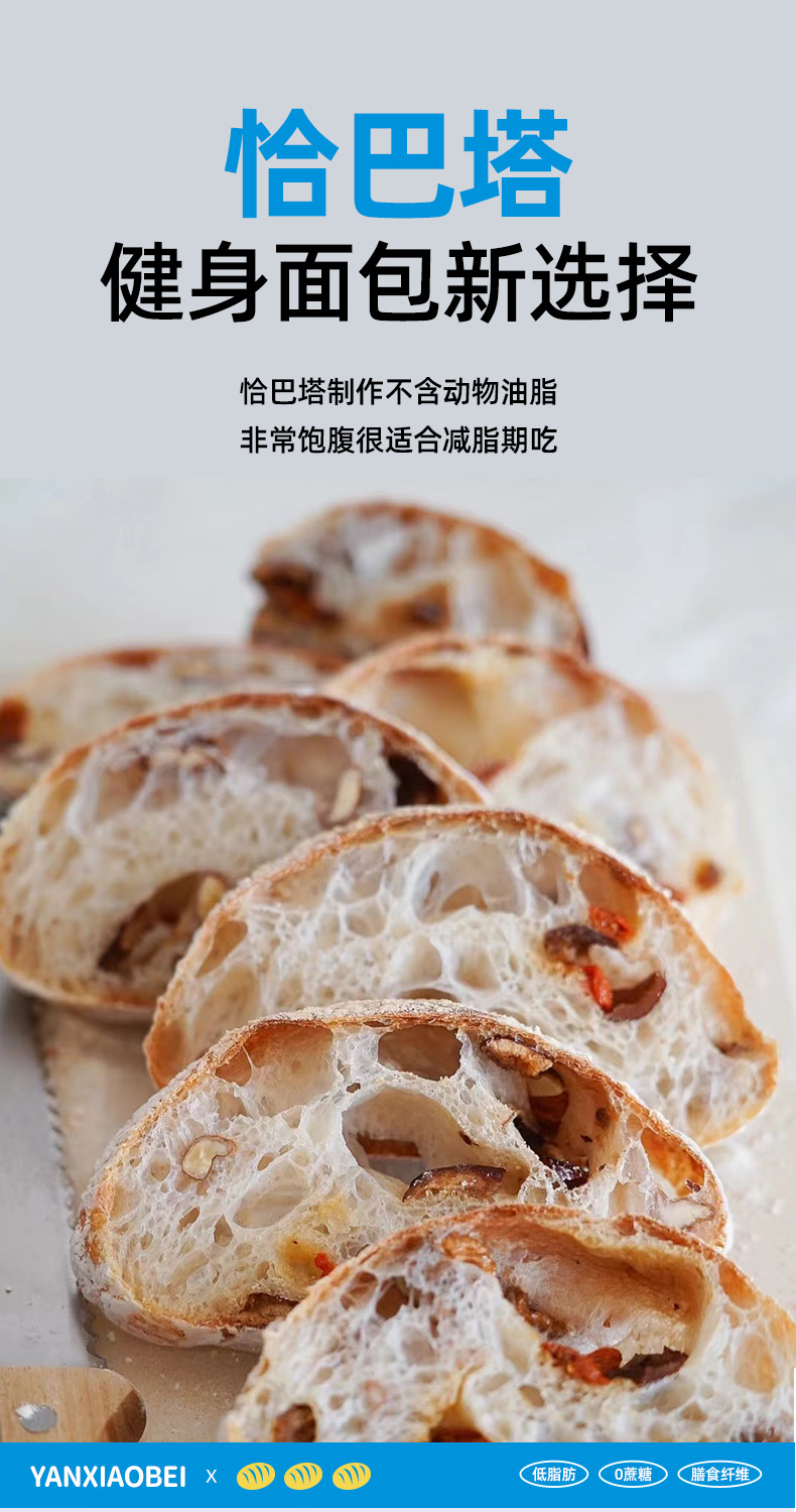 Yan Xiaobei 저지방 Chabata 통밀 빵 수크로스 무료 음식 피트니스 식사 건강 거친 음식 아침 식사 샌드위치스토어 가기
