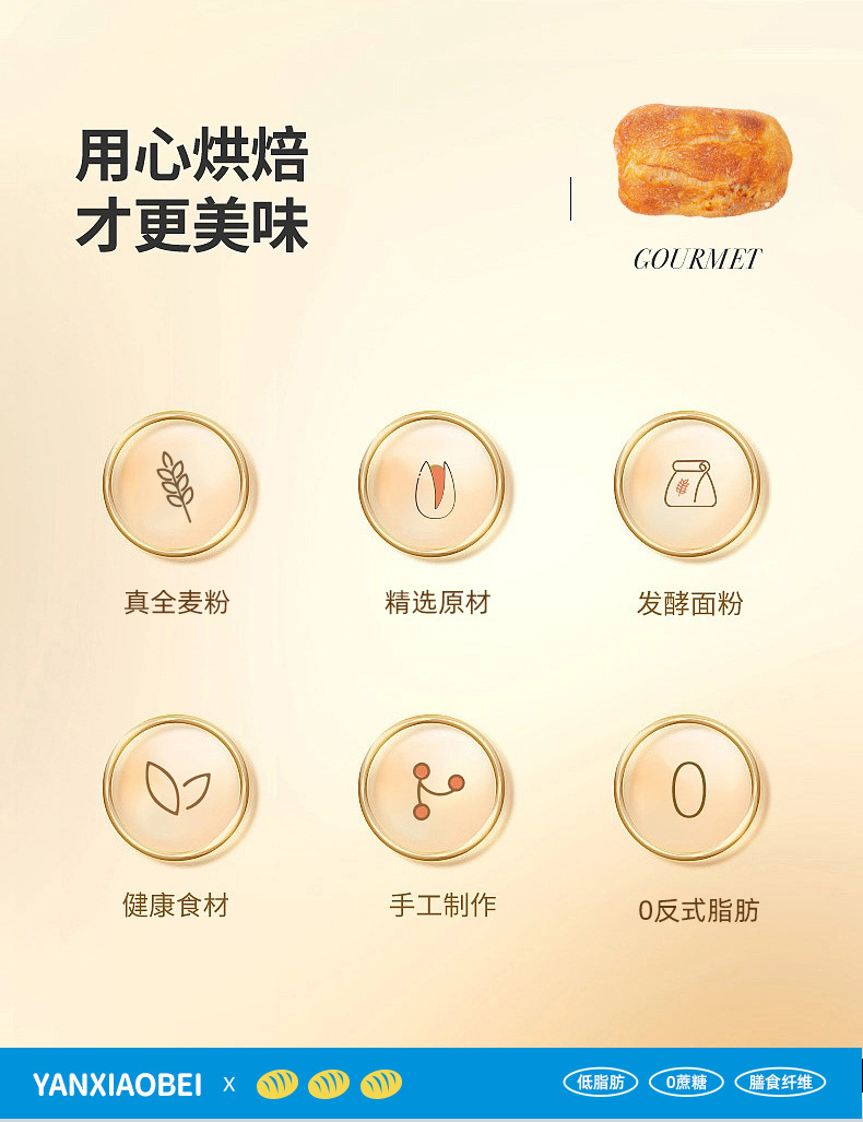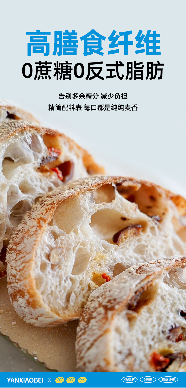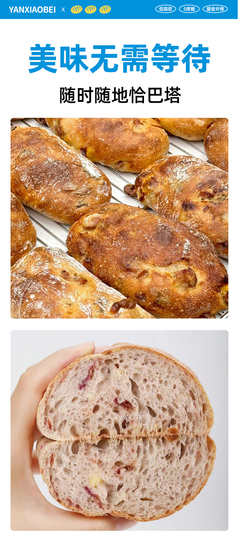 Yan Xiaobei 저지방 Chabata 통밀 빵 수크로스 무료 음식 피트니스 식사 건강 거친 음식 아침 식사 샌드위치스토어 가기