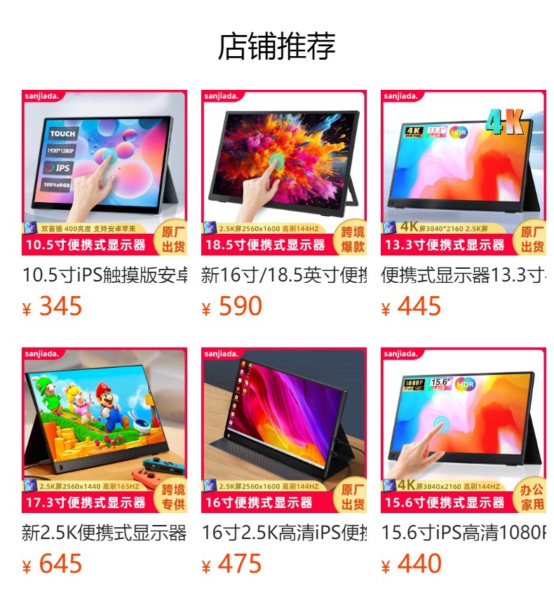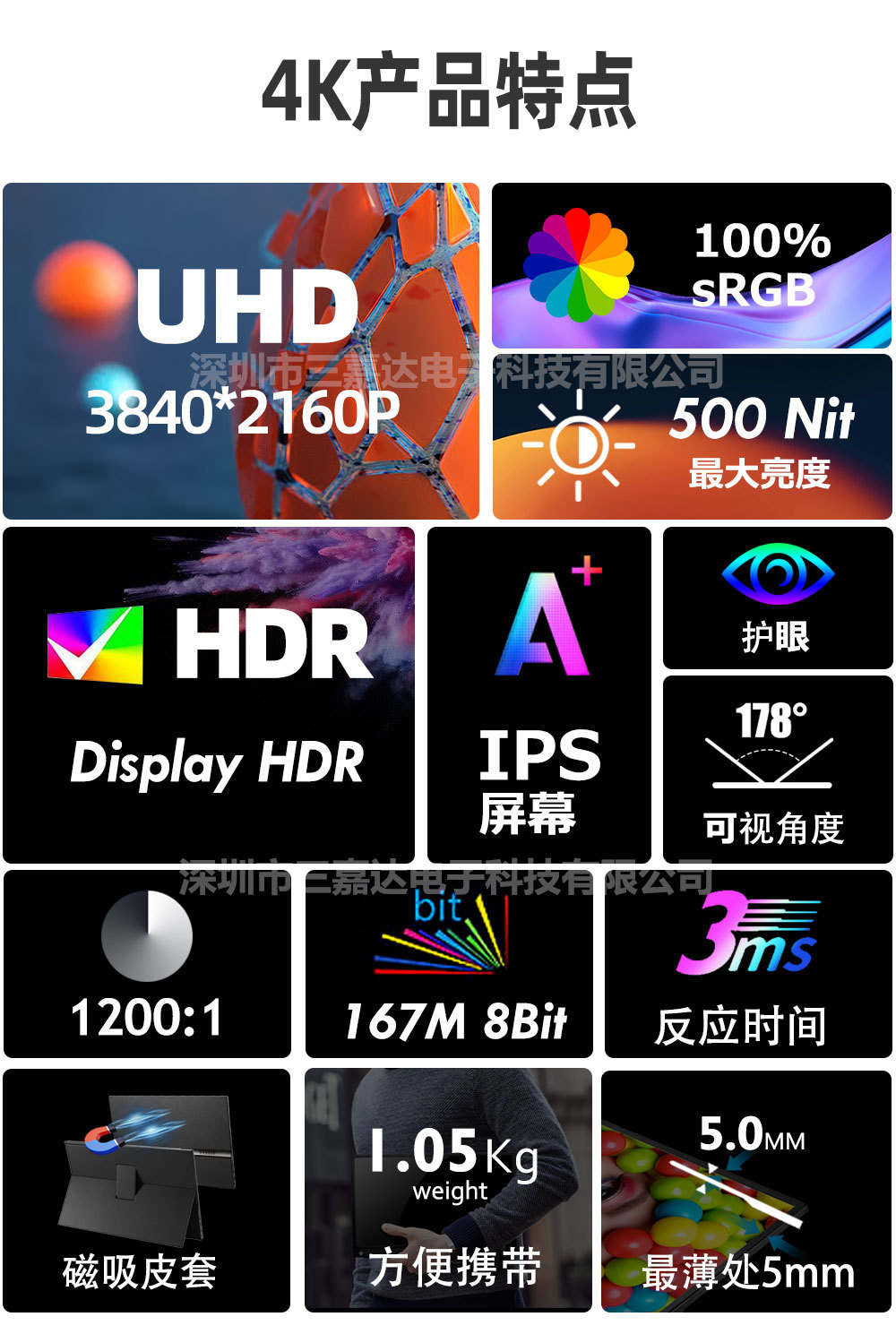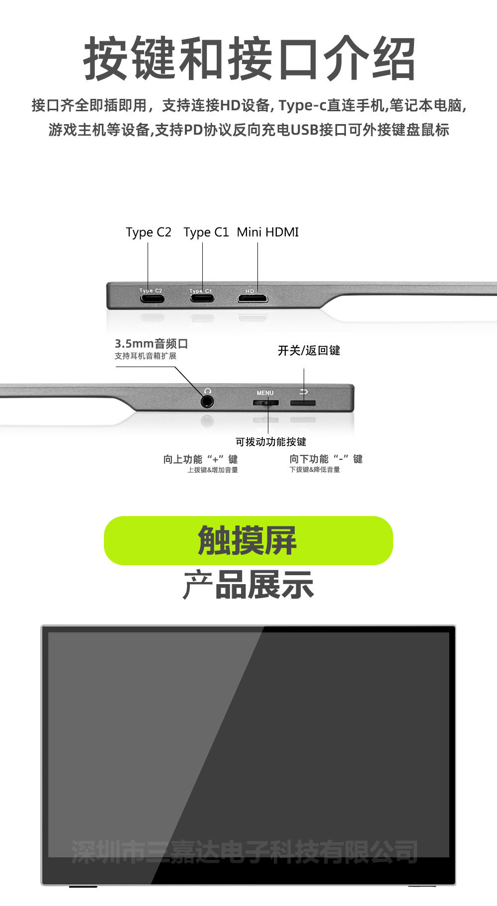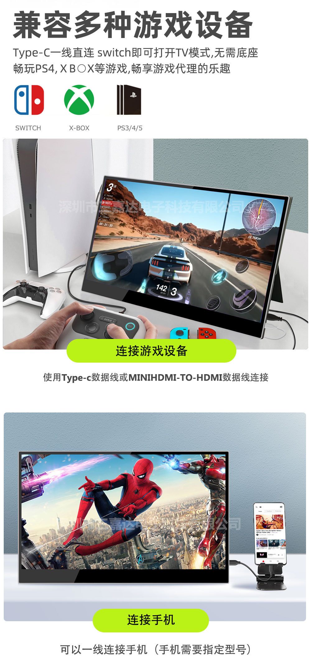 15.6inch 하이 엔드 4K 휴대용 모니터 노트북 확장 스크린 유형-c 터치 스크린 오피스 게임 hdmi스토어 가기