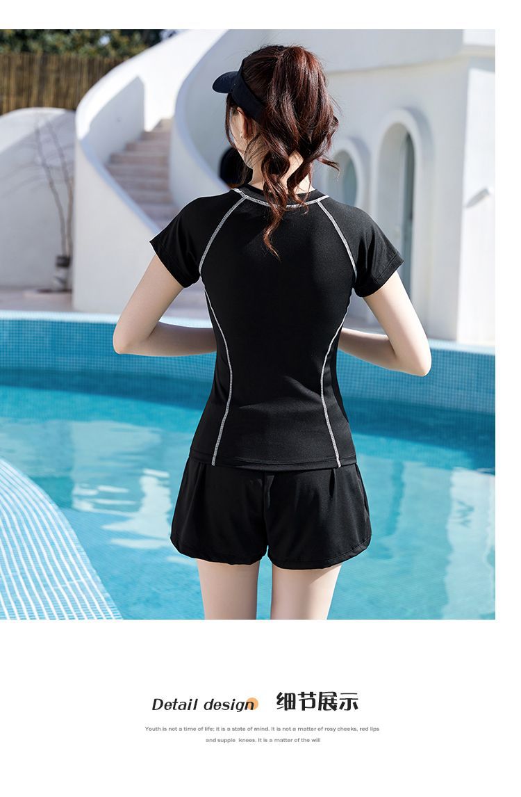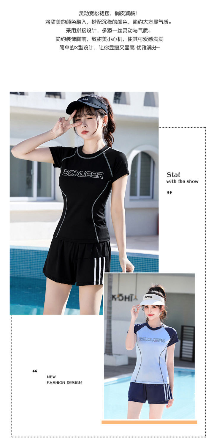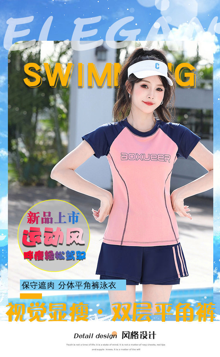 플러스 사이즈 수영복 여성의 보수적 인 분할 통통녀 배꼽 슬리밍 온천 약간의 뚱뚱한 여자 스포츠 수영복 2024