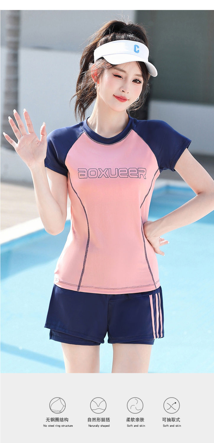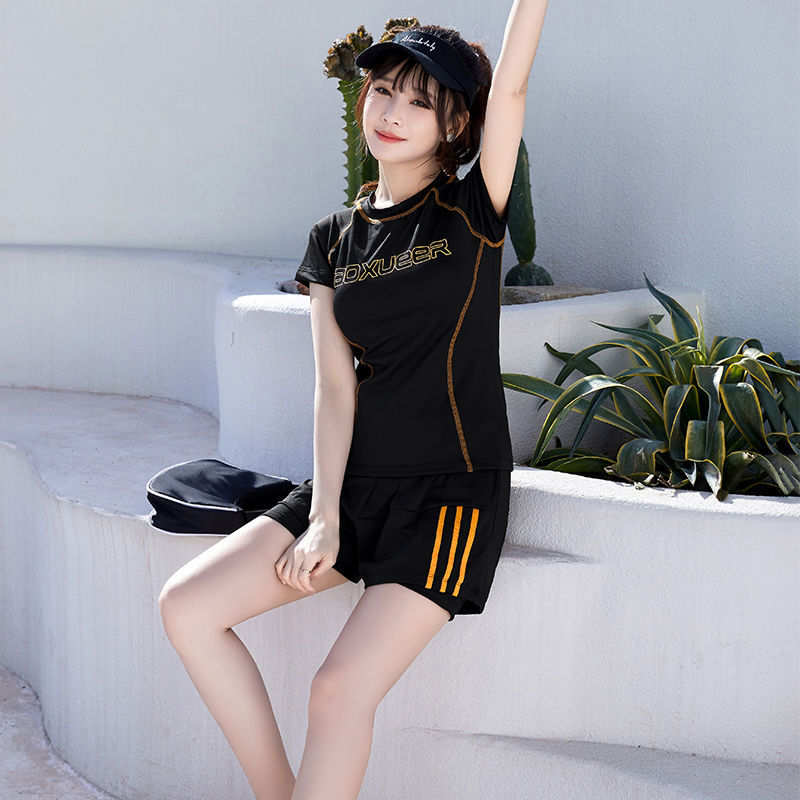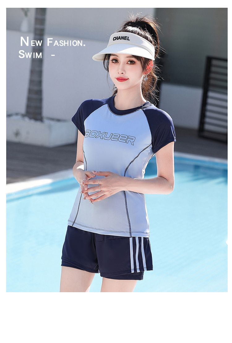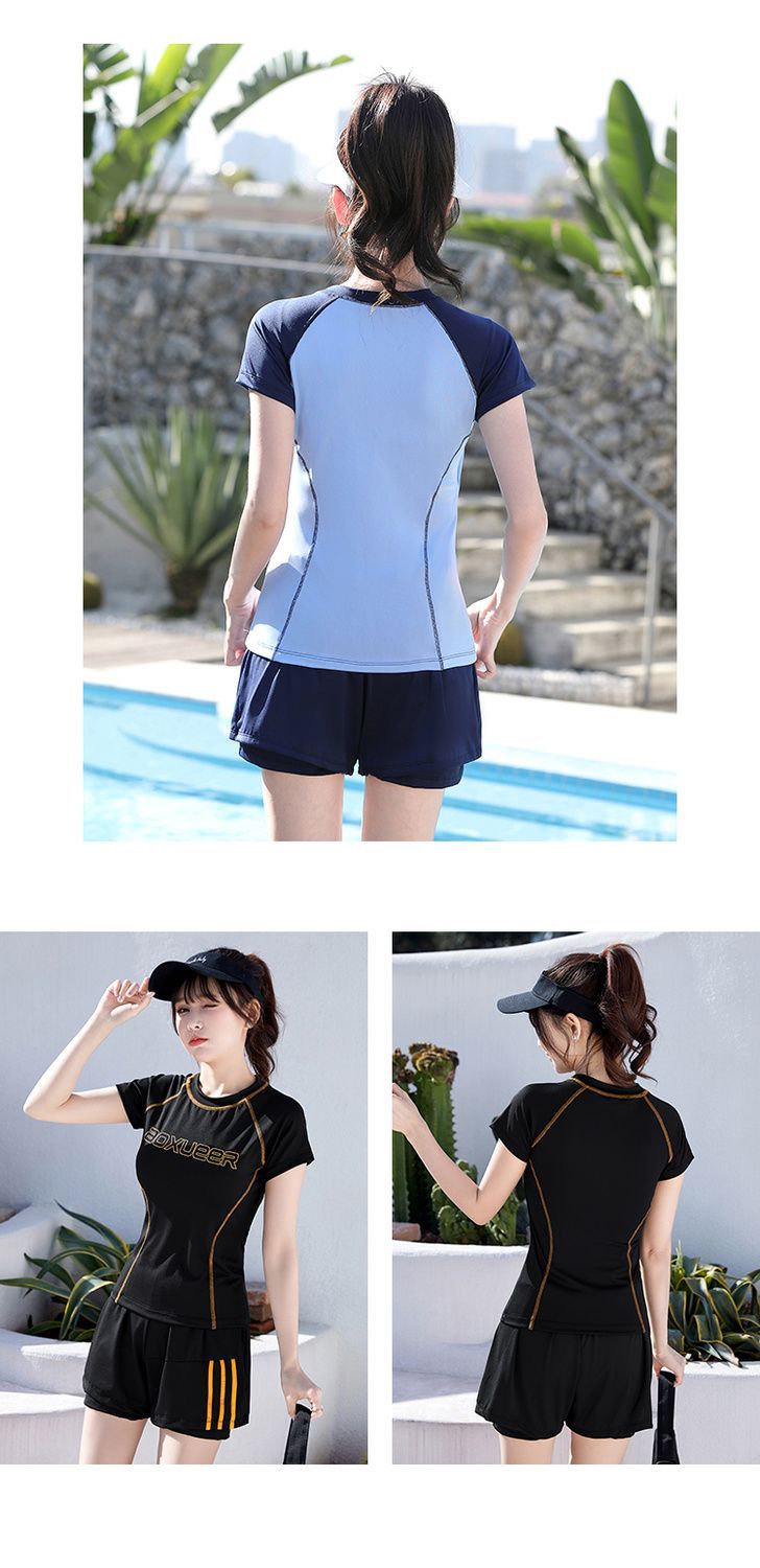 플러스 사이즈 수영복 여성의 보수적 인 분할 통통녀 배꼽 슬리밍 온천 약간의 뚱뚱한 여자 스포츠 수영복 2024