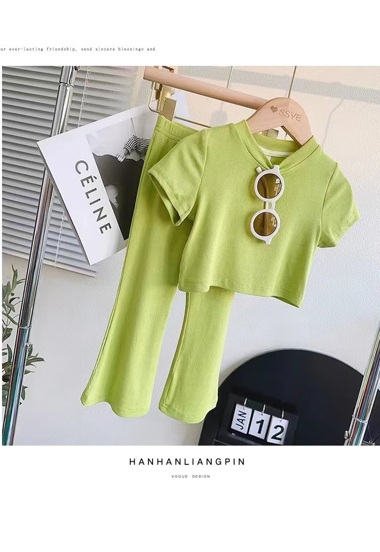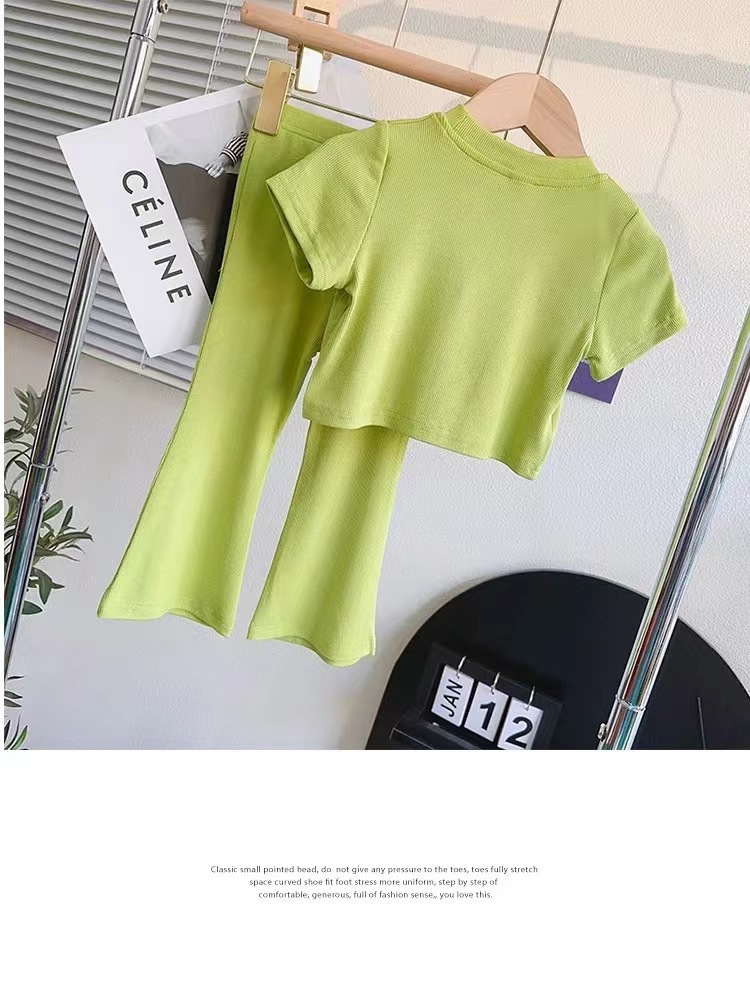 인터넷 인기 아동복 2024 여름 소녀 세트 한국 캐주얼 소프트 베이비 소녀 반팔 티셔츠 탑 투피스 세트