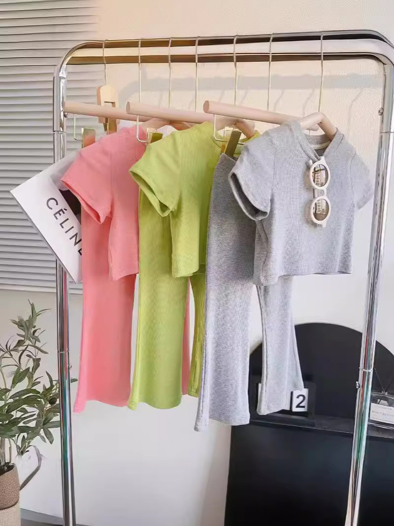 인터넷 인기 아동복 2024 여름 소녀 세트 한국 캐주얼 소프트 베이비 소녀 반팔 티셔츠 탑 투피스 세트스토어 가기
