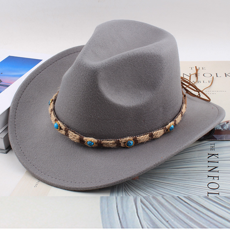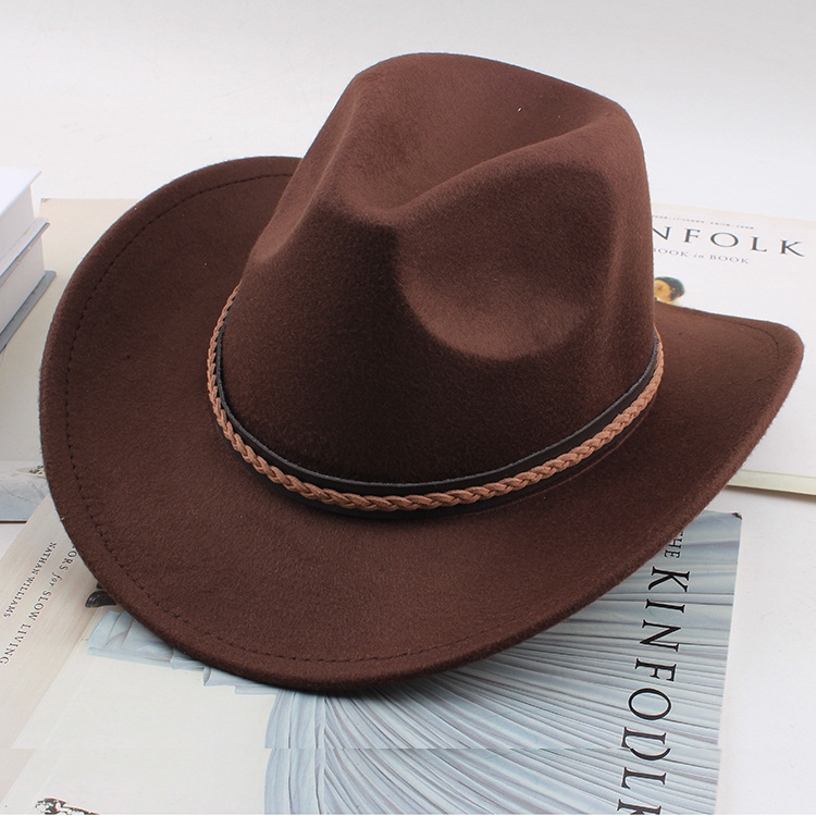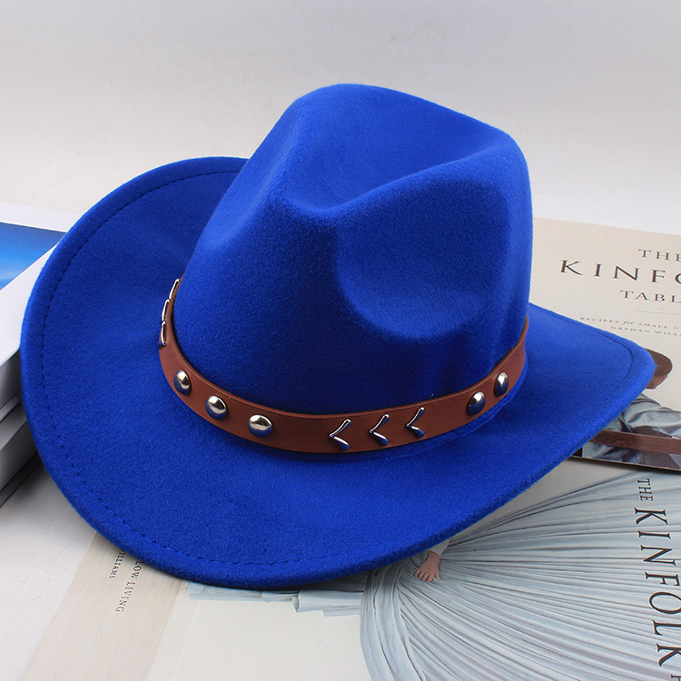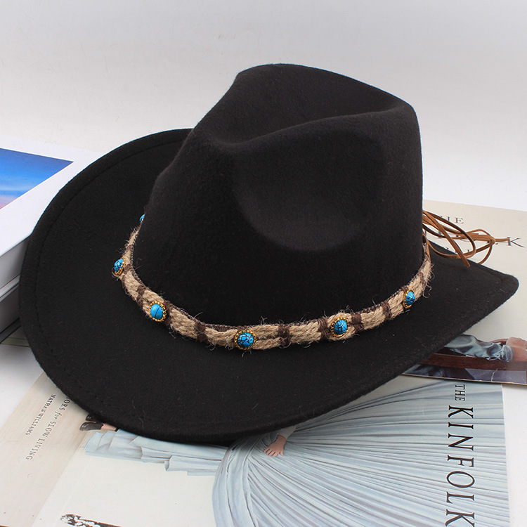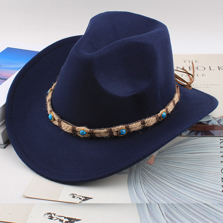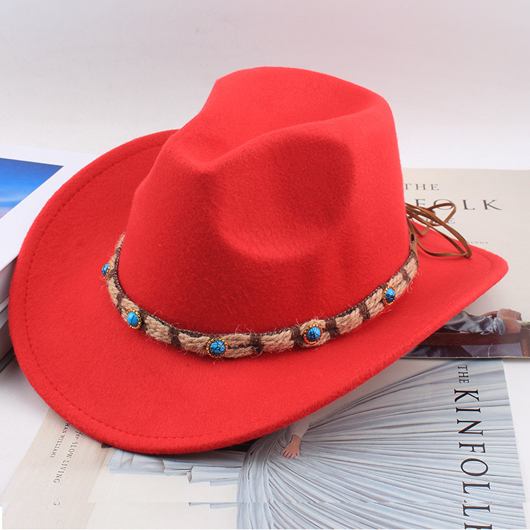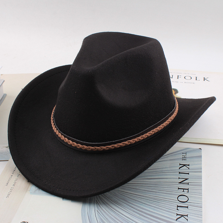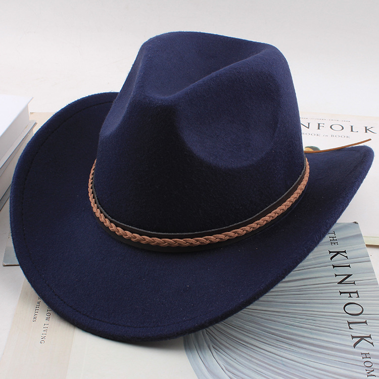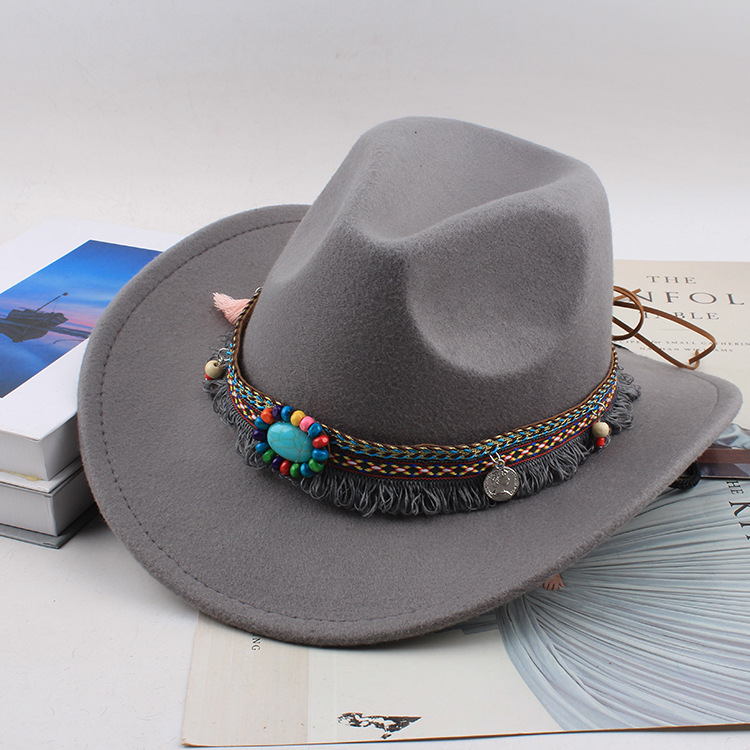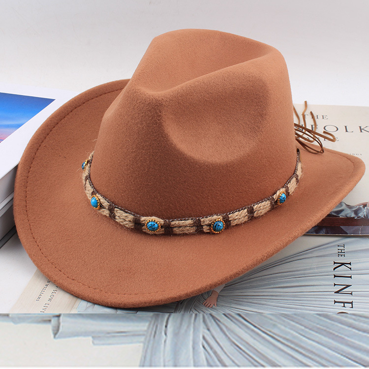 봄과 여름 유럽과 미국 스타일의 모직 천 카우보이 모자 남녀 커플 민족 스타일 롤업 모자 차양 모자 재즈 모자