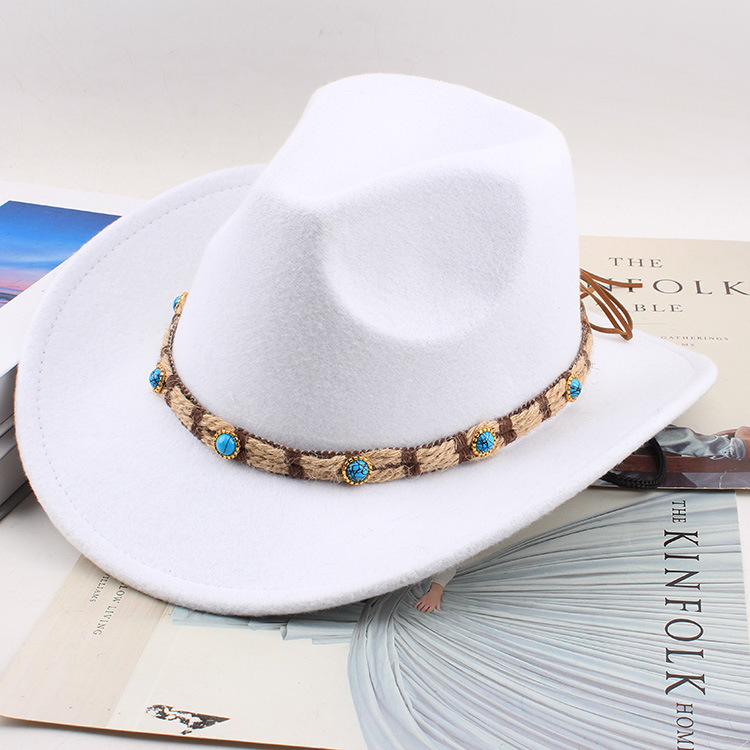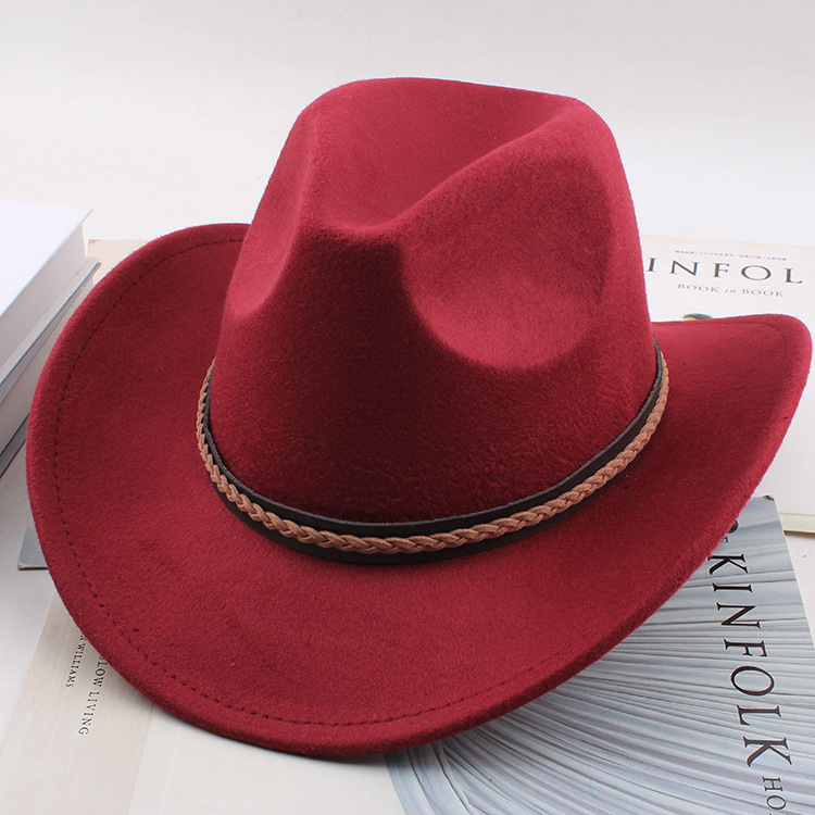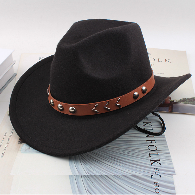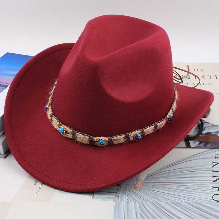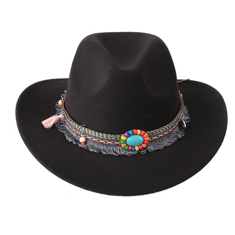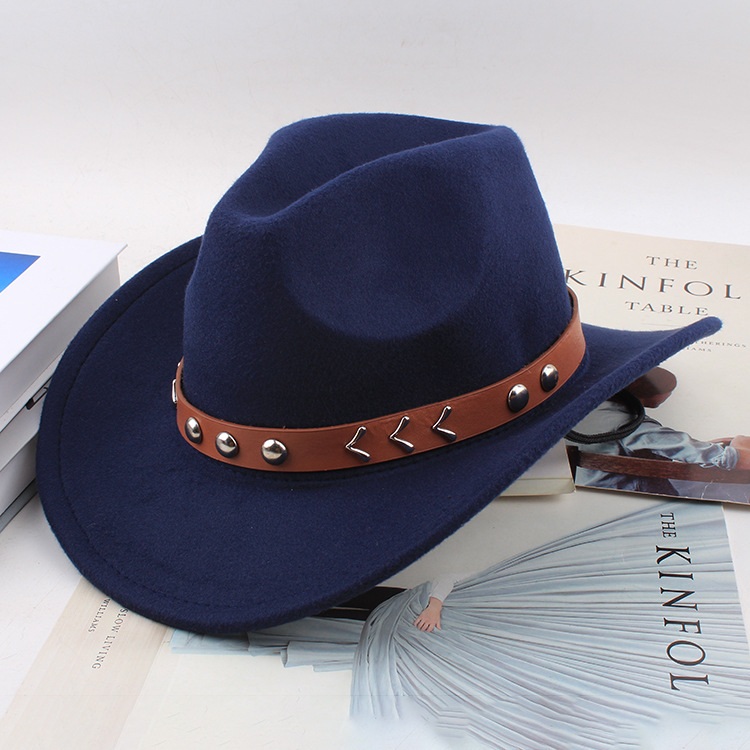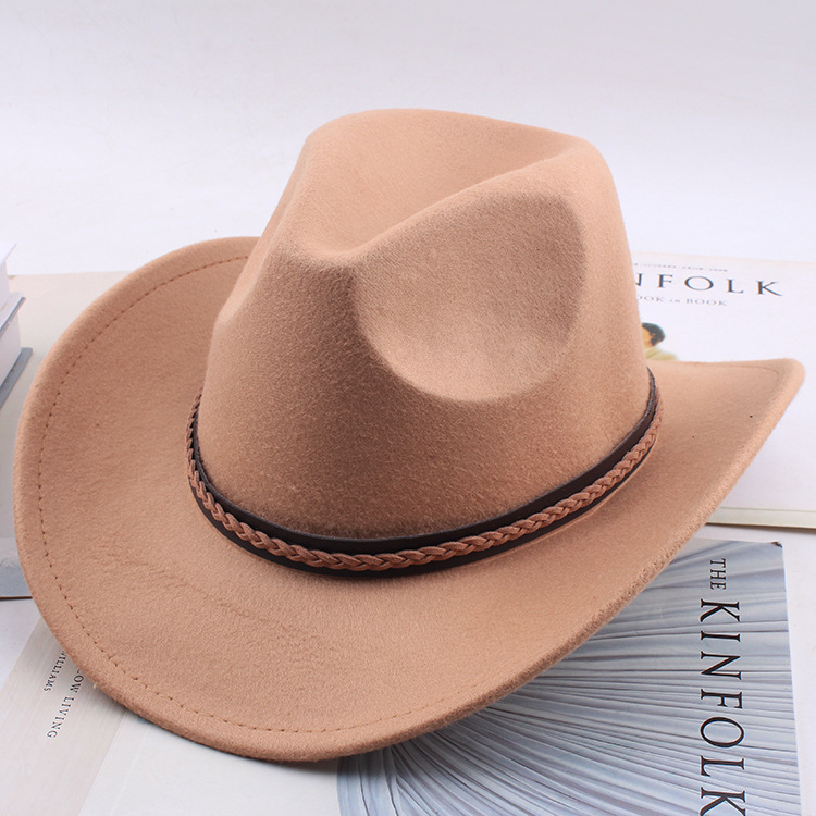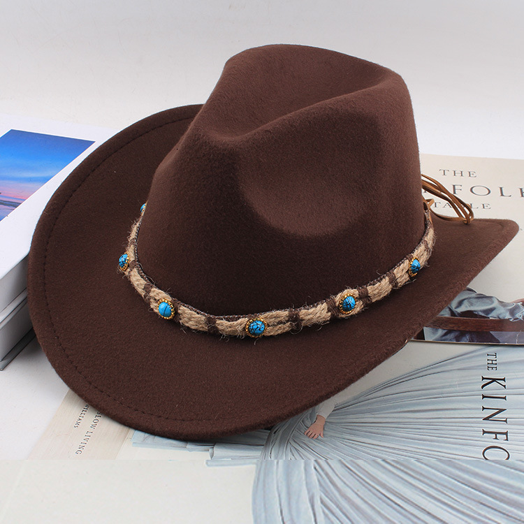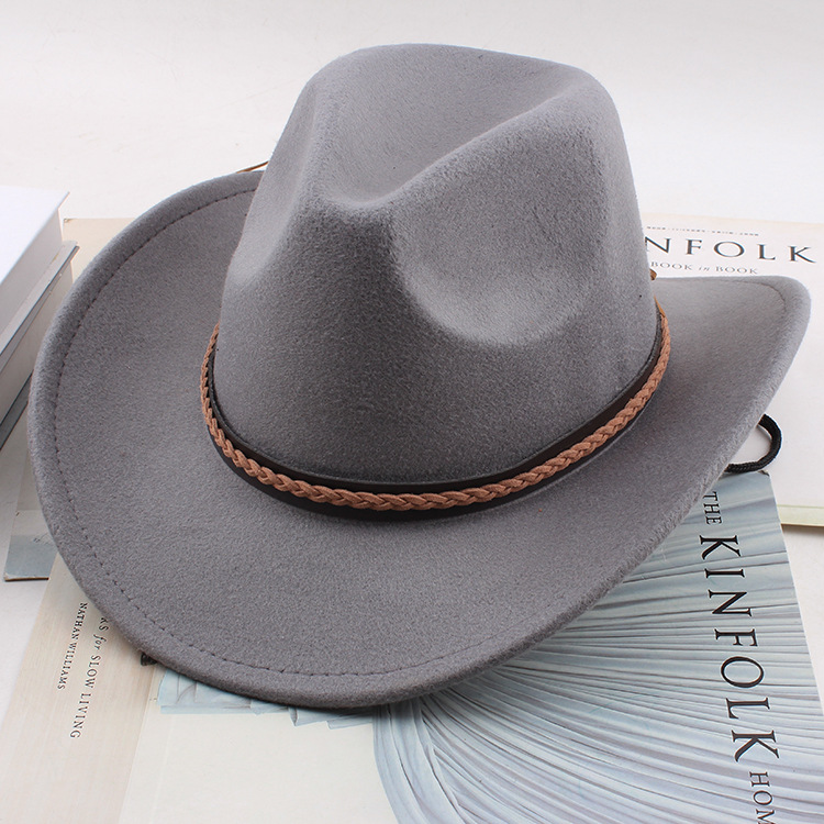 봄과 여름 유럽과 미국 스타일의 모직 천 카우보이 모자 남녀 커플 민족 스타일 롤업 모자 차양 모자 재즈 모자
