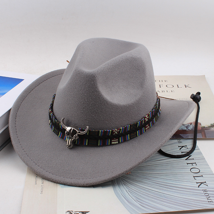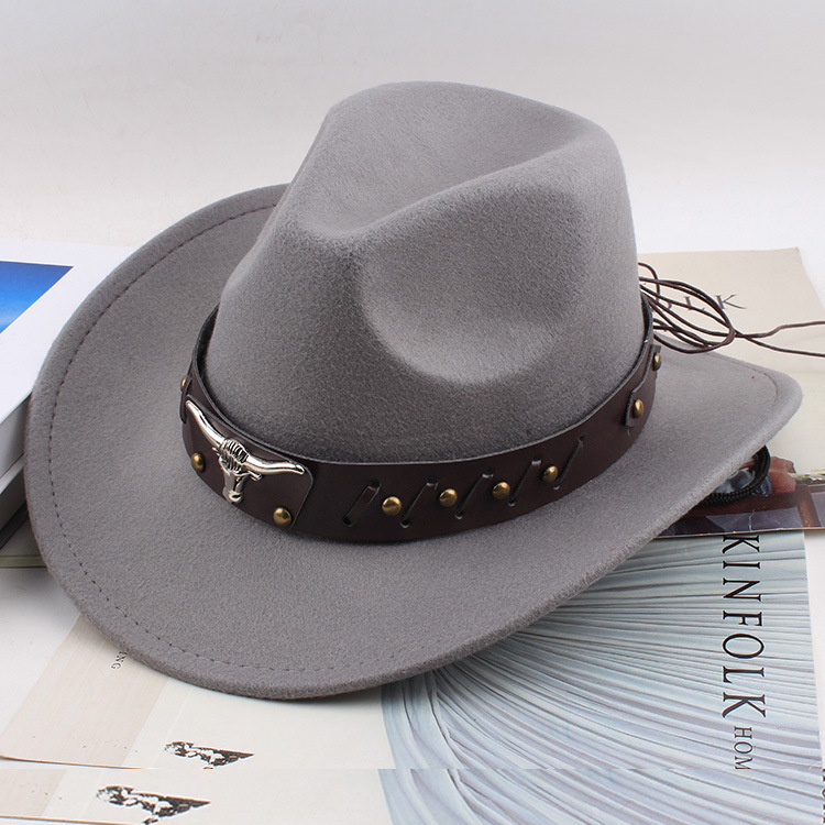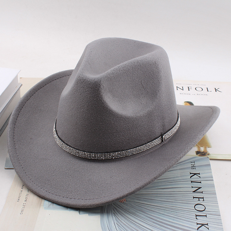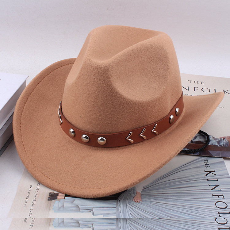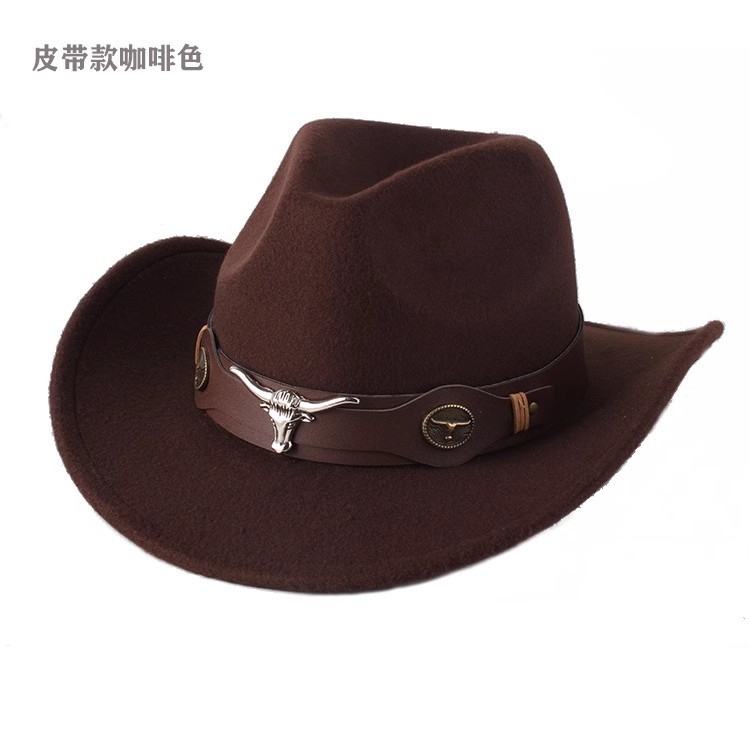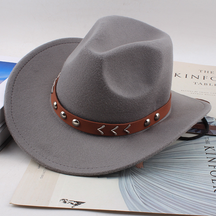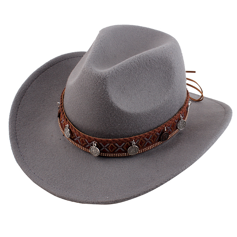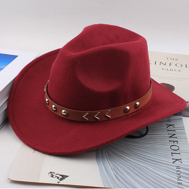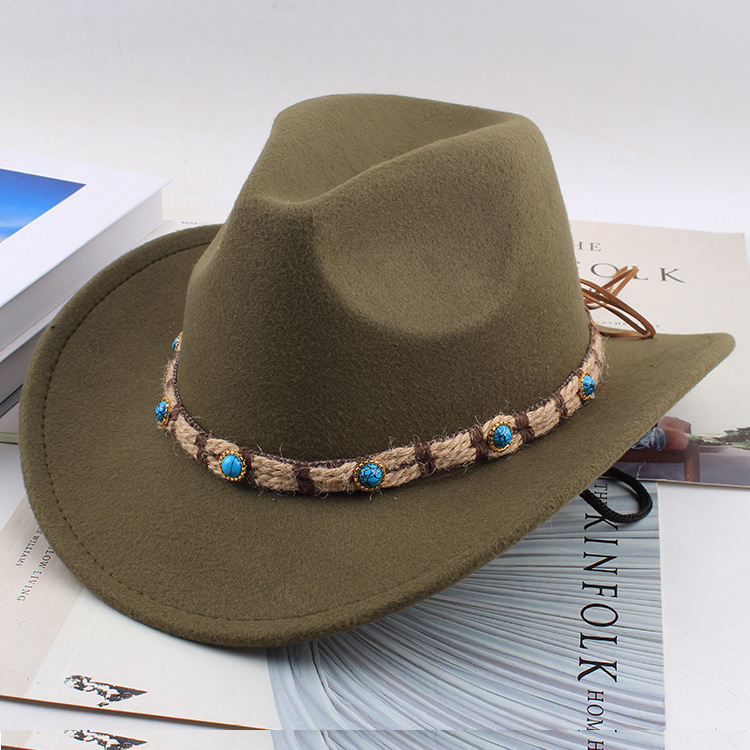 봄과 여름 유럽과 미국 스타일의 모직 천 카우보이 모자 남녀 커플 민족 스타일 롤업 모자 차양 모자 재즈 모자