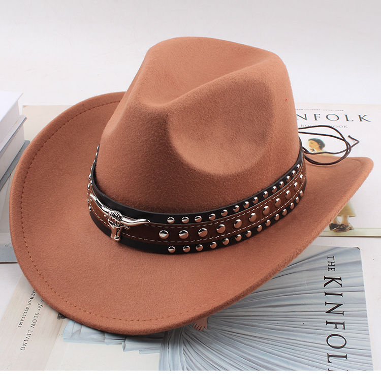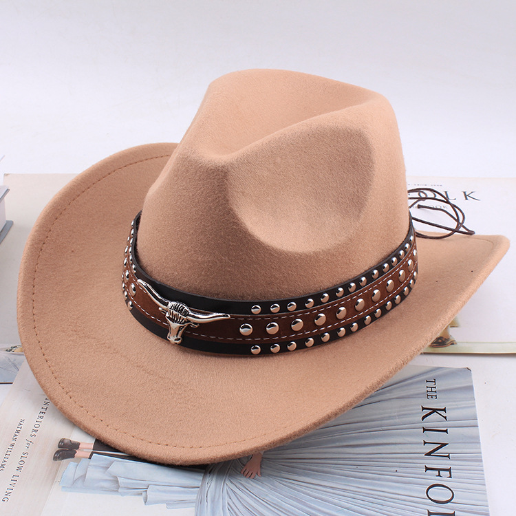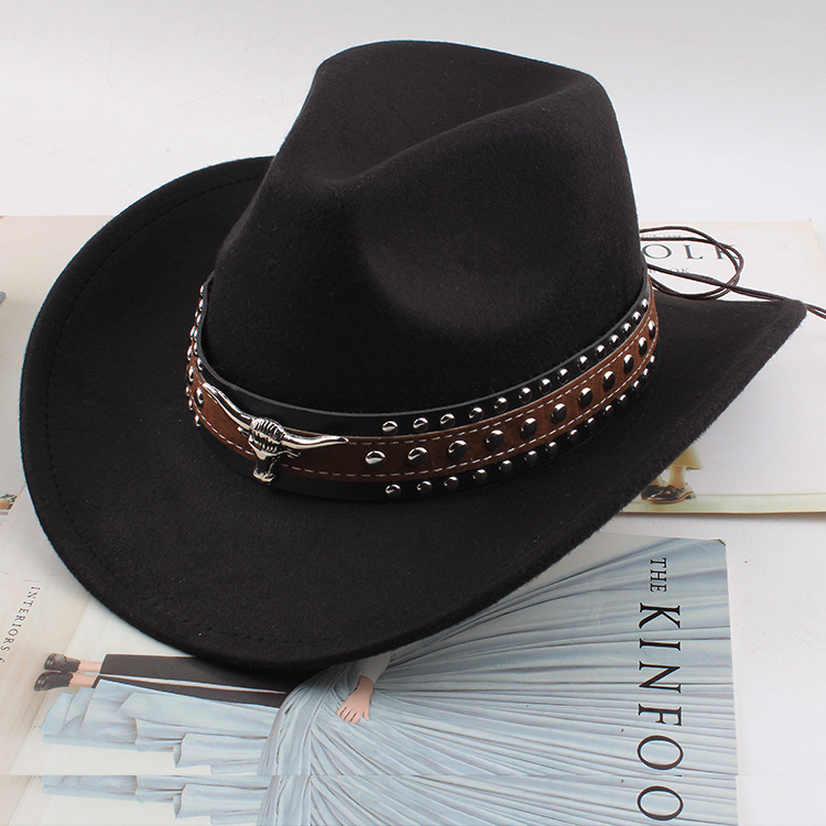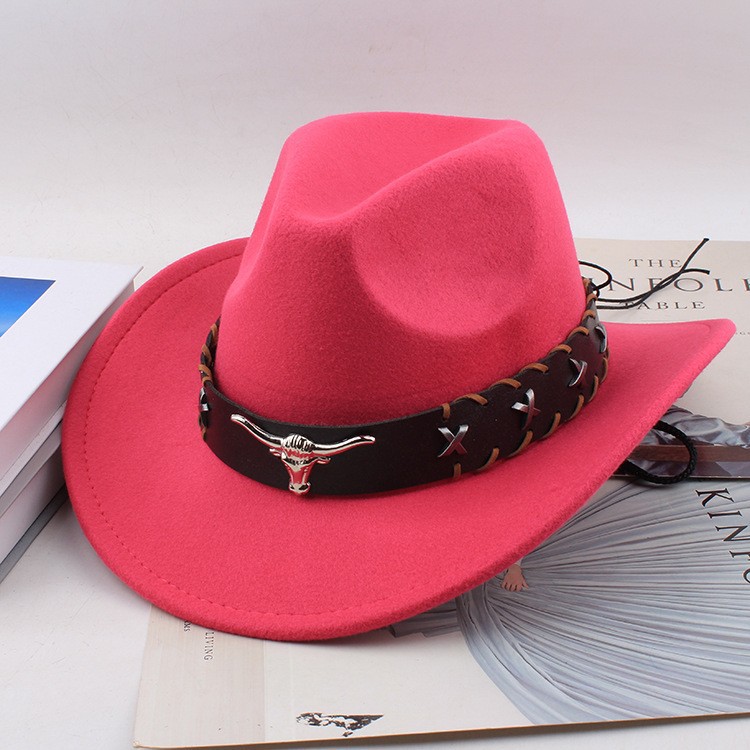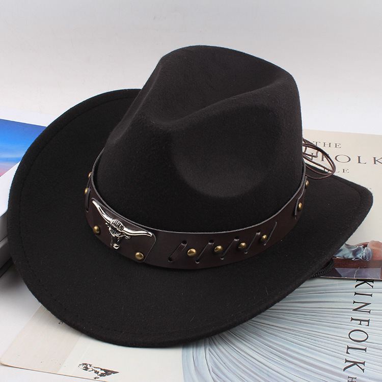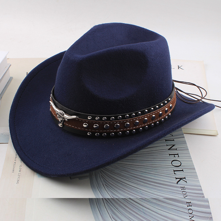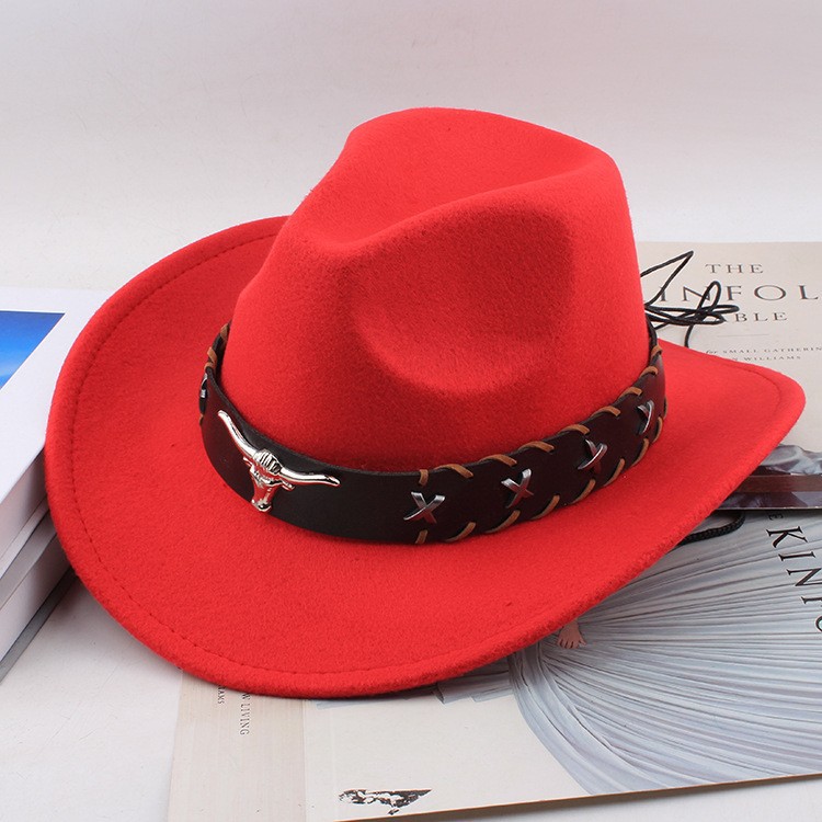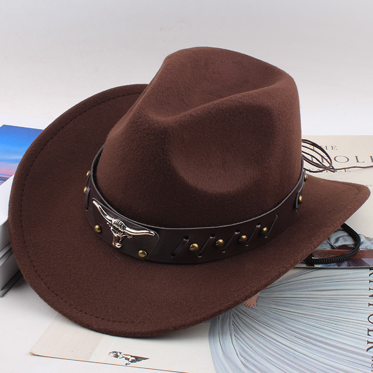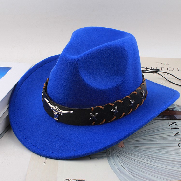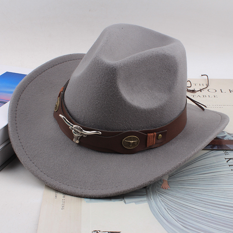 봄과 여름 유럽과 미국 스타일의 모직 천 카우보이 모자 남녀 커플 민족 스타일 롤업 모자 차양 모자 재즈 모자