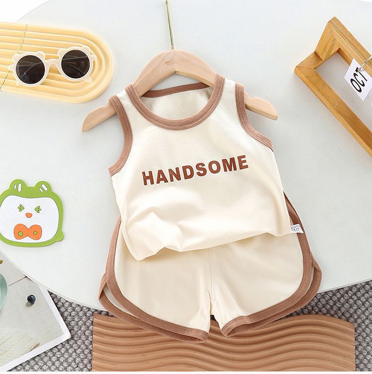 여름 아기 조끼 세트 여름 얇은 순수 코튼 소년과 소녀 스포츠 투피스 세트 아기 어린이 민소매 반바지스토어 가기